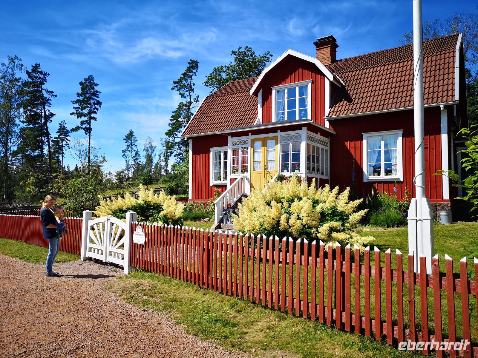 Jeder kennt Pippi Langstrumpf und ihre „Erfinderin" Astrid Lindgren. Ihr Geburtsort Vimmerby in Småland ist mehr als nur ein Besuch ihres kleinen Wohnhauses - die Schriftstellerin hat die Literatur entscheidend mitgeprägt und hätte nach Meinung vieler Experten den Nobelpreis verdient gehabt. Die Gegend ist authentischer Schauplatz der meisten ihrer Geschichten und die dargestellten Charaktere ihrer Protagonisten bieten noch heute reichlich Material für die Pädagogen.Es geht im Bus ein paar Kilometer weiter zur Pelarne Kyrka, von wo aus wir mit dem Rad weitere bekannte (Dreh-)Orte anfahren wollen. Nach gerade mal 20 Minuten erreichen wir den Hof von Bullerbyn, Ortsteil von Mariannelund. Auf diesem Gelände mit den drei Höfen (Mittelhof, Nordhof, Südhof) wurden die Bücher „Die Kinder aus Bullerbü" 1960 verfilmt.