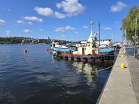 Danach kehren wir wieder zum Bus zurück und fahren noch ein Stück, bis zu dem Hafen Loftahammar. Dort suchen wir uns einen geeigneten Parkplatz, um die Räder auszuladen und fahren entlang am Mälarensee zurück nach Gripsholm zum ersten Stopp dort, besuchen wir in Mariefred das Grab von Kurt Tucholsky. Dann machen wir noch mal einen Stopp bei Alex und seinem Bus, um eventuell Kleidungs- oder Getränkewünsche zu erfüllen. Und dann geht es weiter über eine landschaftlich abwechslungsreiche Strecke bis zu dem Schloss Taxinge, das den Ruf hat, das größte Kuchenbuffet Skandinaviens anzubieten. Dieser Ruf ist verlockend und wir Stoppen auf dem Parkplatz neben dem Bus, stelle die Räder ab und suchen unmittelbar die große Kuchentheke auf. Wir werden nicht enttäuscht, die Kuchentheke hat sich zwar bis zum späten Nachmittag schon deutlich reduziert, aber für jeden war noch Etwas dabei. Und diejenigen, welche keinen Kuchen möchte, konnten sich an dem schön gepflegten Park am Ufer des Mälarensees erfreuen. Nach diesem Stopp geht es schlussendlich mit dem Bus weiter in die Hauptstadt Schwedens, nach Stockholm. Wir haben unser Hotel sehr zentral gelegen auf der Insel Kungsholmen und können nach dem Abendessen noch einen schönen Spaziergang machen, entweder ein paar Schritte bis hinunter ans Ufer des Riddarfjärden oder etwas weiter direkt bis nach Gamla Stan, die Altstadt Stockholms. Abendspaziergänge in Stockholm sind in dieser Jahreszeit besonders schön, die langen weißen Nächte geben eine besondere Stimmung und machen den Abend sehr lange.