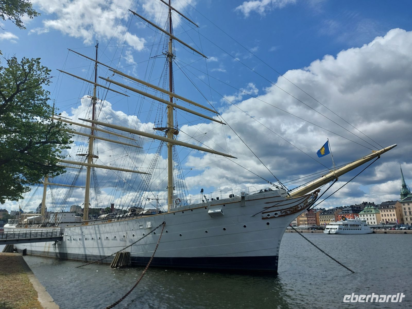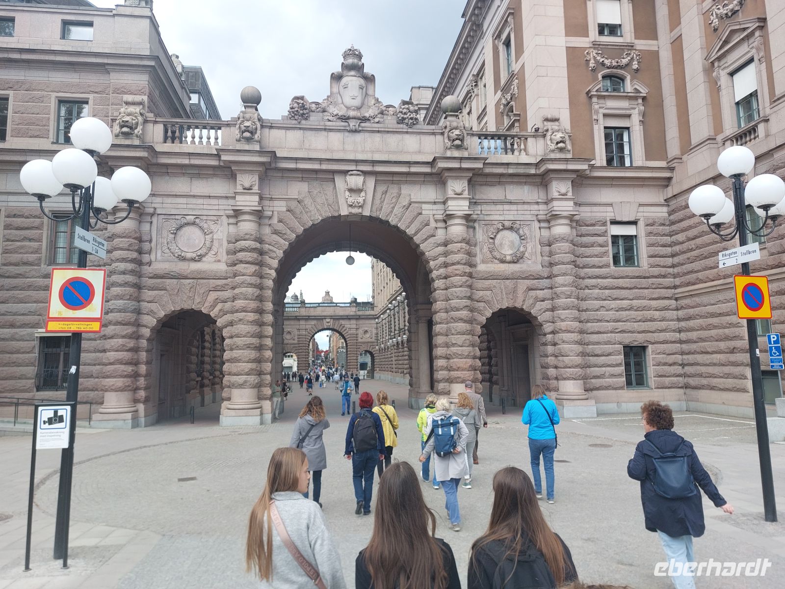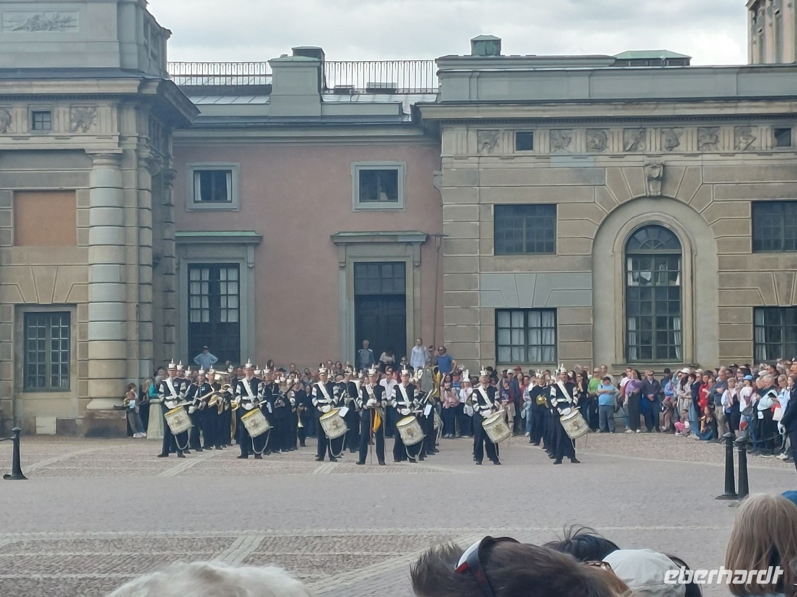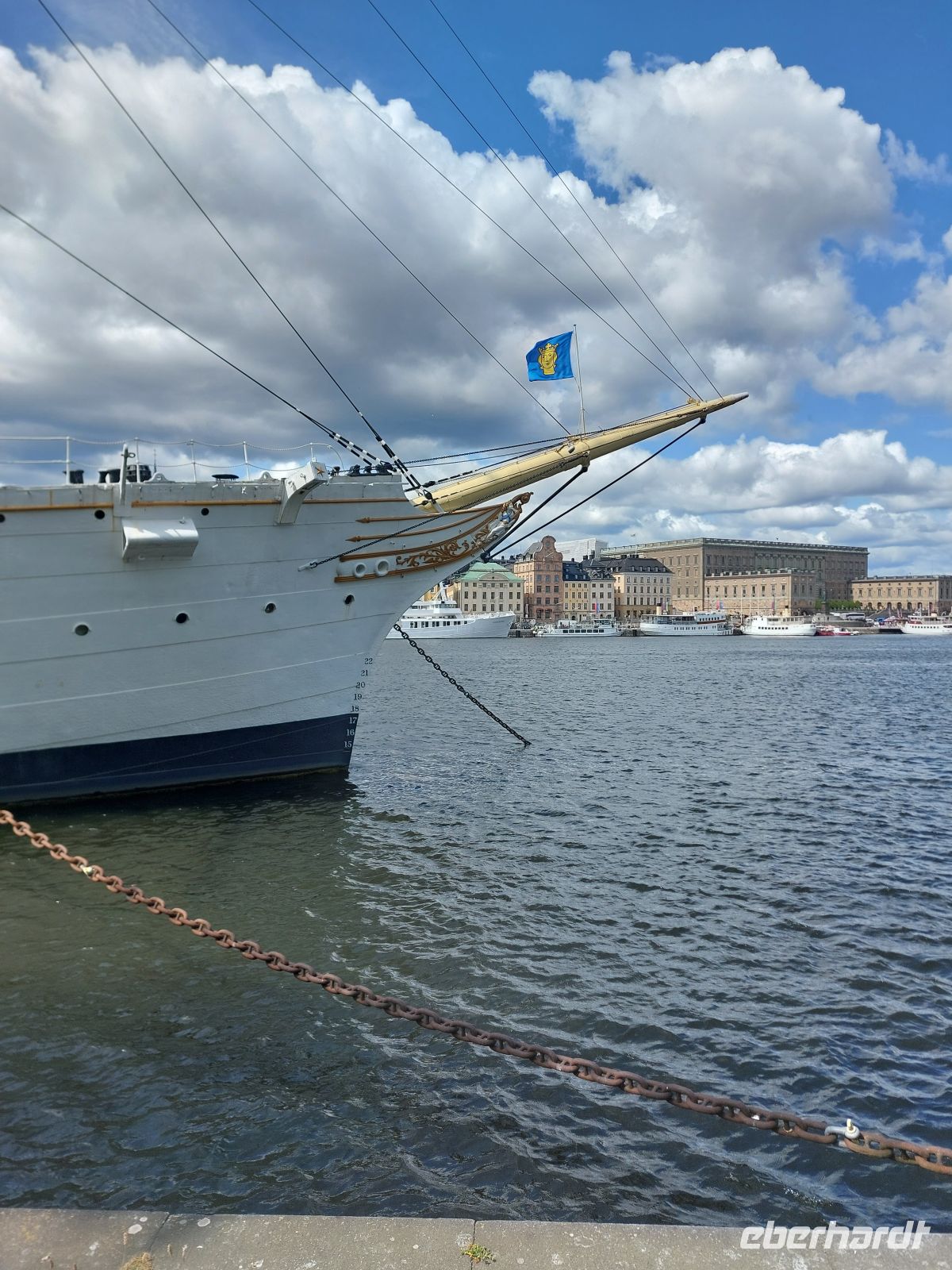 Nach dem leckeren Frühstück trafen wir uns um 09:50 mit unserer Stadtführerin Gunilla für eine dreistündige Stadtrundfahrt, die uns mit Ausstiegen am Stadthaus, am Segelschiff „af Chapman“, am Aussichtspunkt Stadsgardhammen und für die letzten 15 Minuten des Wachwechsels am Schloss genügend Gelegenheit für Fotos gegeben hat. Während der Fahrt gab Gunilla viele interessante Details an uns weiter, sei es über den See Mälaren (bei den Schleusen trifft das Süßwasser des Sees auf das Salzwasser der Ostsee), über das Botschaftsviertel, über die beiden Museen zum maritimen Thema (die Vasa, ein Schlacht-schiff, welches auf seiner Jungfernfahrt versank) oder zum bekanntesten Pop-Export Schwedens, der Gruppe ABBA. Nach einem Rundgang durch Gamla Stan (Altstadt) kehrten wir zunächst zurück zum Hotel.