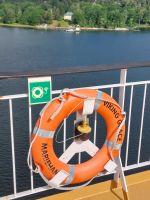 Ein freier Vormittag, den wir genossen haben, um dann zu Fuß die kleine Strecke zur Anlegestelle am Klara Mälarstrand zurückzulegen. Punkt 12.00 Uhr legte die PRINS CARL PHILIP (Baujahr 1901, mehrfach umbenannt) nach Drottningholm (UNESCO-Weltkulturerbe) ab. Nach einer Stunde Fahrzeit, drei Anlagestellen und einer kleinen Einweisung in Nutz- und Zierknoten der Marine durch unseren Reiseleiter kamen wir kurz vor 13.00 Uhr in Drottningholm an, nutzten die Zeit für eine kurze Orientierung, um dann gemütlich für die Führung zum Theater zu gehen. Diese Führung ist wohl englischsprachig, aber unser Reiseleiter übersetzte nach den ersten beiden Räumen und nach Ende der Führung die sehr interessanten Ausführungen der Theaterführerin.