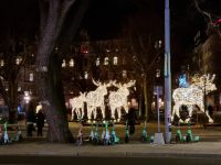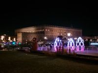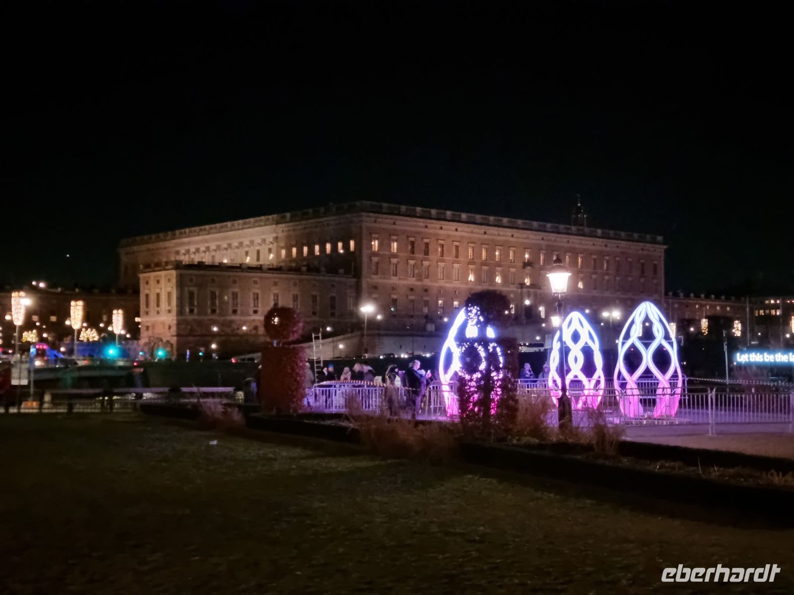 Nach diesem Festmahl besichtigten wir noch die Lichtinstallationen am Stadthaus. Unser Heimweg zum Hotel führte uns dann wieder an den Elchen und Rentieren am Nybroplan vorbei.