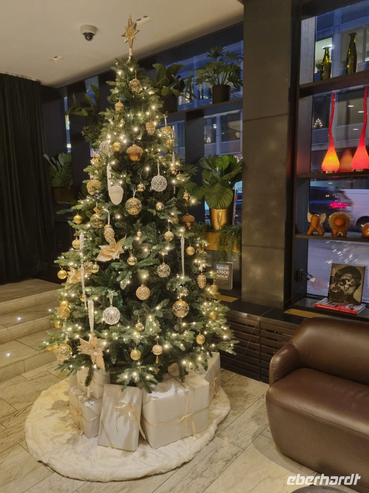Im 4-Sterne Elite Eden Park Hotel im noblen Stadtviertel Östermalm angekommen, gönnten wir uns zunächst eine kurze Verschnaufpause. Dann ging es zu unserem ersten Programmpunkt. Auf uns wartete ein vorweihnachtlicher Altstadt-Rundgang mit unseren beiden örtlichen Reiseführerinnen Renata und Brigitte. Wir spazierten los und kamen wirklich aus dem Staunen nicht heraus: Gebäude, Fenster, Bäume, Schiffe, Einkaufspassagen und ganze Straßenzüge, alles erstrahlte im vorweihnachtlichen Glanz. Dazu überall geschmackvoll geschmückte Weihnachtsbäume. Und dann erst die in Lebensgröße gestalteten Elche und Rentiere am Verkehrsknoten Nybroplan. Das war wirklich großartig!