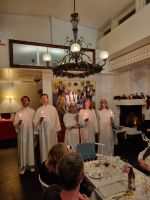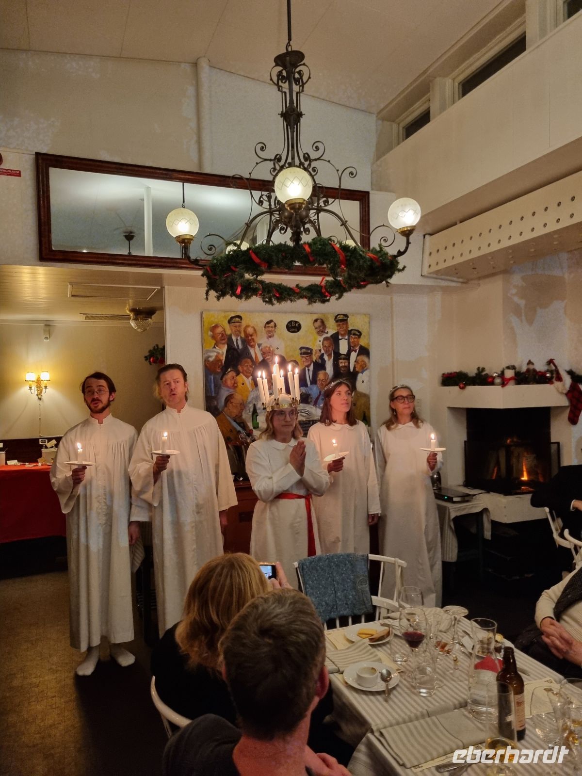 Nach dem Rundgang ließen wir uns das Abendessen schmecken und bekamen dabei schon einen kleinen Vorgeschmack auf das Lucia-Fest, denn zwei Sängerinnen gaben für uns ein kleines Lucia-Konzert.