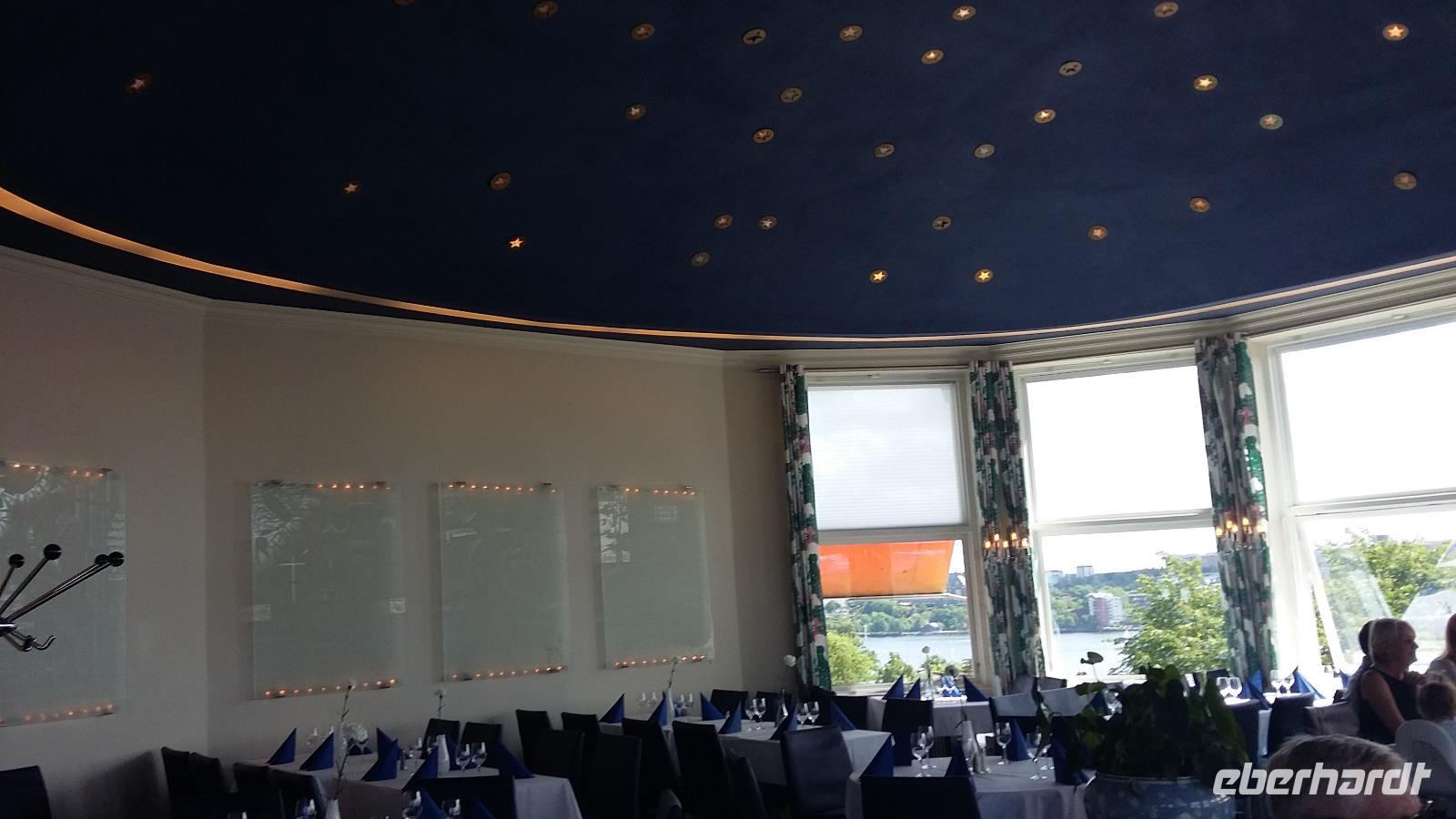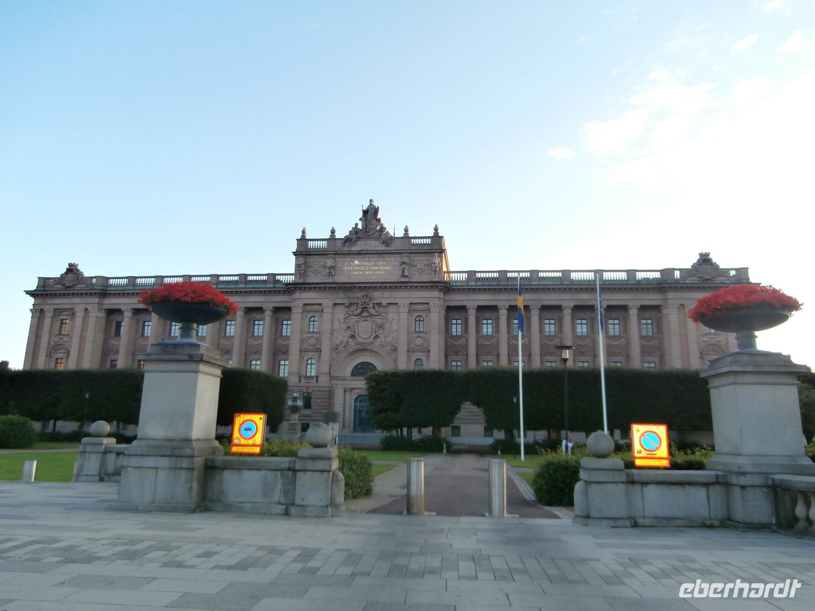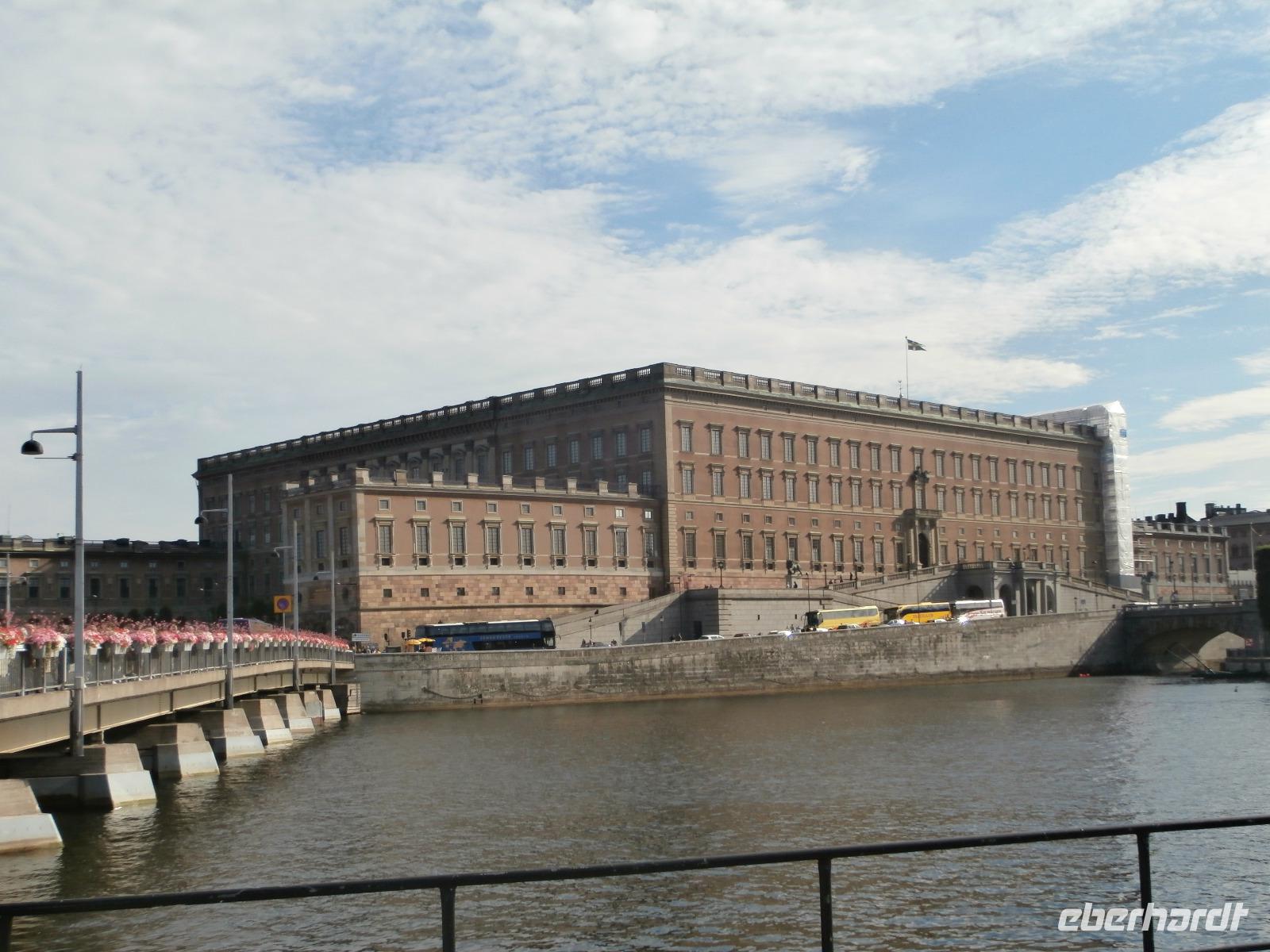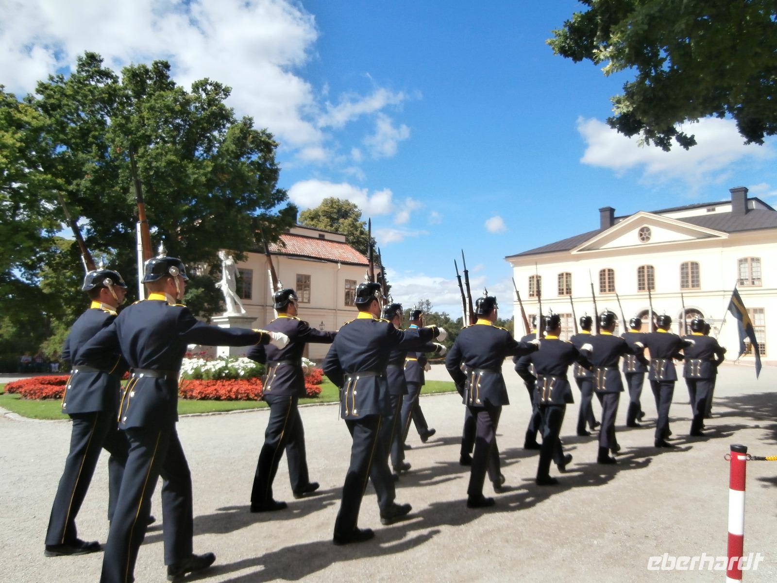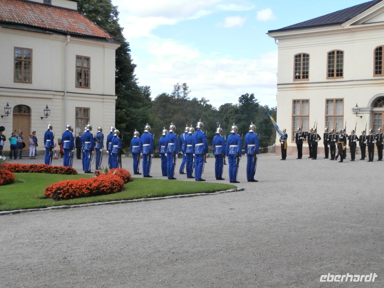 Ein Tag mit Sonnenschein steht uns bevor. Heute geht es mit dem Schiff über den Mälarensee hinaus nach Drottningholm, zur historischen Schlossanlage aus dem 18. Jahrhundert. König Carl XVI. Gustav und Silvia treffen wir nicht im Schloss von Drottningholm an. Bei einem Rundgang betrachten wir uns die freigegebenen Räume, das Schloss ist der Wohnsitz des schwedischen Königspaares mit prunkvollen Paradezimmern, die sind ganzjährig geöffnet. Besonders beeindruckend ist das Schlosstheater, welches wir uns bei einer sehr schönen Führung in deutscher Sprache ansehen. Es werden im Sommer immer noch Stücke und Opern aufgeführt, zum Einsatz kommt die uralte Theatertechnik. Wir erleben während unserer Führung die Orchesterprobe zur Vorstellung , die am Nachmittag stattfindet. Schließlich bleibt uns noch Zeit für einen Spaziergang durch die herrlichen Parkanlagen bis hin zum Chinesischen Lustschlösschen. Wir haben genügend Zeit, um uns diese herrliche Parkanlage zu erschließen, zu fotografieren und zu genießen. Am See sind zahlreich Gänse zu beobachten. Die Rückfahrt hinein nach Stockholm mit dem Schiff ist angenehm und gegen Vier am Nachmittag legen wir an. Unsere Gäste nutzen die verbleibende Freizeit zum Bummeln, Einkaufen und zum Baden. Im Restaurant "Tradition" treffen wir uns zum Abendessen, heute wird Hering auf schwedische Art gegessen, wir sind wieder sehr zufrieden. Mit dem Bus geht es zum Hotel Elite Marina Tower zurück. Uns lacht auch noch am Abend die schwedische Sonne.