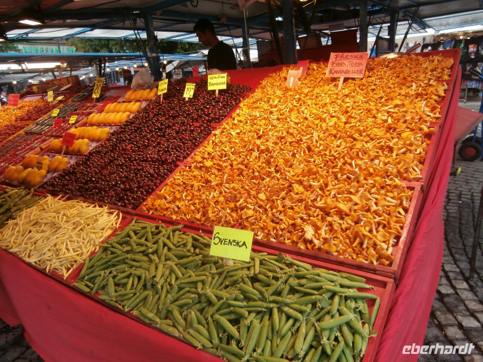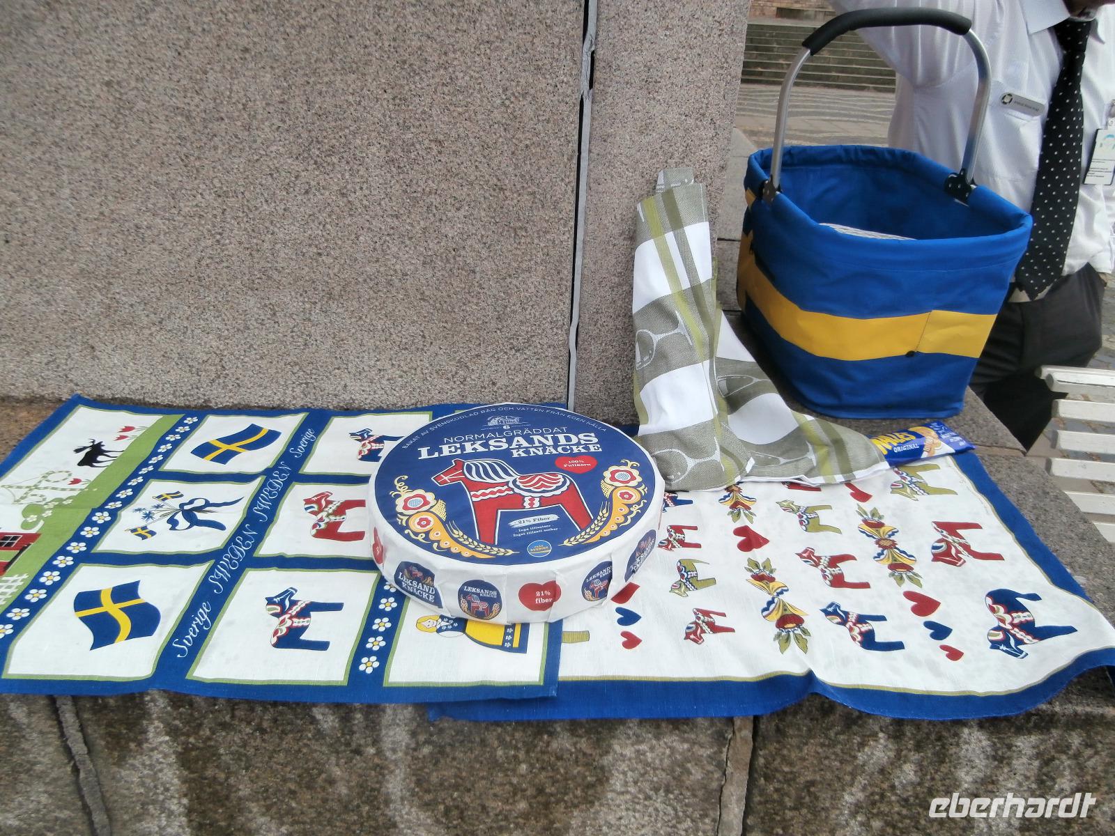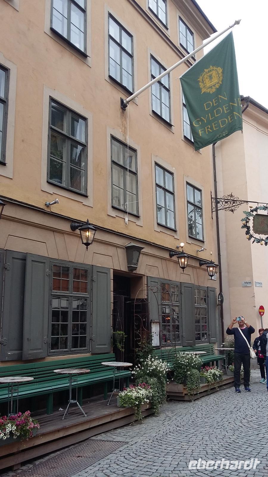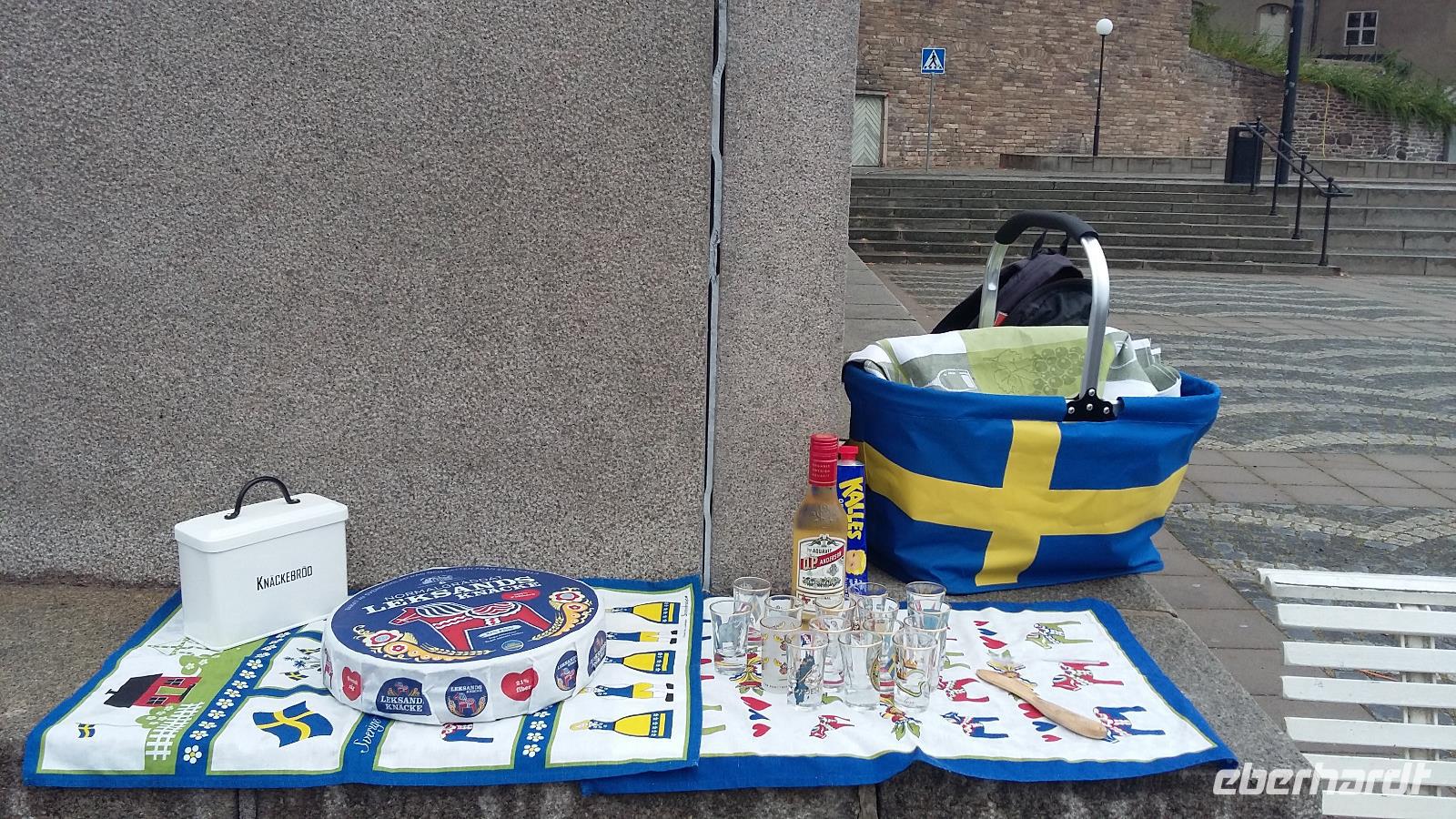 Der heutige Tag steht auch ganz im Zeichen der Kulinarik-wir erleben eine Kulinarische Stadtführung mit Renata durch Stockholm. Leider gibt es Regenschauer, aber unser kleines Picknick nehmen wir fast trocken auf der Insel Riddarholmen in Wassernähe ein. Renata hat alles im Korb dabei, mit Knäckebrot, Kaviar und einem Glas Aquavit überrascht sie uns. Sie erzählt zu allen Köstlichkeiten Geschichten, die in Schweden zur Tradition gehören, im August feiert man Festlykta, wir dekorieren uns dazu mit Hütchen und Lätzchen und lassen den Mond aufgehen.Unsere geschossenen Fotos dazu, begeistern uns alle. Mit dem Bus fahren wir hinüber zu den Saluhallen auf Östermalm, eröffnet 1888. Sie werden derzeit grundlegend saniert und deshalb geht man jetzt im Ausweichquartier einkaufen. Wir verabschieden uns vom Busfahrer und schreiten zur Verkostung in den Hallen. Renata hat dafür gesorgt, dass uns hier wieder kulinarische Leckerbissen angeboten werden. Die erste Kostprobe darf auf keinem Büffet in Schweden fehlen, vor allem zur Weihnachtszeit, bei dem Jule Fest, "Jansons Frestelse" wie Auflauf mit Kartoffel, Anchovis, Zwiebel, Creme freche-alles überbacken im Ofen, sehr lecker. Wir kosten auch Elch und Rentiersalami, bekommen Käsehäppchen und Lättöl-Leichtbier zur Verkostung. Wir verlassen die Saluhallen und streichen auf unserem Weg in die Altstadt der wärmsten Figur Europas über den warmen Bauch. Vorbei am königlichen Schloss spazieren wir hinein in die Altstadt, um hier durch die Gassen zu bummeln und viel zur Geschichte Stockholms und Schwedens zu erfahren. Den Abschluss unseres Rundganges bildet das kleine Mittag Essen in der Altstadt mit „Rilette"-dem geräucherten Rentier Mus, köstlich diese schwedische Spezialität. Diese Kulinarische Stadtführung kann man auf alle Fälle weiterempfehlen, wir alle sind begeistert und sehr satt und zufrieden. Freizeit steht für den Nachmittag auf dem Programm, da es aber nochmals Regengüsse gibt, fahren fast alle Gäste mit mir im Bus zurück zum Hotel. Später geht die Fahrt nochmals gemeinsam hinein zum Abendessen, ich habe Plätze im Restaurant"Tradition" bestellt. Fast Jeder von uns probiert heute das typisch schwedische Gericht "Köttbullar" und sehr zufrieden kehren wir später zum Hotel Elite Tower zurück.