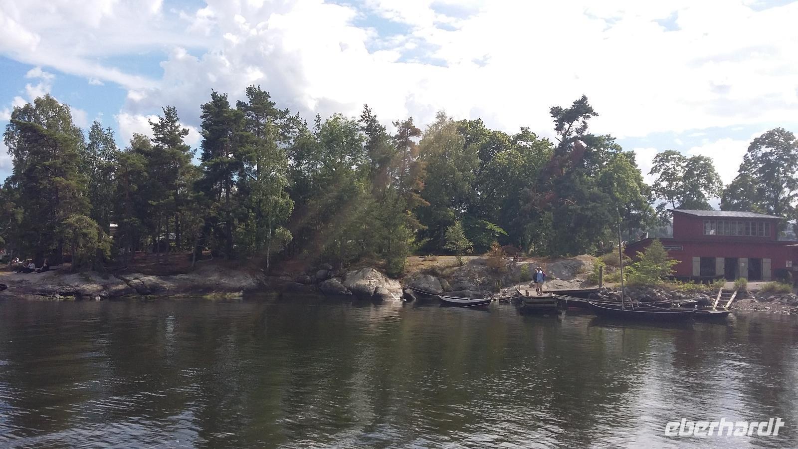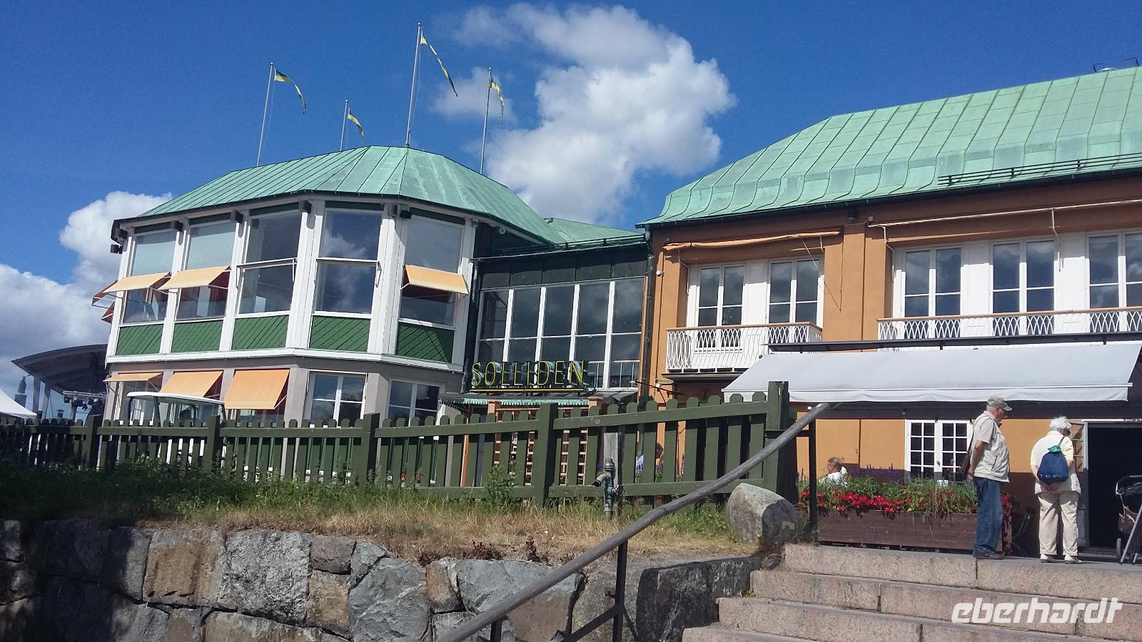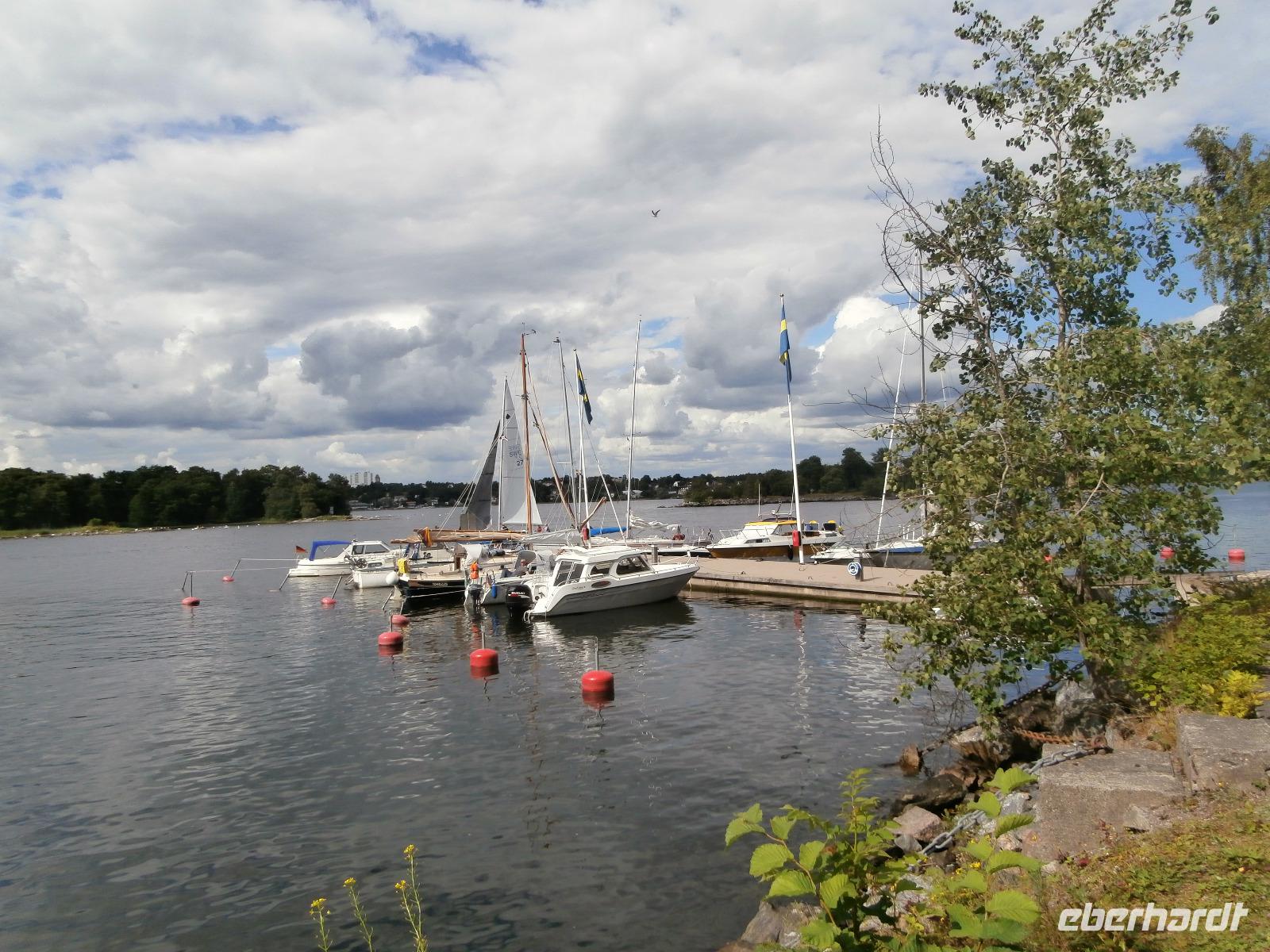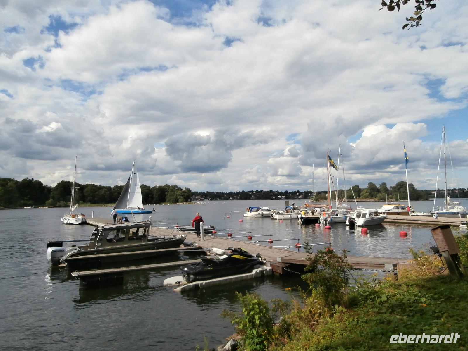 Entspannt geht es heute zur Freizeit in die Stadt, Schlossbesuch, die Wachablösung und Altstadtbummel stehen auf dem Programm, aber auch der Spaziergang über die Drottningsgata ist eingeplant. Eine dreistündige Fahrradtour, geführt von Schweden Bike, hat ein Reisegast gebucht, am Morgen fahren wir zusammen zum Treffpunkt und dann wird das Rad übernommen. Nach einer kurzen Proberunde startet die Rundfahrt, die von einer deutschen Führung begleitet wird. Gut informiert und begeistert kommt unsere Radfahrerin zurück. Am Nachmittag 14.30 Uhr treffen wir uns an der Schiffsanlegestelle Nybroplan, um auf die Schäreninsel Fjädarholmarna zu fahren. Es sind bei diesem schönen Wetter viele Fahrgäste, die am Anleger warten. Nicht nur die Fahrt dorthin, auch die Insel selbst ist idyllisch und sehenswert. Glaskunst, Keramik, Silberschmuck und Bilder werden in kleinen Werkstätten hergestellt. Viele kleine Restaurants laden zur Einkehr und zum Sonnen ein. Auch Baden ist angesagt, auf den Felsen kann man ausruhen, sich sonnen und ein Picknick abhalten. Mehrere Kreuzfahrtschiffe nehmen Fahrt vorbei an der Insel, die wir recht schnell umrundet haben. Im Restaurant „Rökeriet" habe ich telefonisch Plätze fürs Abendessen reservieren lassen. Nach Fünf kehren wir ein und es dauert nicht lange, da erscheint die nette Bedienung und nimmt unsere Bestellung auf. Wir ordern Leicht Bier, es ist schmackhaft und auch nicht so preisintensiv. Leckere Gerichte, die typisch für die Inseln sind, lassen wir uns schmecken. Pünktlich 19 Uhr legt unser Schiff von der Insel ab, leider müssen wir am Hotel „Elite Marina Tower" vorbei fahren, die Haltestelle steht nicht auf dem Fahrplan. 20 Uhr legt unser Schiff Nr. 80 am Nybroplan ab und nach kurzer Fahrt ist unsere Ankunft im Hotel. Wieder ein sehr schöner Tag in Stockholm, sonnig, warm und voller neuer Eindrücke geht er zu Ende.