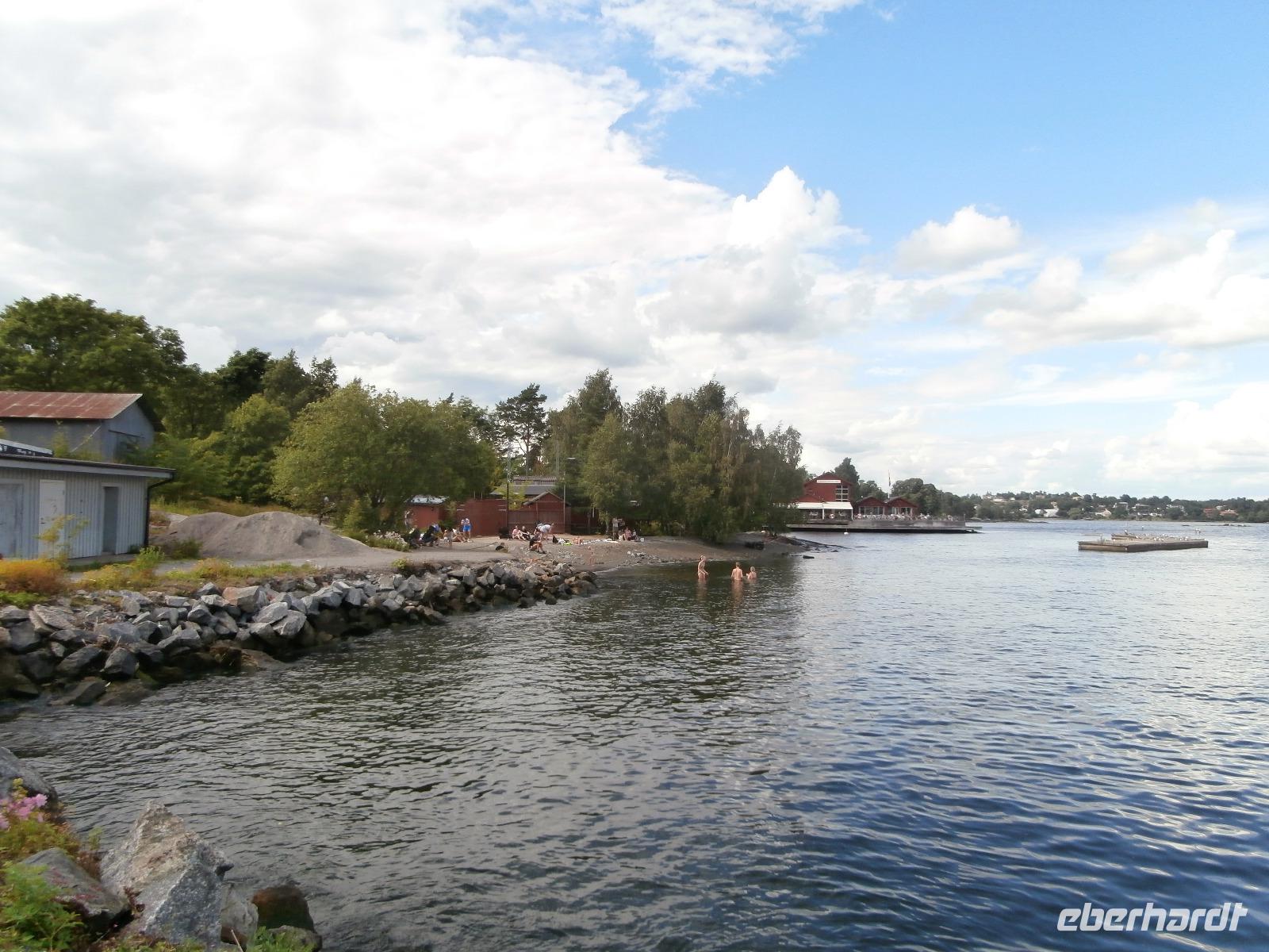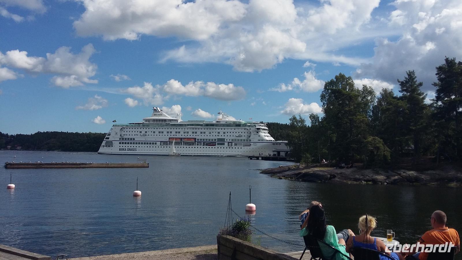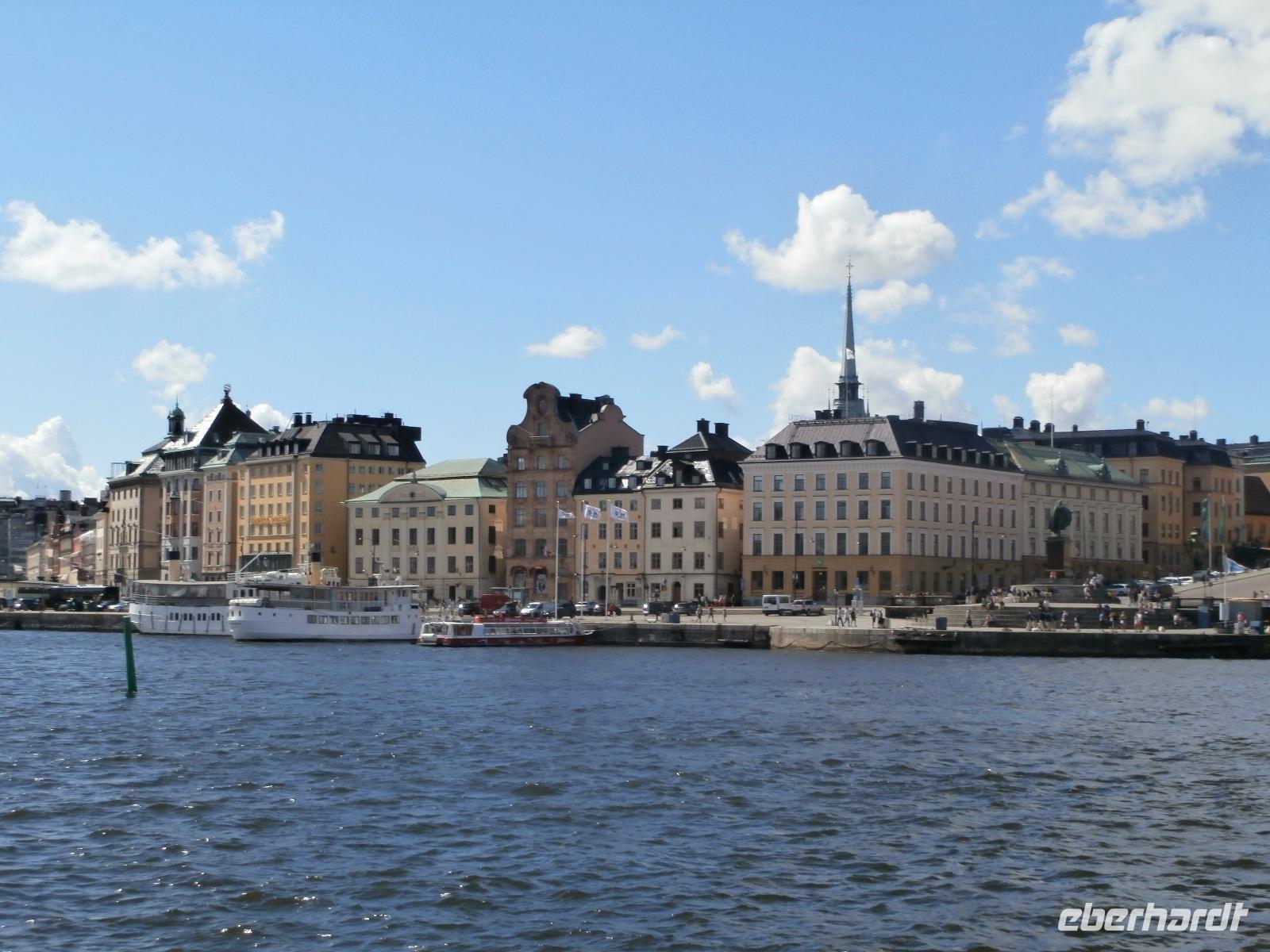 Entspannt geht es heute zur Freizeit in die Stadt, Schlossbesuch, die Wachablösung und Altstadtbummel stehen auf dem Programm, aber auch der Spaziergang über die Drottningsgata ist eingeplant. Eine dreistündige Fahrradtour, geführt von Schweden Bike, hat ein Reisegast gebucht, am Morgen fahren wir zusammen zum Treffpunkt und dann wird das Rad übernommen. Nach einer kurzen Proberunde startet die Rundfahrt, die von einer deutschen Führung begleitet wird. Gut informiert und begeistert kommt unsere Radfahrerin zurück. Am Nachmittag 14.30 Uhr treffen wir uns an der Schiffsanlegestelle Nybroplan, um auf die Schäreninsel Fjädarholmarna zu fahren. Es sind bei diesem schönen Wetter viele Fahrgäste, die am Anleger warten. Nicht nur die Fahrt dorthin, auch die Insel selbst ist idyllisch und sehenswert. Glaskunst, Keramik, Silberschmuck und Bilder werden in kleinen Werkstätten hergestellt. Viele kleine Restaurants laden zur Einkehr und zum Sonnen ein. Auch Baden ist angesagt, auf den Felsen kann man ausruhen, sich sonnen und ein Picknick abhalten. Mehrere Kreuzfahrtschiffe nehmen Fahrt vorbei an der Insel, die wir recht schnell umrundet haben. Im Restaurant „Rökeriet" habe ich telefonisch Plätze fürs Abendessen reservieren lassen. Nach Fünf kehren wir ein und es dauert nicht lange, da erscheint die nette Bedienung und nimmt unsere Bestellung auf. Wir ordern Leicht Bier, es ist schmackhaft und auch nicht so preisintensiv. Leckere Gerichte, die typisch für die Inseln sind, lassen wir uns schmecken. Pünktlich 19 Uhr legt unser Schiff von der Insel ab, leider müssen wir am Hotel „Elite Marina Tower" vorbei fahren, die Haltestelle steht nicht auf dem Fahrplan. 20 Uhr legt unser Schiff Nr. 80 am Nybroplan ab und nach kurzer Fahrt ist unsere Ankunft im Hotel. Wieder ein sehr schöner Tag in Stockholm, sonnig, warm und voller neuer Eindrücke geht er zu Ende.