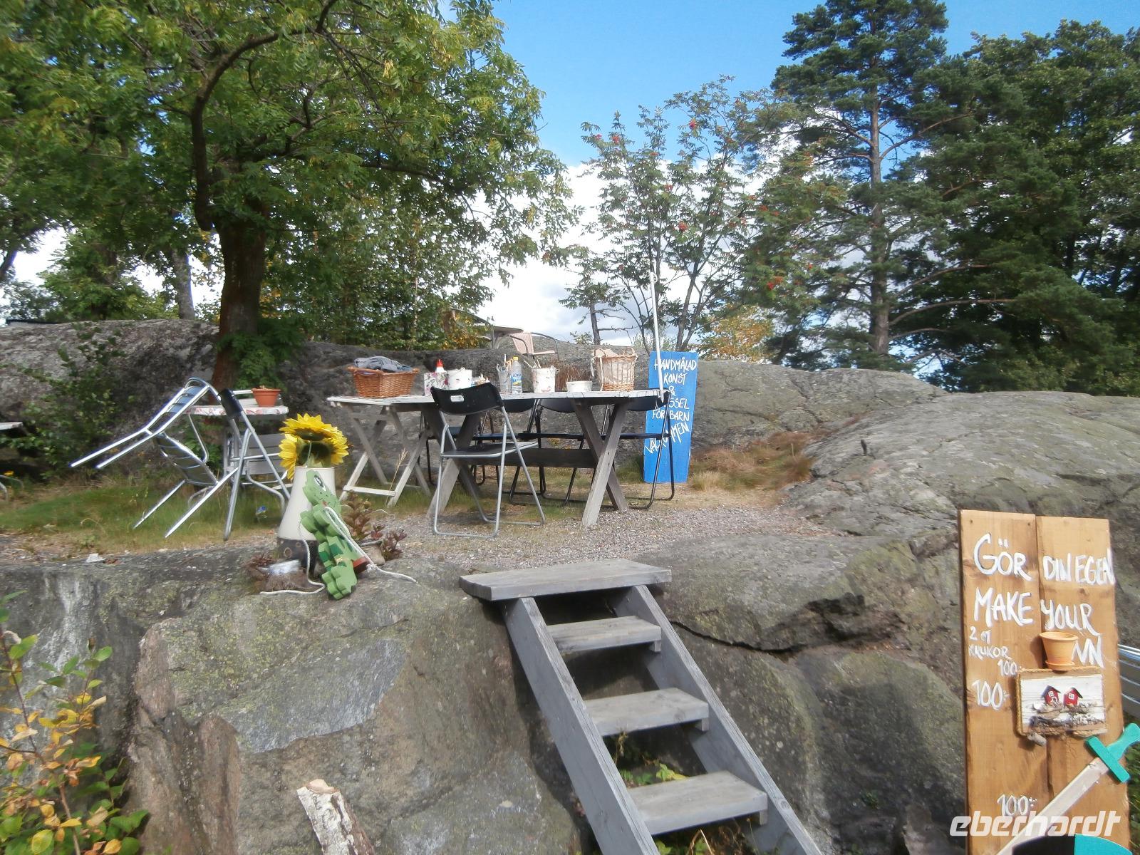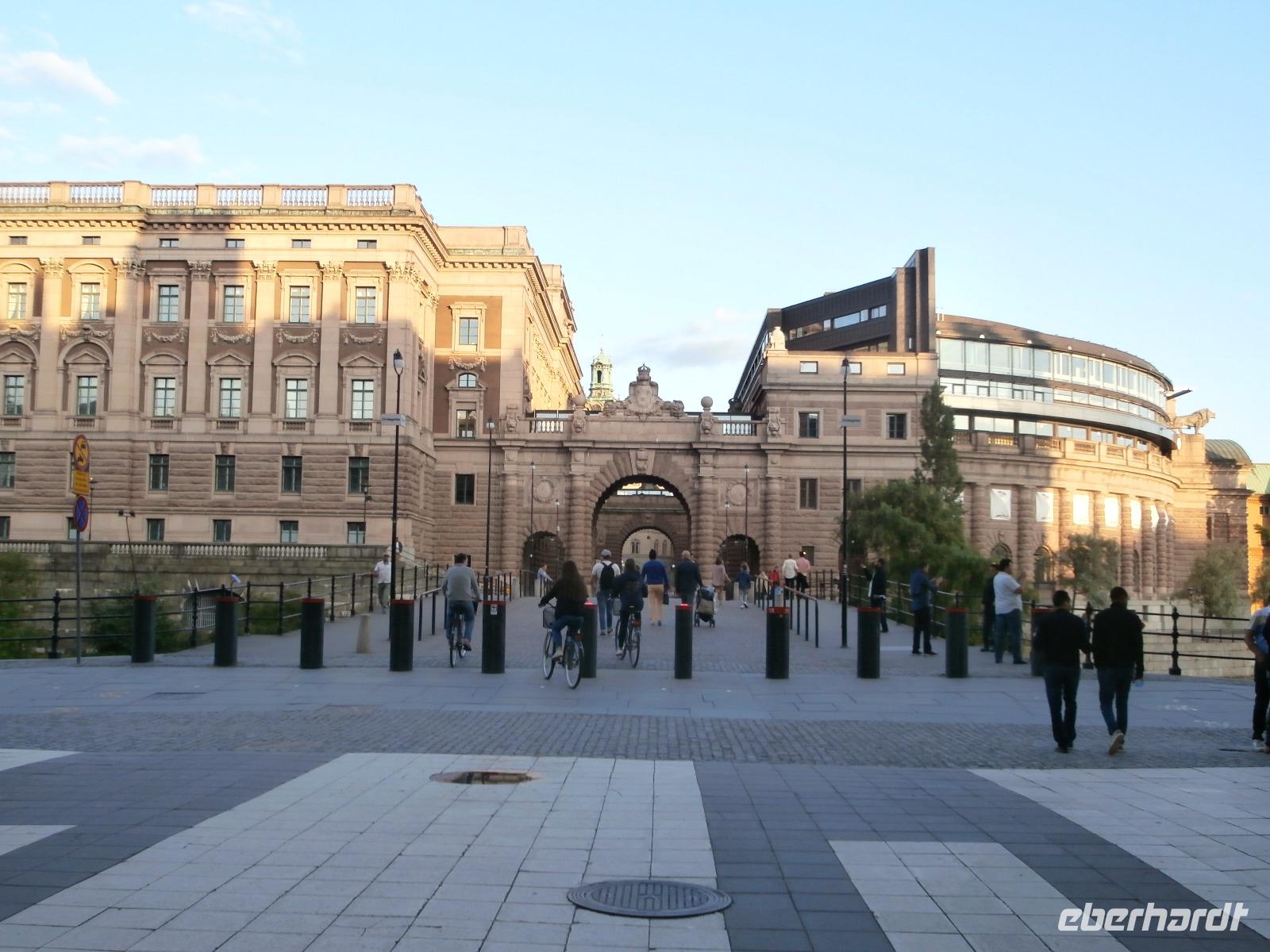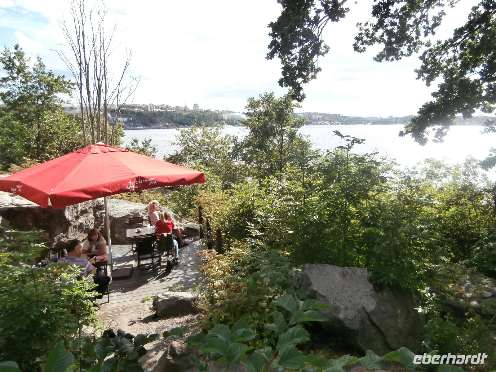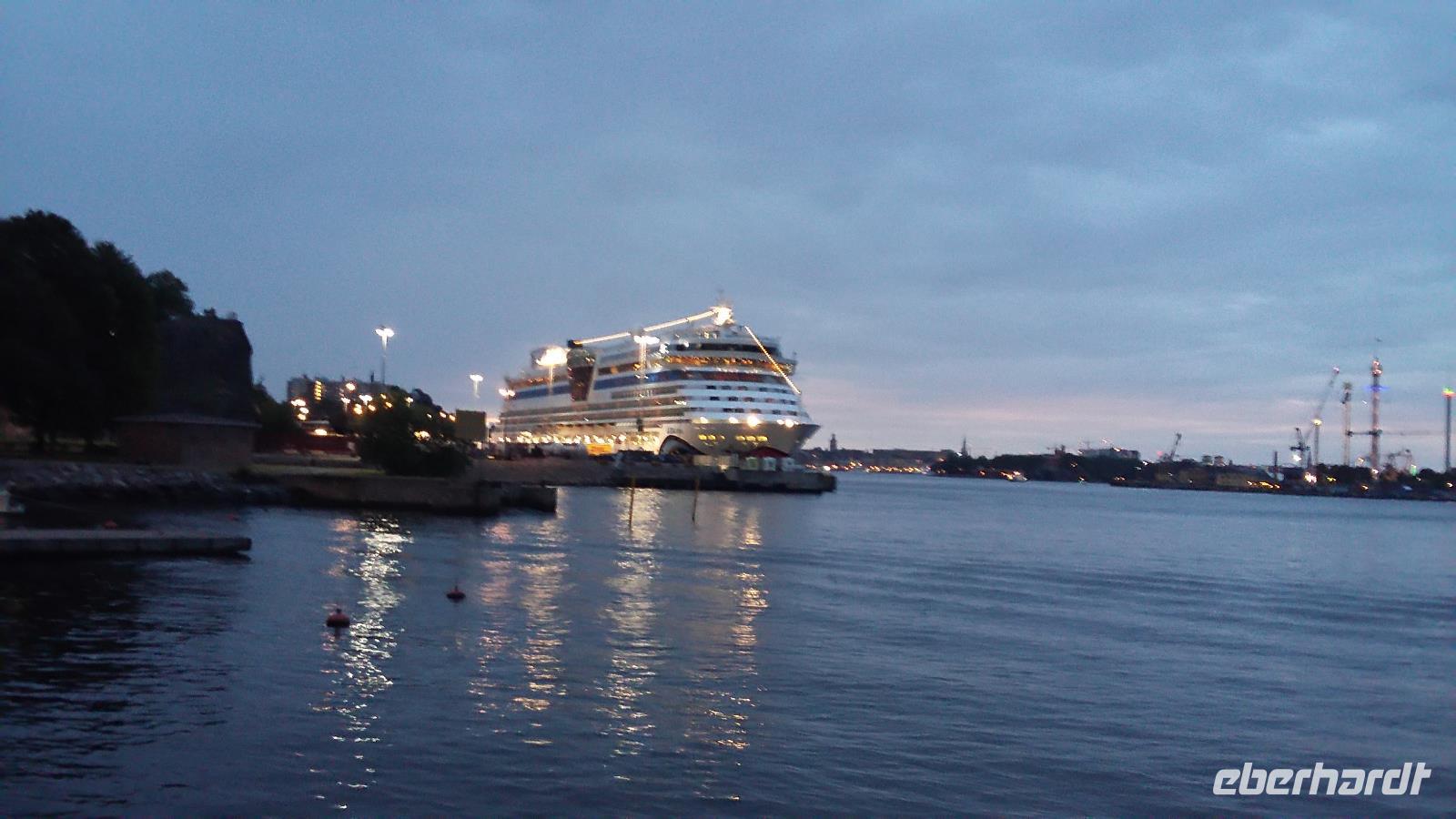 Entspannt geht es heute zur Freizeit in die Stadt, Schlossbesuch, die Wachablösung und Altstadtbummel stehen auf dem Programm, aber auch der Spaziergang über die Drottningsgata ist eingeplant. Eine dreistündige Fahrradtour, geführt von Schweden Bike, hat ein Reisegast gebucht, am Morgen fahren wir zusammen zum Treffpunkt und dann wird das Rad übernommen. Nach einer kurzen Proberunde startet die Rundfahrt, die von einer deutschen Führung begleitet wird. Gut informiert und begeistert kommt unsere Radfahrerin zurück. Am Nachmittag 14.30 Uhr treffen wir uns an der Schiffsanlegestelle Nybroplan, um auf die Schäreninsel Fjädarholmarna zu fahren. Es sind bei diesem schönen Wetter viele Fahrgäste, die am Anleger warten. Nicht nur die Fahrt dorthin, auch die Insel selbst ist idyllisch und sehenswert. Glaskunst, Keramik, Silberschmuck und Bilder werden in kleinen Werkstätten hergestellt. Viele kleine Restaurants laden zur Einkehr und zum Sonnen ein. Auch Baden ist angesagt, auf den Felsen kann man ausruhen, sich sonnen und ein Picknick abhalten. Mehrere Kreuzfahrtschiffe nehmen Fahrt vorbei an der Insel, die wir recht schnell umrundet haben. Im Restaurant „Rökeriet" habe ich telefonisch Plätze fürs Abendessen reservieren lassen. Nach Fünf kehren wir ein und es dauert nicht lange, da erscheint die nette Bedienung und nimmt unsere Bestellung auf. Wir ordern Leicht Bier, es ist schmackhaft und auch nicht so preisintensiv. Leckere Gerichte, die typisch für die Inseln sind, lassen wir uns schmecken. Pünktlich 19 Uhr legt unser Schiff von der Insel ab, leider müssen wir am Hotel „Elite Marina Tower" vorbei fahren, die Haltestelle steht nicht auf dem Fahrplan. 20 Uhr legt unser Schiff Nr. 80 am Nybroplan ab und nach kurzer Fahrt ist unsere Ankunft im Hotel. Wieder ein sehr schöner Tag in Stockholm, sonnig, warm und voller neuer Eindrücke geht er zu Ende.