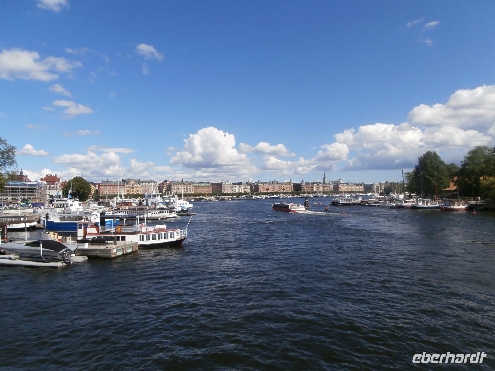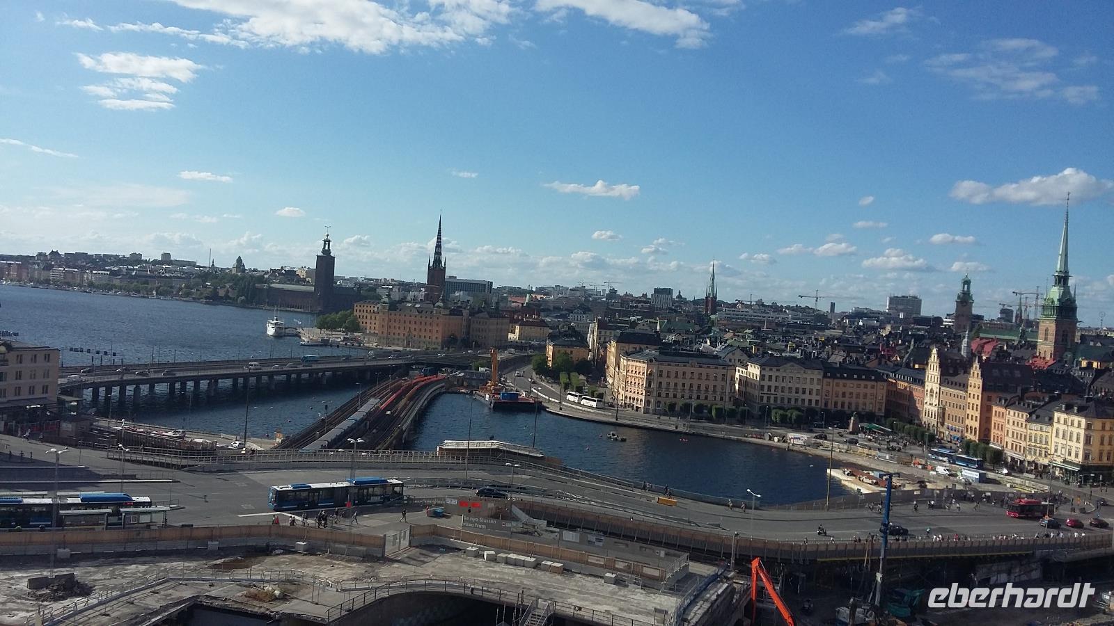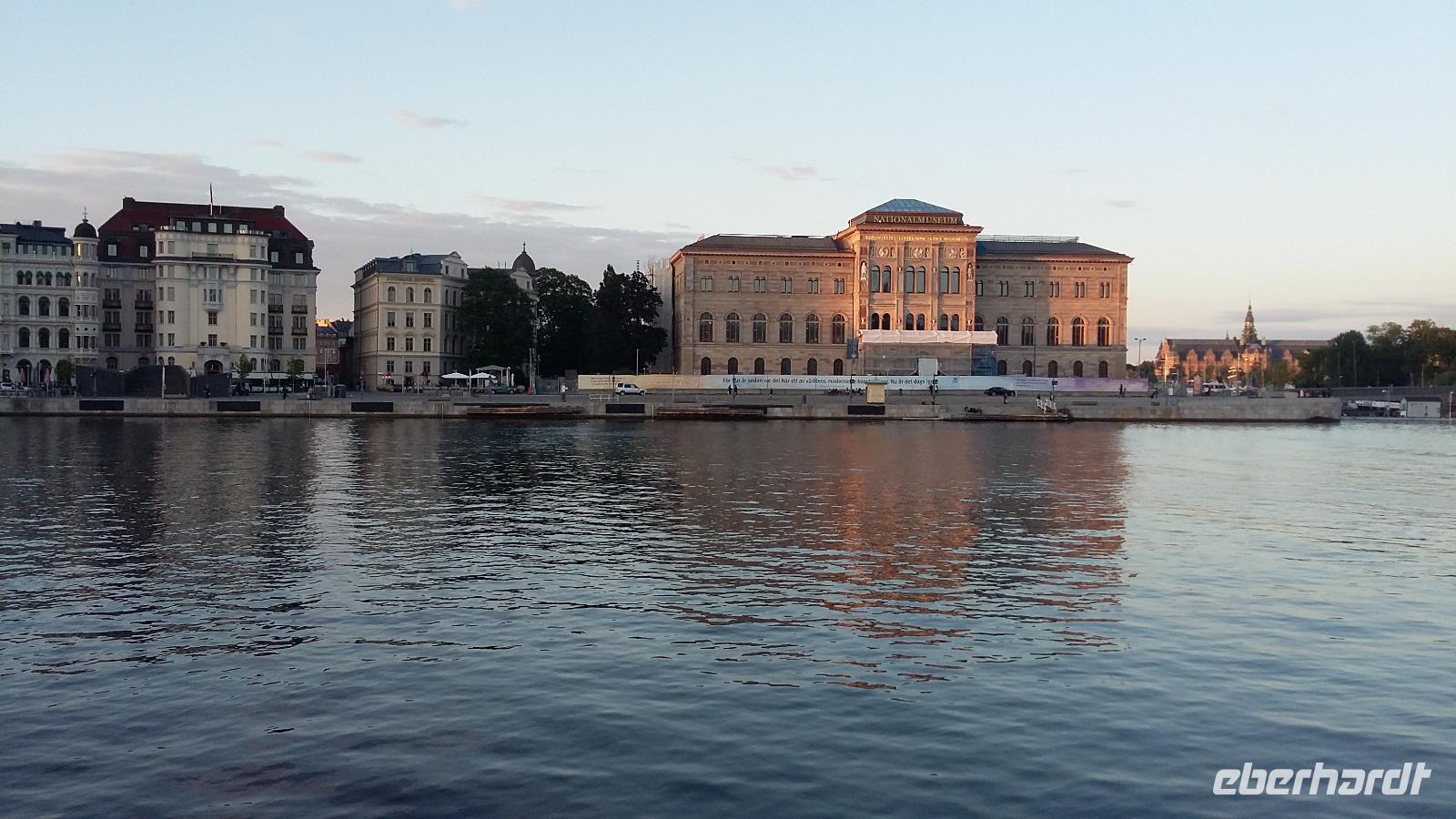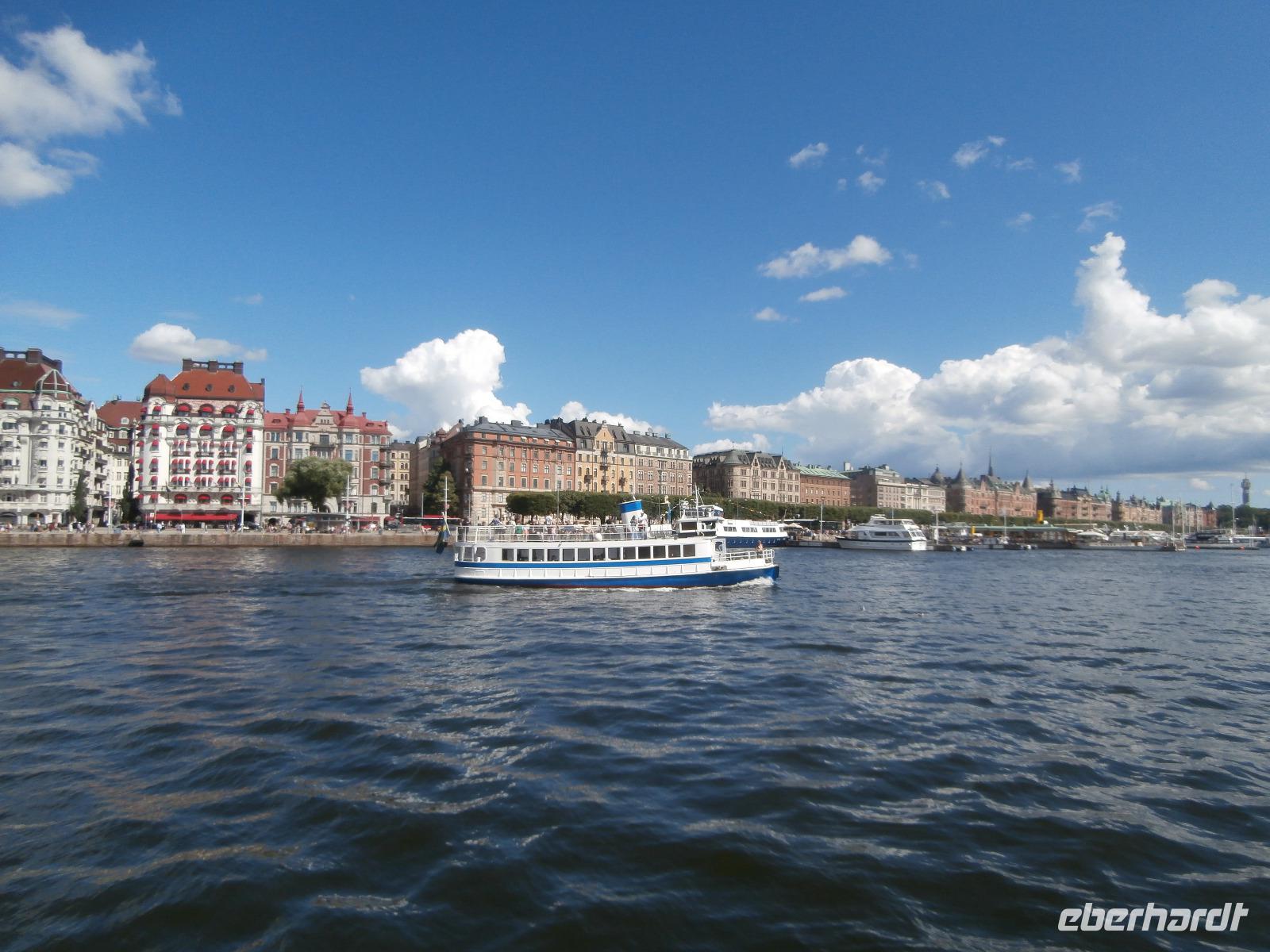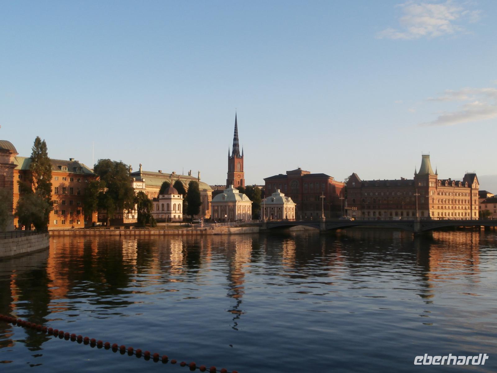 Nach einem guten Sonntags Frühstück starten wir in den Tag, mit dem Bus fahren wir bis zum Königlichen Schloss. Ein kurzer Spaziergang bis zur Ablegestelle Strömkajen und Zehn Uhr beginnt unsere Bootstour „ Unter den Brücken von Stockholm" bei sehr schönem Wetter. Blauer Himmel und Sonne so genießen wir die Zeit an Bord. Fantastische Aussichten auf die verschiedenen Inseln und eine Schleusung sind auch dabei. Am Nachmittag besuchen wir gemeinsam das Freilichtmuseum Skansen.Es ist das älteste Freilichtmuseum der Welt mit dem historischen Schweden in Miniatur. Hier kann man skandinavische Wildtiere sehen, es gibt ein Aquarium, viele alte Häuser, ein Theater und daneben das Restaurant Solliden, hier gibt Eberhardt Travel als WOW ein typisches, Schwedisches Menü, das „Smorgasbord" aus. Ein leckeres Büffet mit vielen Spezialitäten Schwedens serviert in einem schönen Rahmen und sehr schmackhaft. In der deutschen Kirche gibt es 17 Uhr ein Konzert mit einem deutschen Blasorchester aus Marburg, ein Kunst und Hörgenuss, den ich allein erlebe. Unsere Reisegäste haben noch einige andere Sehenswürdigkeiten auf dem Besichtigungsprogramm. Beim Abendspaziergang vom Hotel Elite Marina Tower hinter zu den Neuen Wohnsiedlungen, die toll anzusehen sind, treffen wir uns wieder. Hier am Restaurant Doclands kann man auch speisen und rechts hoch befindet sich der Supermarkt ICA, der hat täglich bis 22 Uhr geöffnet.