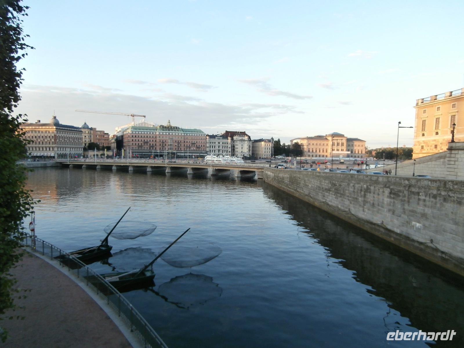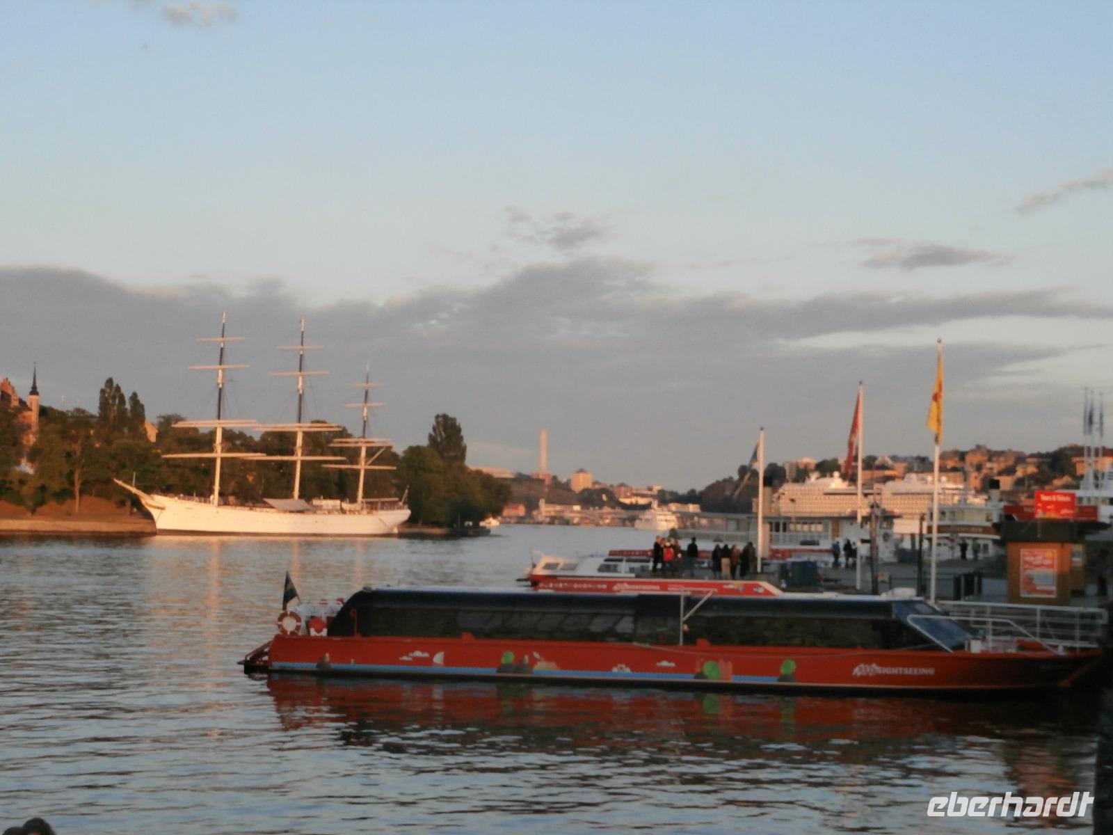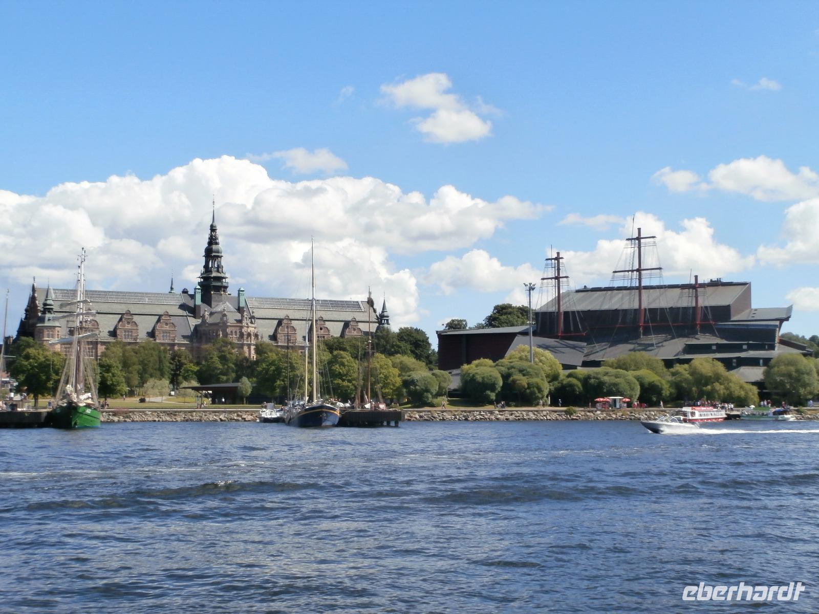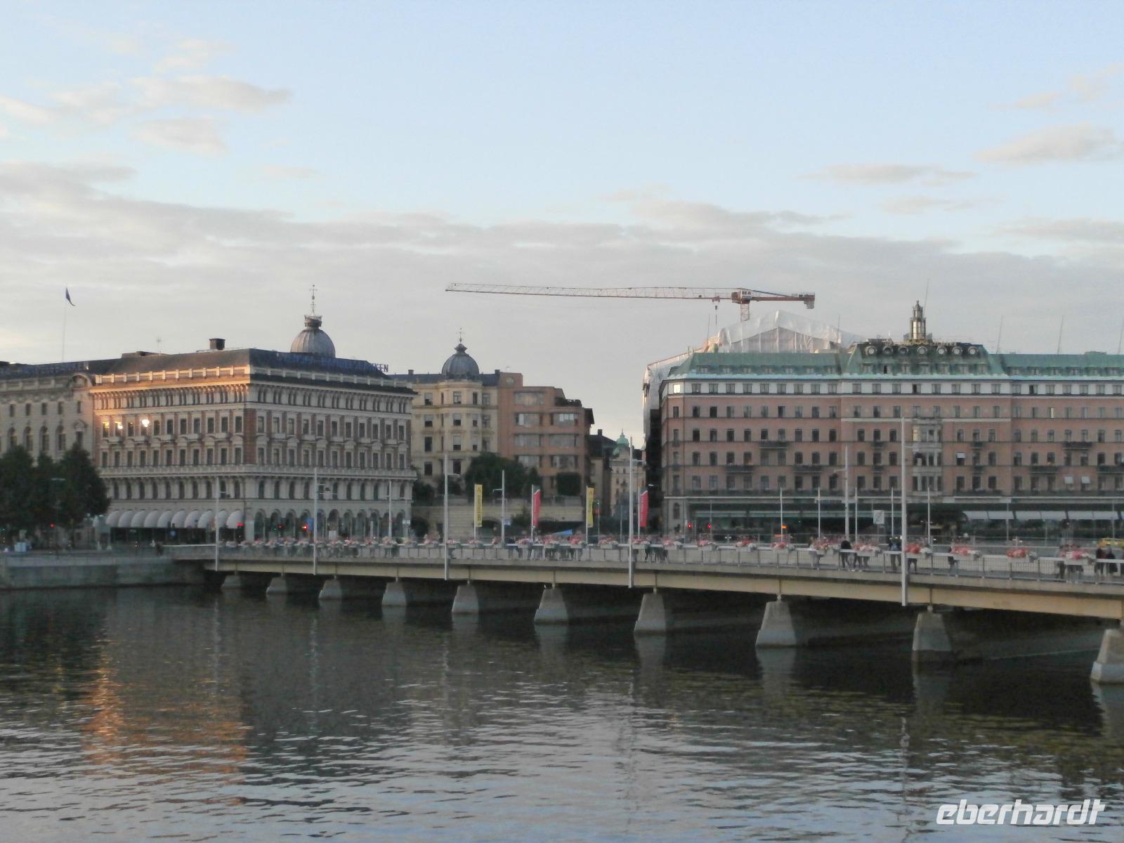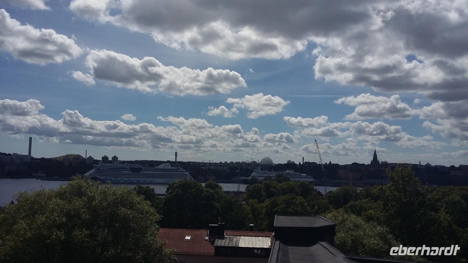 Nach einem guten Sonntags Frühstück starten wir in den Tag, mit dem Bus fahren wir bis zum Königlichen Schloss. Ein kurzer Spaziergang bis zur Ablegestelle Strömkajen und Zehn Uhr beginnt unsere Bootstour „ Unter den Brücken von Stockholm" bei sehr schönem Wetter. Blauer Himmel und Sonne so genießen wir die Zeit an Bord. Fantastische Aussichten auf die verschiedenen Inseln und eine Schleusung sind auch dabei. Am Nachmittag besuchen wir gemeinsam das Freilichtmuseum Skansen.Es ist das älteste Freilichtmuseum der Welt mit dem historischen Schweden in Miniatur. Hier kann man skandinavische Wildtiere sehen, es gibt ein Aquarium, viele alte Häuser, ein Theater und daneben das Restaurant Solliden, hier gibt Eberhardt Travel als WOW ein typisches, Schwedisches Menü, das „Smorgasbord" aus. Ein leckeres Büffet mit vielen Spezialitäten Schwedens serviert in einem schönen Rahmen und sehr schmackhaft. In der deutschen Kirche gibt es 17 Uhr ein Konzert mit einem deutschen Blasorchester aus Marburg, ein Kunst und Hörgenuss, den ich allein erlebe. Unsere Reisegäste haben noch einige andere Sehenswürdigkeiten auf dem Besichtigungsprogramm. Beim Abendspaziergang vom Hotel Elite Marina Tower hinter zu den Neuen Wohnsiedlungen, die toll anzusehen sind, treffen wir uns wieder. Hier am Restaurant Doclands kann man auch speisen und rechts hoch befindet sich der Supermarkt ICA, der hat täglich bis 22 Uhr geöffnet.