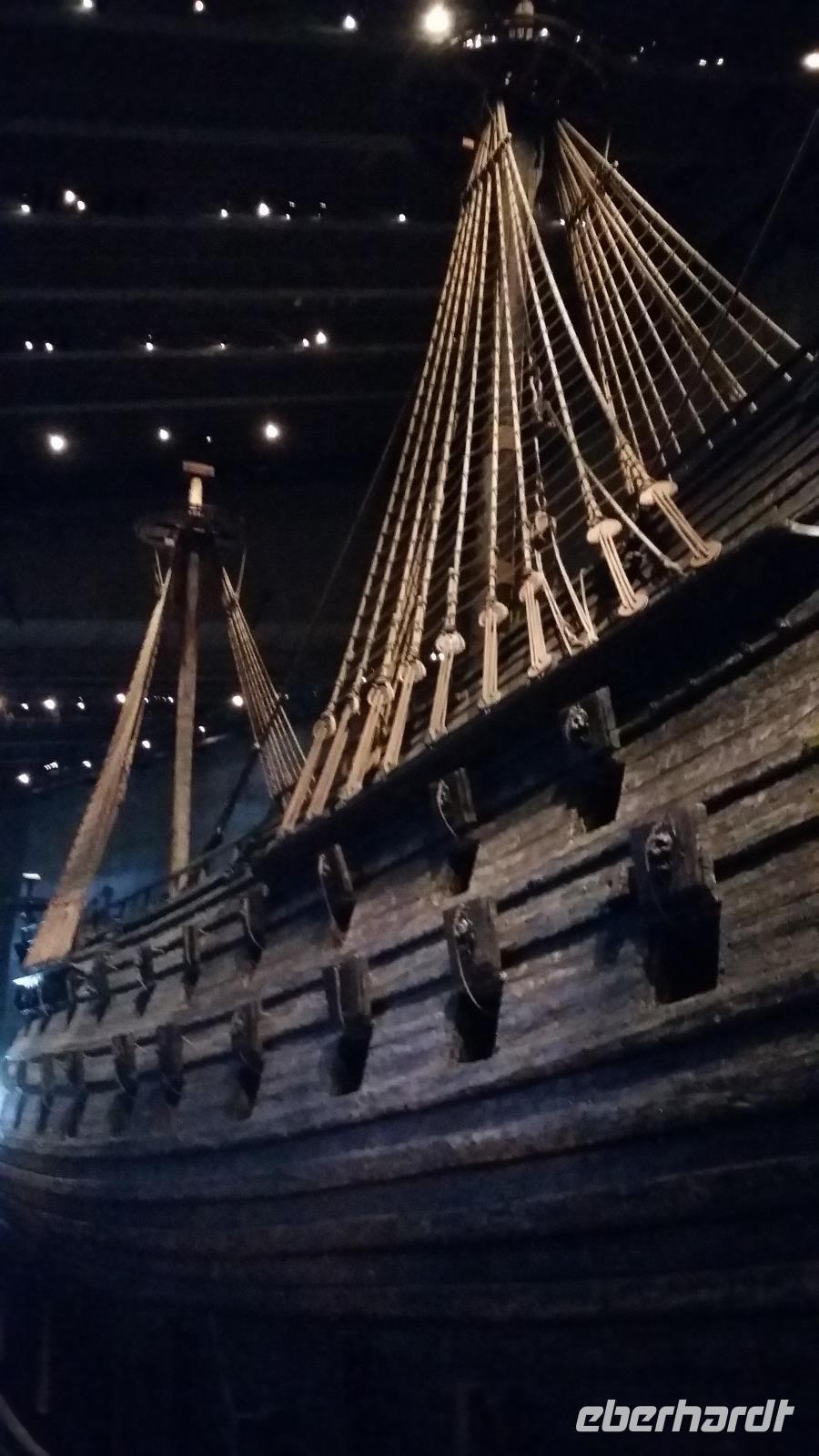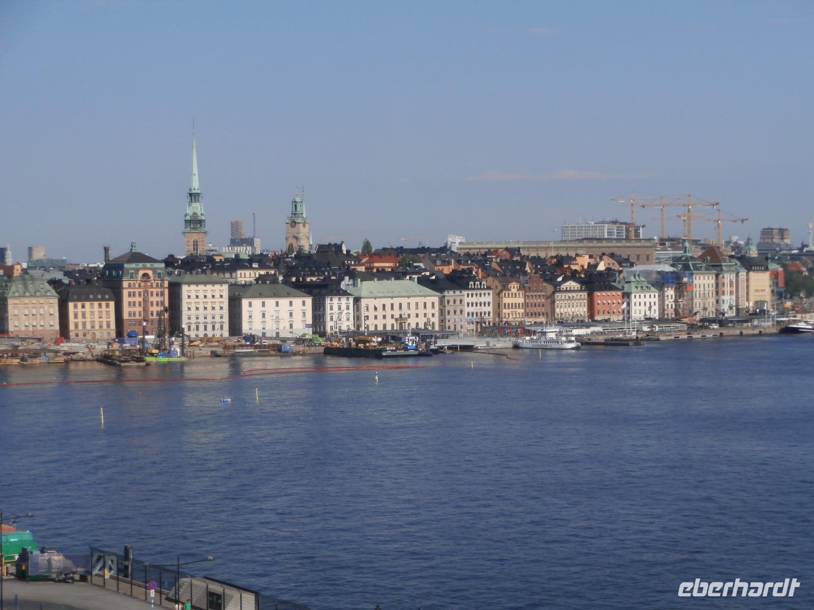 Ich werde wieder in Nossen abgeholt, mit mir fahren weitere Reisegäste aus Dresden nach Berlin Tegel. Die Fluggesellschaft SAS fliegt uns nach Stockholm. Auf dem Flughafen Arlanda landen wir gegen Mittag. Ich kaufe noch im Terminal die Stockholm Travel Card, mit ihr können wir uns in den nächsten Tagen per Schiff, Bus und Straßenbahn in der schwedischen Hauptstadt bewegen. Unser Hotel, das 4 Sterne Elite Hotel Marina Tower, liegt ganz nah am Zentrum und ist gegenüber der Insel Djurgarden. Nach dem Bezug der Zimmer fahren wir am Nachmittag hinüber zum Vasa Museum, es ist weltweit das einzige verbliebene Schiff aus dem 17. Jahrhundert. Wir besichtigen es gemeinsam dieses Schiff, welches aus bis zu 95% Originalteilen besteht. Bei hitzigen Sommertemperaturen erleben wir den 1. Tag in Stockholm. Zum Abendessen treffen wir uns im Hotel, ich habe Plätze draußen vorm Restaurant bestellt. Schön klingt unser erster Tag in Stockholm aus.