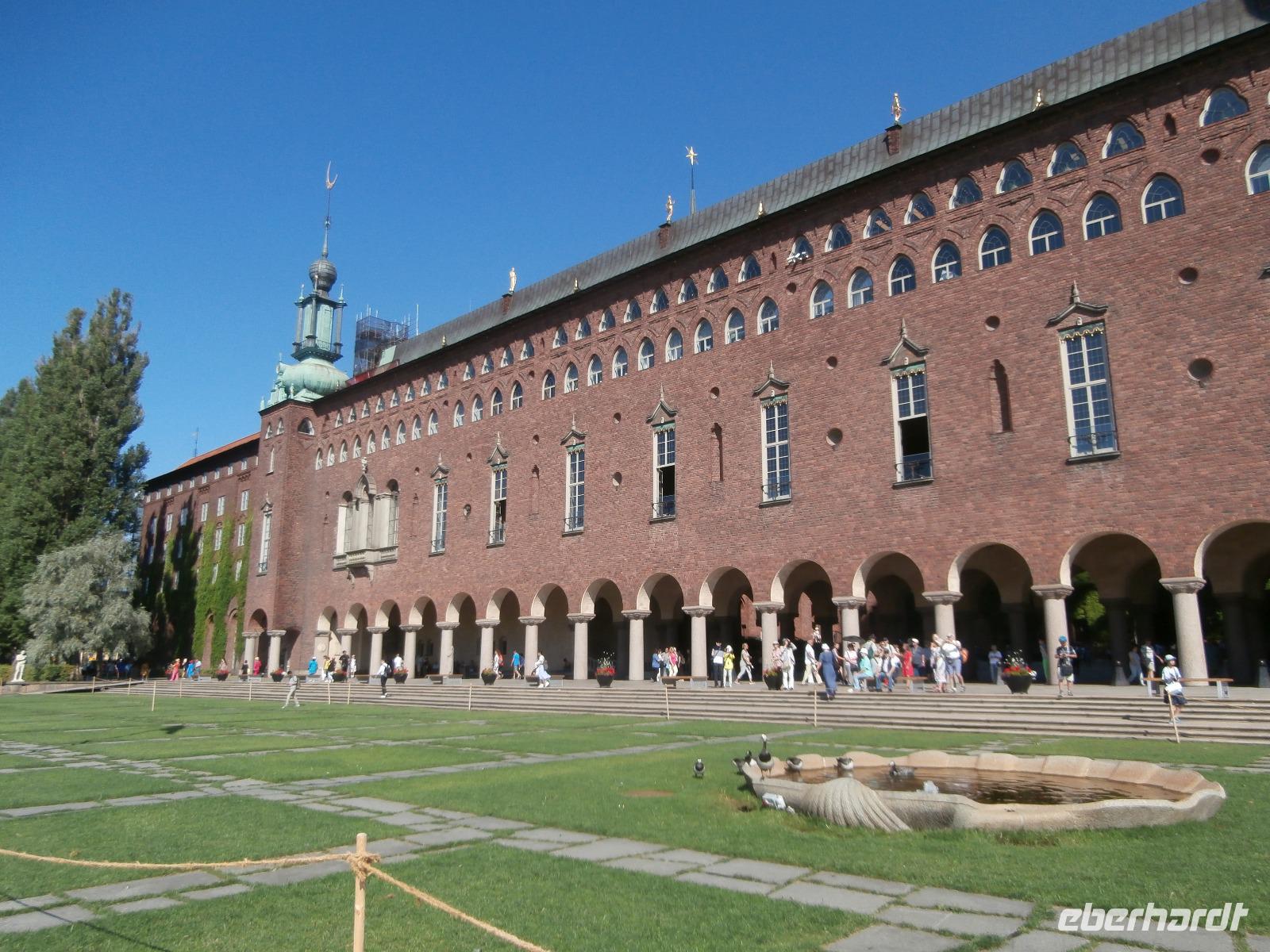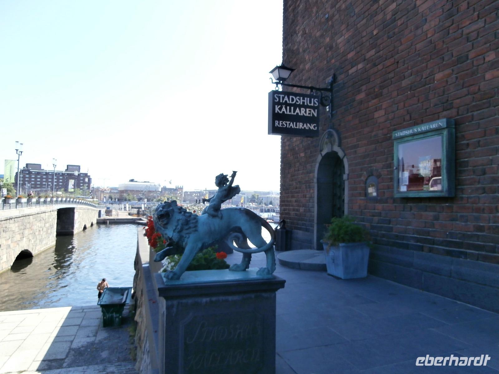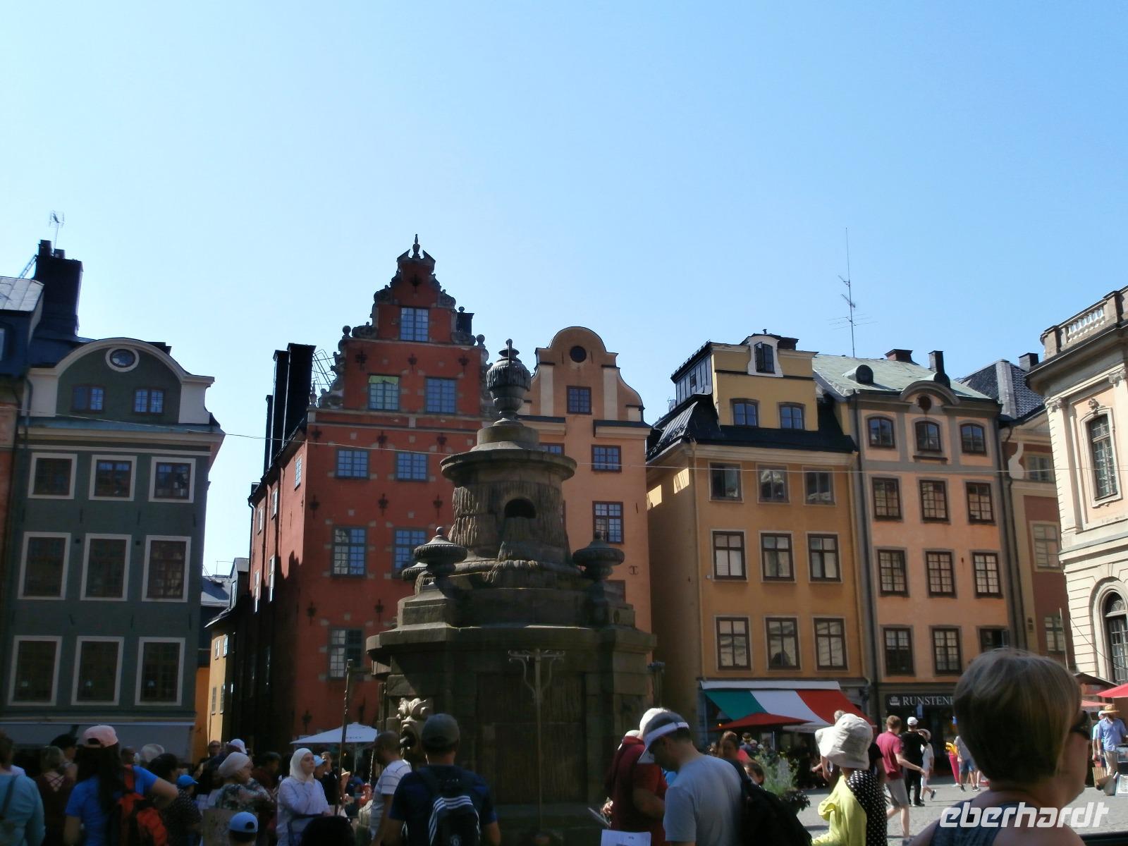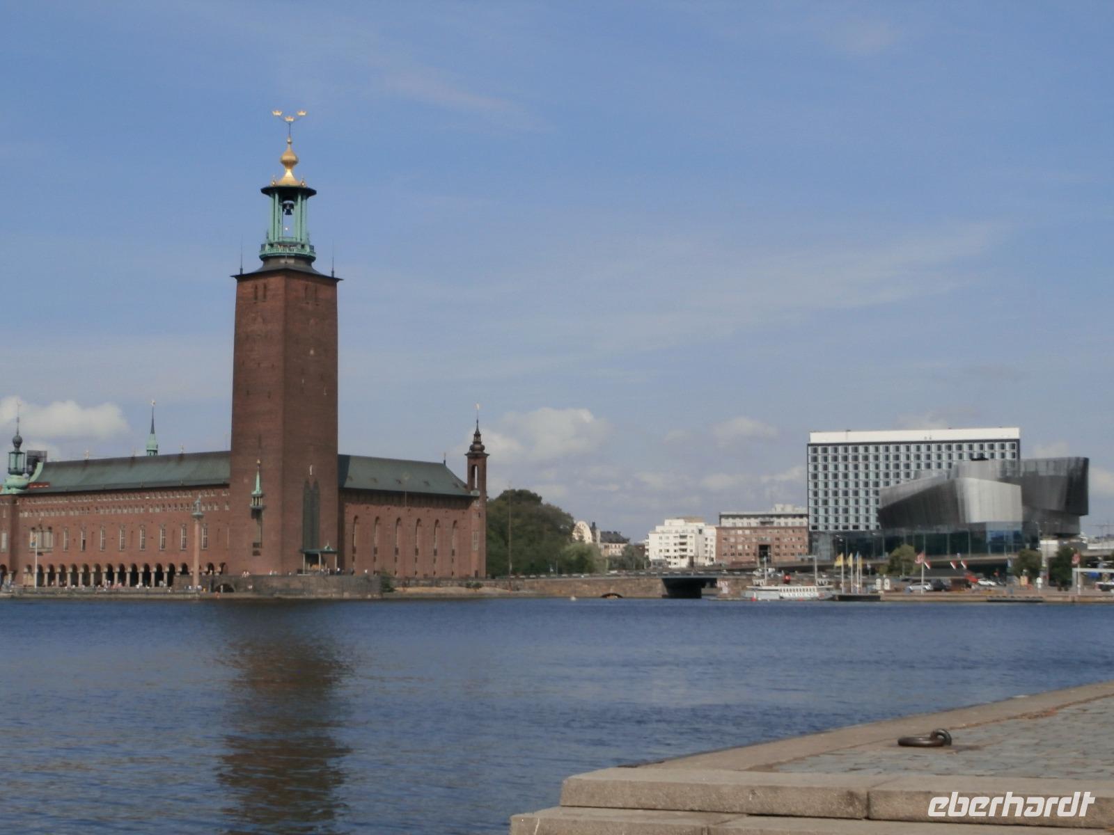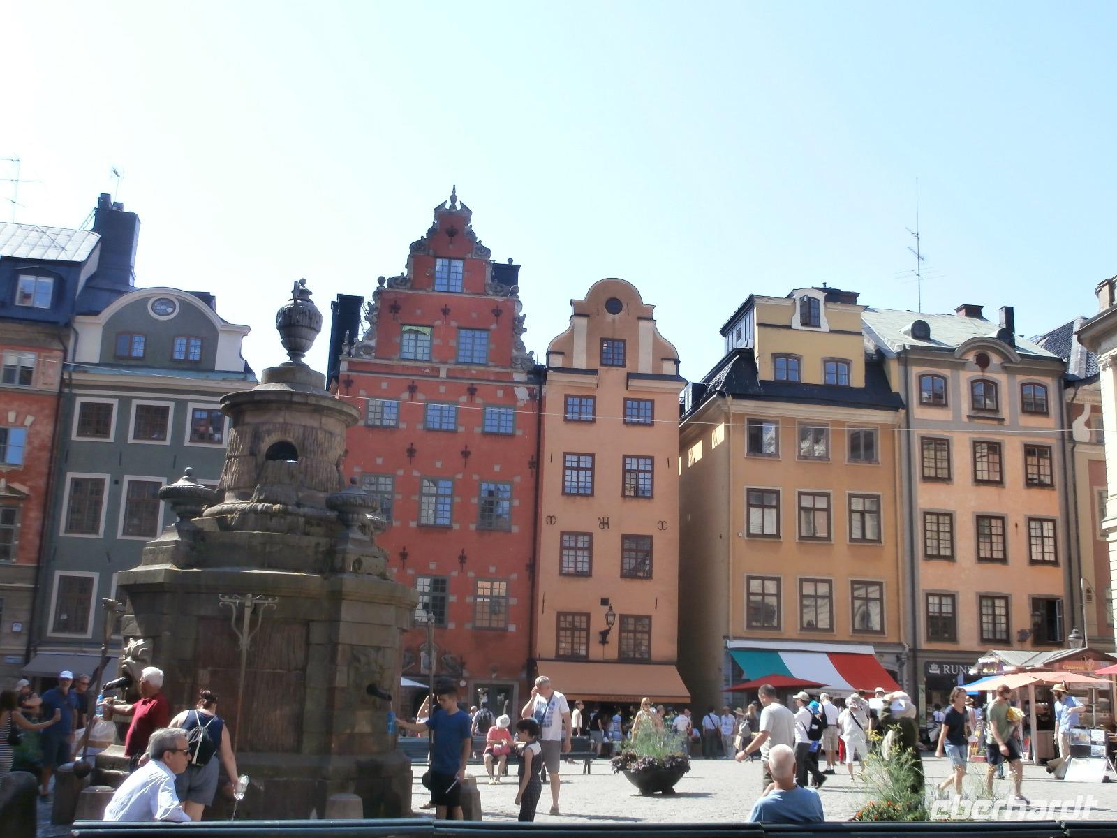 Zur Stadtrundfahrt werden wir von Renata mit einem Bus am Hotel Elite Tower abgeholt. Als ersten Halt haben wir die schöne Aussicht über die Stadt oberhalb vom Hotel. Während der Rundfahrt erfahren wir viel Interessantes zur Stadtgeschichte, die Mentalität der Schweden, das Leben der Menschen in Stockholm. Am Stadshuset machen wir Station und besichtigen gemeinsam dieses fantastische Haus. Der heutige Tag steht auch ganz im Zeichen der Kulinarik-wir erleben eine Kulinarische Stadtführung mit Renata durch Stockholm. In Nähe vom Rathaus gibt es Kaffee und die typische Kanelbulle. Mit dem Bus fahren wir hinüber zu den Saluhallen auf Östermalm, eröffnet 1888. Sie werden derzeit grundlegend saniert und deshalb geht man jetzt im Ausweichquartier einkaufen. Wir verabschieden uns vom Busfahrer und schreiten zur Verkostung in den Hallen. Renata hat dafür gesorgt, dass uns hier wieder kulinarische Leckerbissen angeboten werden. Die erste Kostprobe darf auf keinem Büffet in Schweden fehlen, vor allem zur Weihnachtszeit, bei dem Jule Fest, "Jansons Frestelse" wie Auflauf mit Kartoffel, Anchovis, Zwiebel, Creme freche-alles überbacken im Ofen, sehr lecker. Wir kosten auch Elch und Rentiersalamie und trinken dazu Lättöl-Leichtbier. Wir verlassen die Saluhallen und streichen auf unserem Weg in die Altstadt der wärmsten Figur Europas über den warmen Bauch, Wahnsinn bei dieser Hitze. Vorbei am königlichen Schloss spazieren wir hinein in die Altstadt, um hier durch die Gassen zu bummeln und viel zur Geschichte Stockholms und Schwedens zu erfahren. Den Abschluss unseres Rundganges bildet das kleine Mittag Essen in der Altstadt mit „Köttbullar"- köstlich diese schwedische Spezialität. Diese Kulinarische Stadtführung kann man auf alle Fälle weiterempfehlen, wir alle sind begeistert und sehr satt und zufrieden. Freizeit steht für den Nachmittag auf dem Programm, da es aber sehr heiß ist, entschließen wir uns fast alle mit dem Bus zurück zum Hotel zu fahren. Später geht es nochmals gemeinsam hinein zum Abendessen, ich habe Plätze im Restaurant "Kastanjen" bestellt. Wir werden hier sehr gut bedient, wir probieren die leckere, typisch schwedische Küche und sehr zufrieden kehren wir später mit dem Bus zum Hotel Elite Tower zurück.
