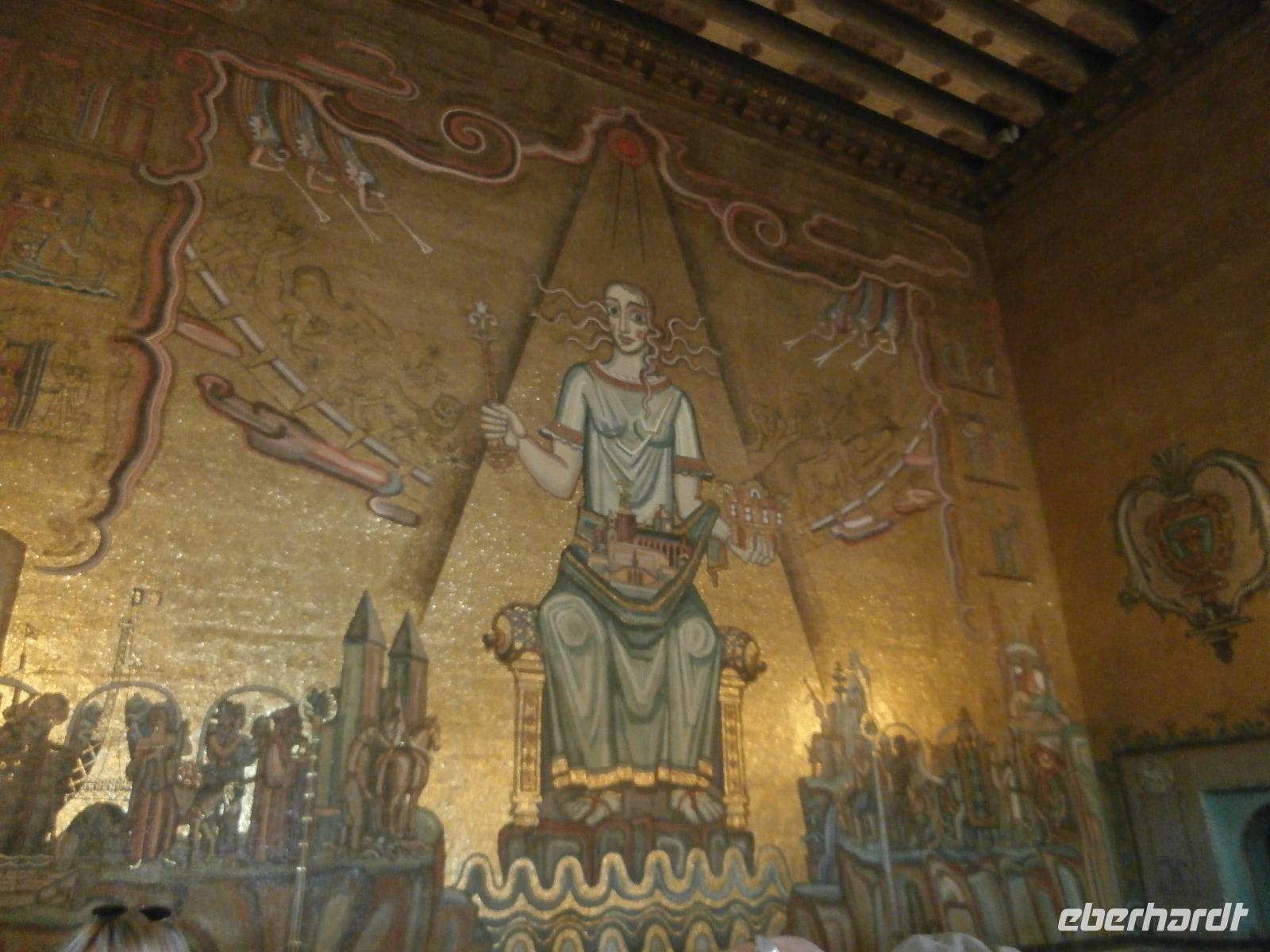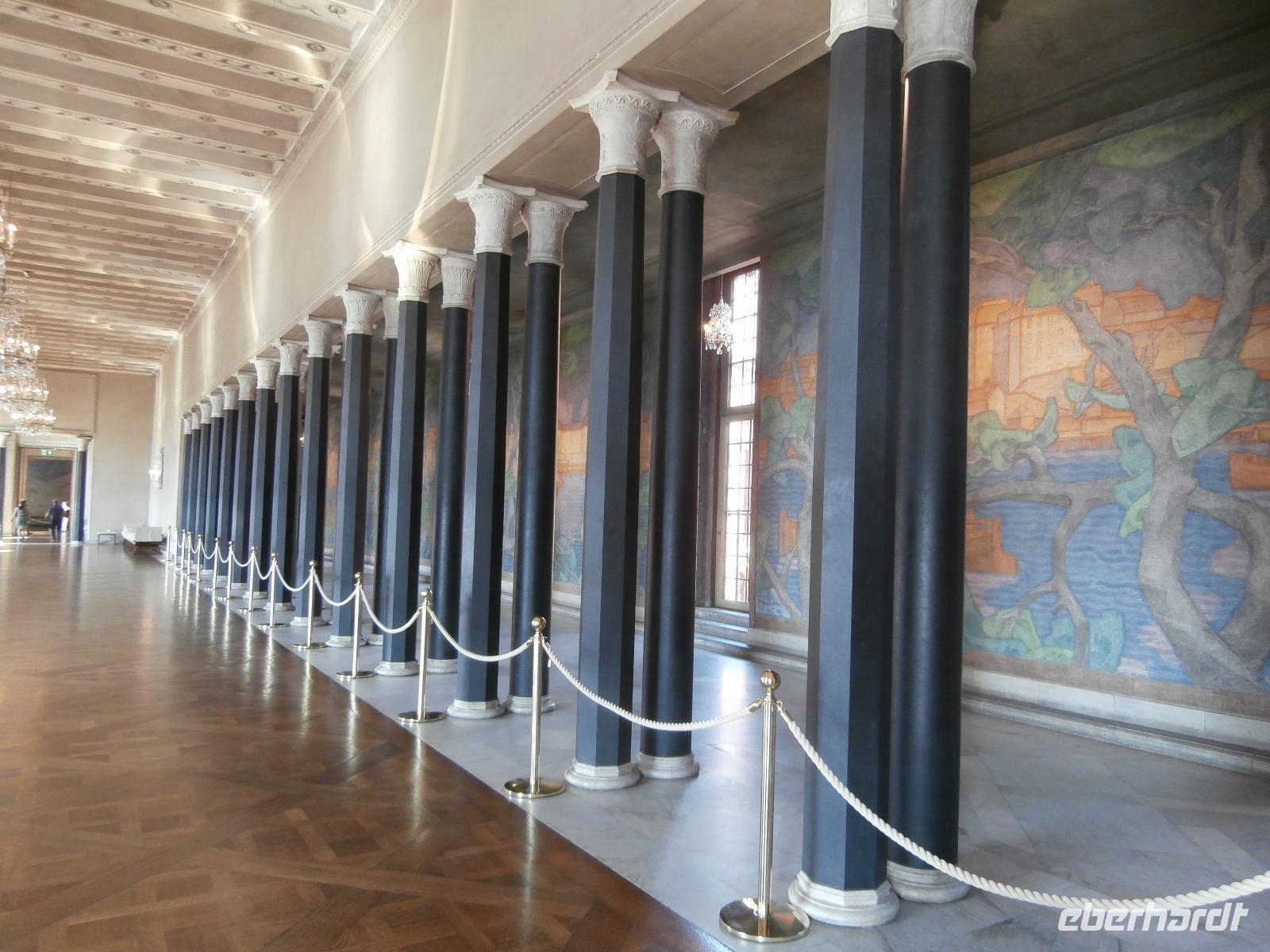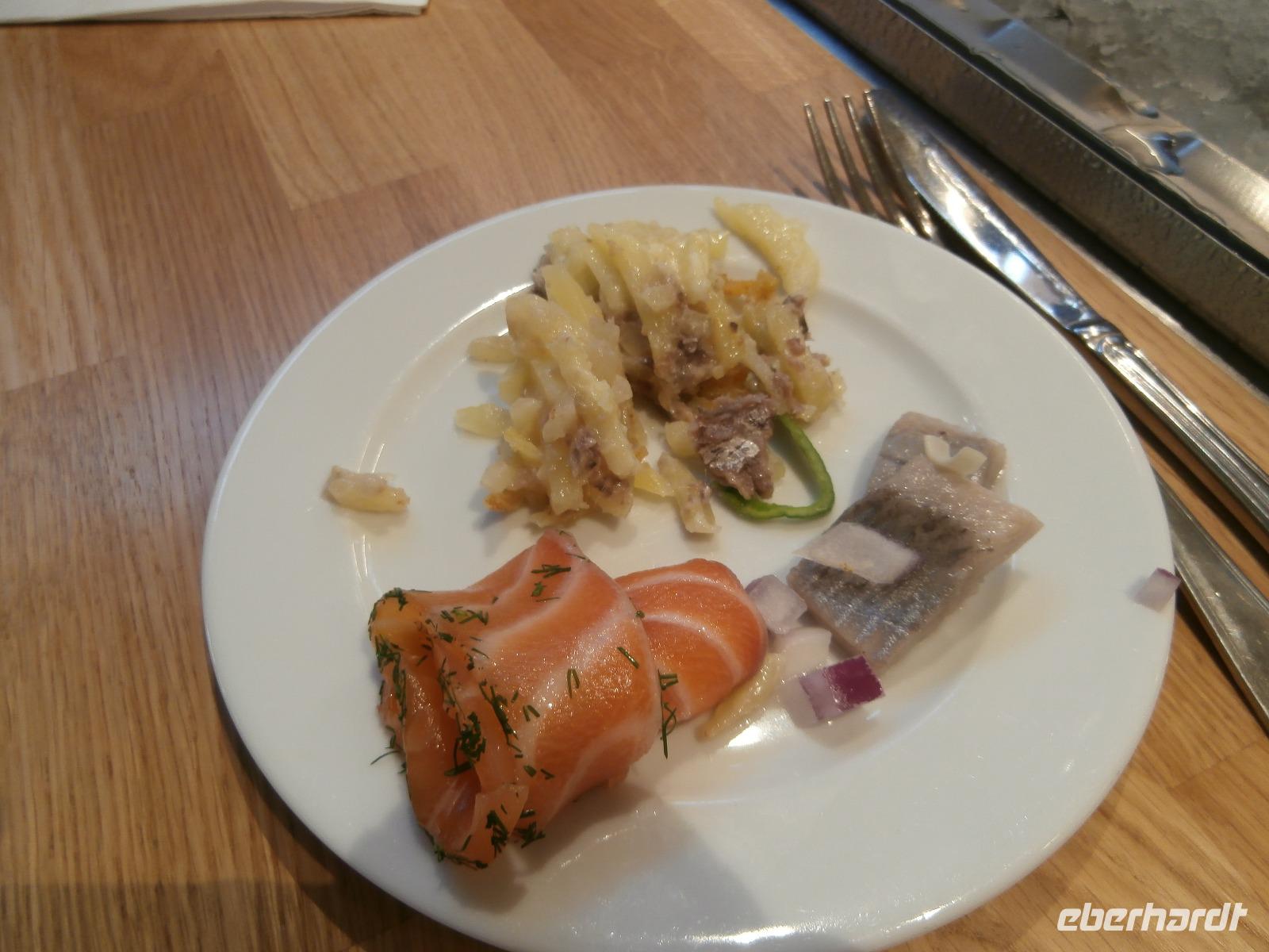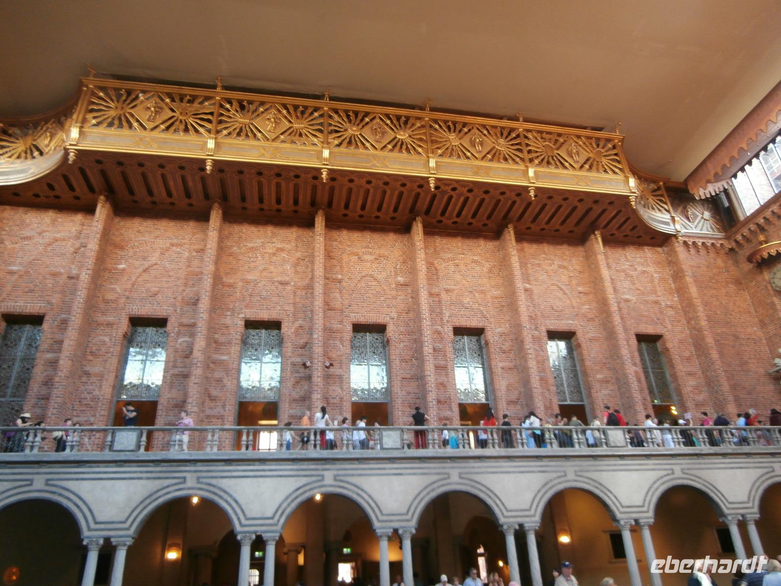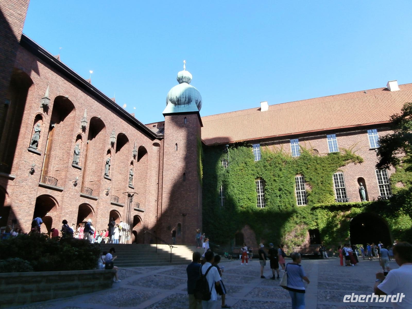 Zur Stadtrundfahrt werden wir von Renata mit einem Bus am Hotel Elite Tower abgeholt. Als ersten Halt haben wir die schöne Aussicht über die Stadt oberhalb vom Hotel. Während der Rundfahrt erfahren wir viel Interessantes zur Stadtgeschichte, die Mentalität der Schweden, das Leben der Menschen in Stockholm. Am Stadshuset machen wir Station und besichtigen gemeinsam dieses fantastische Haus. Der heutige Tag steht auch ganz im Zeichen der Kulinarik-wir erleben eine Kulinarische Stadtführung mit Renata durch Stockholm. In Nähe vom Rathaus gibt es Kaffee und die typische Kanelbulle. Mit dem Bus fahren wir hinüber zu den Saluhallen auf Östermalm, eröffnet 1888. Sie werden derzeit grundlegend saniert und deshalb geht man jetzt im Ausweichquartier einkaufen. Wir verabschieden uns vom Busfahrer und schreiten zur Verkostung in den Hallen. Renata hat dafür gesorgt, dass uns hier wieder kulinarische Leckerbissen angeboten werden. Die erste Kostprobe darf auf keinem Büffet in Schweden fehlen, vor allem zur Weihnachtszeit, bei dem Jule Fest, "Jansons Frestelse" wie Auflauf mit Kartoffel, Anchovis, Zwiebel, Creme freche-alles überbacken im Ofen, sehr lecker. Wir kosten auch Elch und Rentiersalamie und trinken dazu Lättöl-Leichtbier. Wir verlassen die Saluhallen und streichen auf unserem Weg in die Altstadt der wärmsten Figur Europas über den warmen Bauch, Wahnsinn bei dieser Hitze. Vorbei am königlichen Schloss spazieren wir hinein in die Altstadt, um hier durch die Gassen zu bummeln und viel zur Geschichte Stockholms und Schwedens zu erfahren. Den Abschluss unseres Rundganges bildet das kleine Mittag Essen in der Altstadt mit „Köttbullar"- köstlich diese schwedische Spezialität. Diese Kulinarische Stadtführung kann man auf alle Fälle weiterempfehlen, wir alle sind begeistert und sehr satt und zufrieden. Freizeit steht für den Nachmittag auf dem Programm, da es aber sehr heiß ist, entschließen wir uns fast alle mit dem Bus zurück zum Hotel zu fahren. Später geht es nochmals gemeinsam hinein zum Abendessen, ich habe Plätze im Restaurant "Kastanjen" bestellt. Wir werden hier sehr gut bedient, wir probieren die leckere, typisch schwedische Küche und sehr zufrieden kehren wir später mit dem Bus zum Hotel Elite Tower zurück.