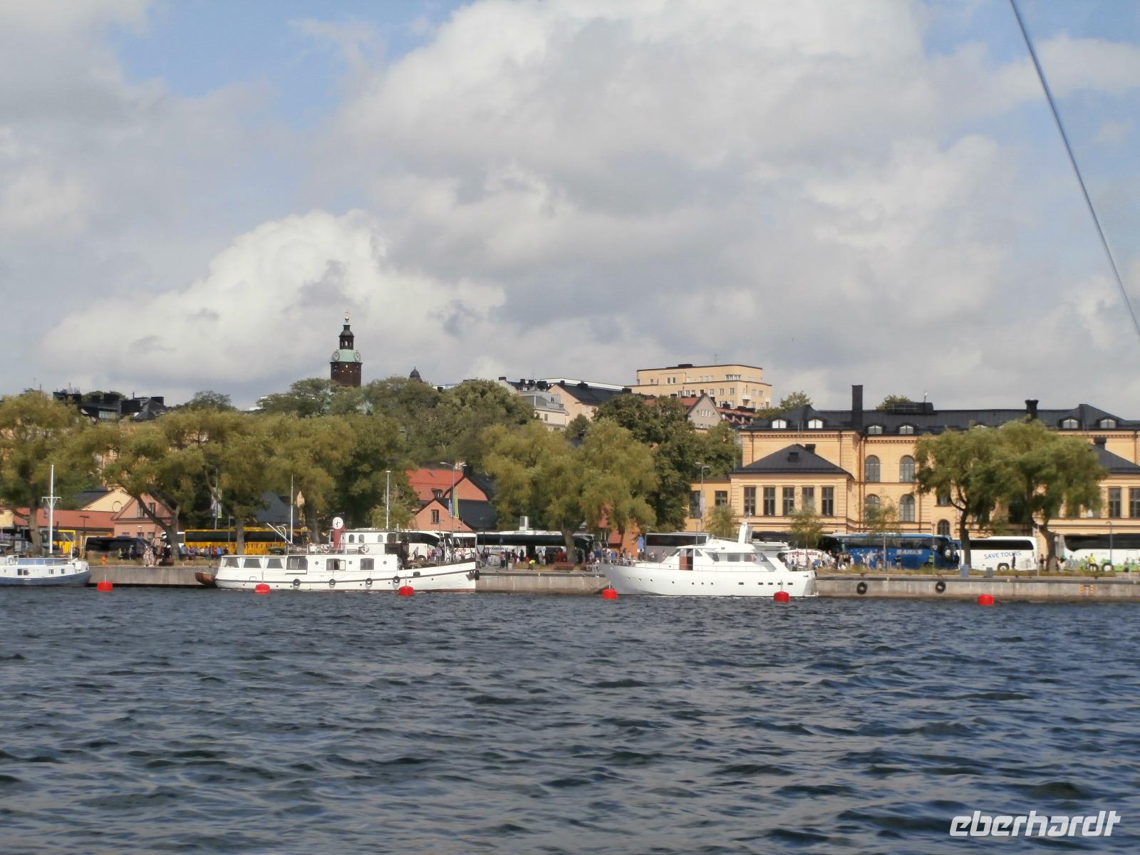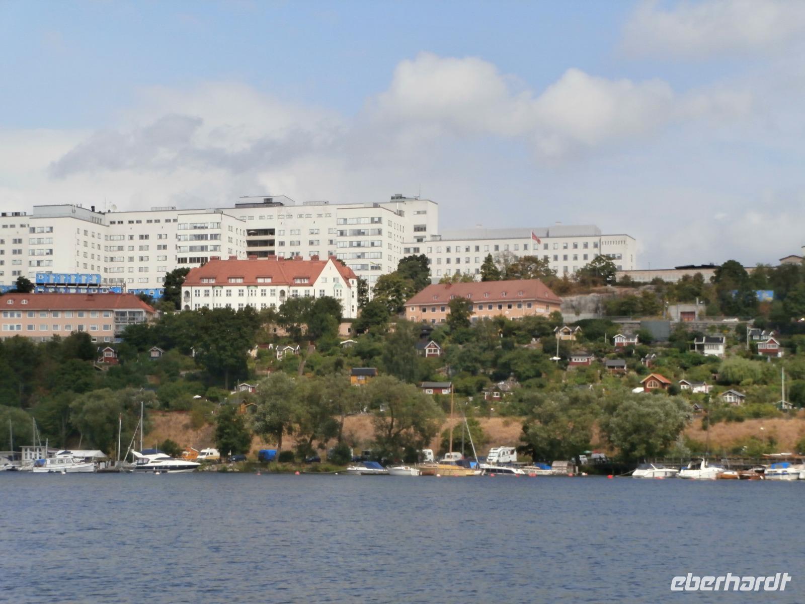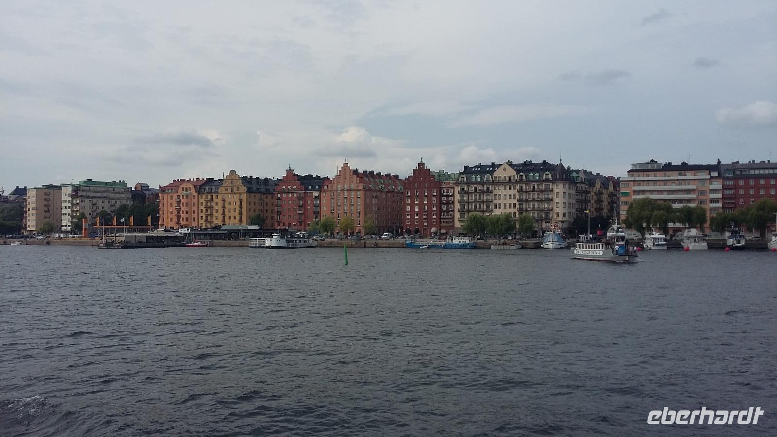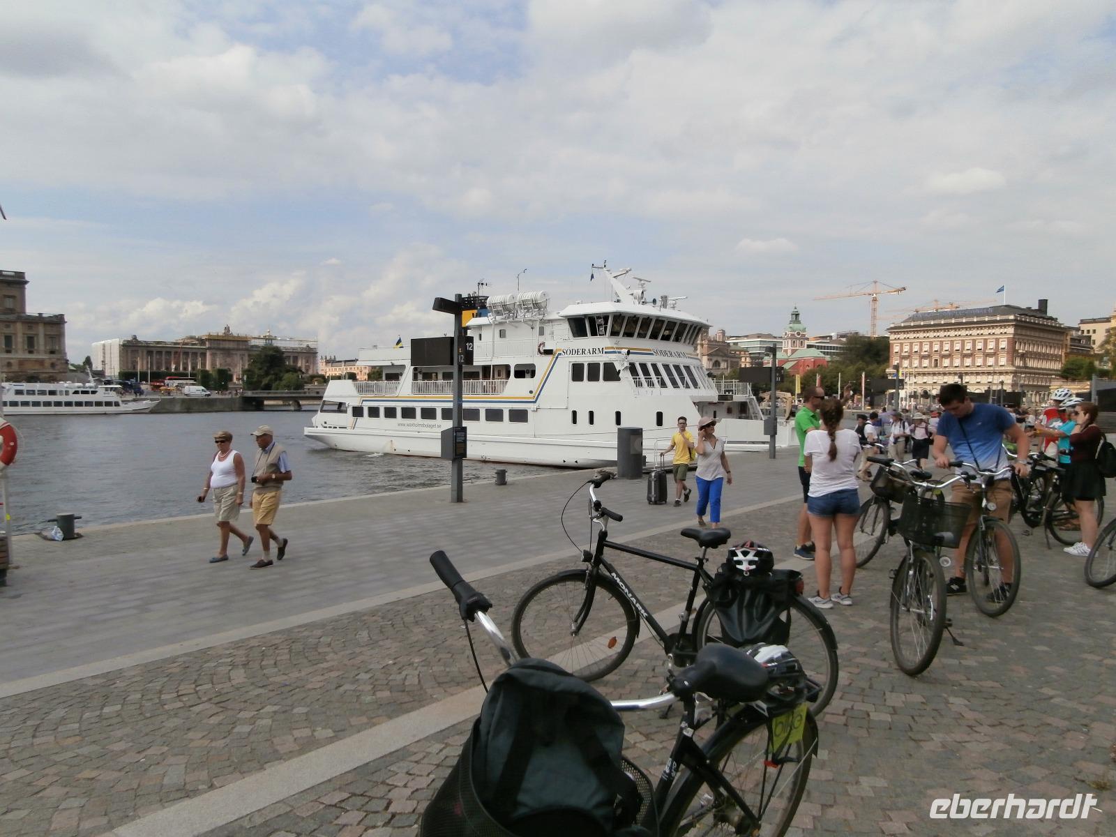 Entspannt geht es für viele Reisegäste heute zur Freizeit in die Stadt, Abba Museum und Altstadtbummel stehen auf dem Programm, aber auch der Spaziergang über die Drottningsgata ist eingeplant. Eine dreistündige Fahrradtour, geführt von Schweden Bike, haben 2 Reisegäste gebucht, am Morgen fahren wir zusammen zum Treffpunkt und dann wird das Rad übernommen. Nach einer kurzen Proberunde startet unsere Rundfahrt, die von einer deutschen Führung begleitet wird. Vorbei am Rathaus, hinüber zur Insel Riddarholmen fahren wir vorbei am Nybroplan bis zur Insel Djurgarden. Gut informiert und begeistert kommen wir von unserer Radtour kurz zum Frischmachen im Hotel an. Am Nachmittag treffen wir uns an der Schiffsanlegestelle Nybroplan, um auf die Schäreninsel Fjädarholmarna zu fahren. Nicht nur die Fahrt dorthin, auch die Insel selbst ist idyllisch und sehenswert. Glaskunst, Keramik, Silberschmuck und Bilder werden in kleinen Werkstätten hergestellt. Einige schöne Restaurants laden zur Einkehr und zum Sonnen ein. Auch Baden ist angesagt, auf den Felsen kann man ausruhen, sich sonnen und ein Picknick abhalten. Mehrere Fährschiffe nehmen Fahrt vorbei an der Insel, die wir recht schnell umrundet haben. Im Restaurant „Rökeriet" habe ich telefonisch Plätze fürs Abendessen reservieren lassen. 17.30 Uhr kehren wir ein und es dauert nicht lange, da erscheint ein junger Mann und nimmt unsere Bestellung auf. Leckere Gerichte, die typisch für die Inseln sind, lassen wir uns schmecken. Pünktlich 19 Uhr legt unser Schiff von der Insel ab, der Kapitän fährt flott und so bekommen wir noch unser Schiff Nr. 80, das zum Elite Marina Tower fährt. Wieder ein sehr schöner Tag in Stockholm, nicht so heiß wie die letzten Tage, geht er zu Ende. Im Supermarkt in Nähe vom Hotel wird noch Knäckebrot eingekauft.