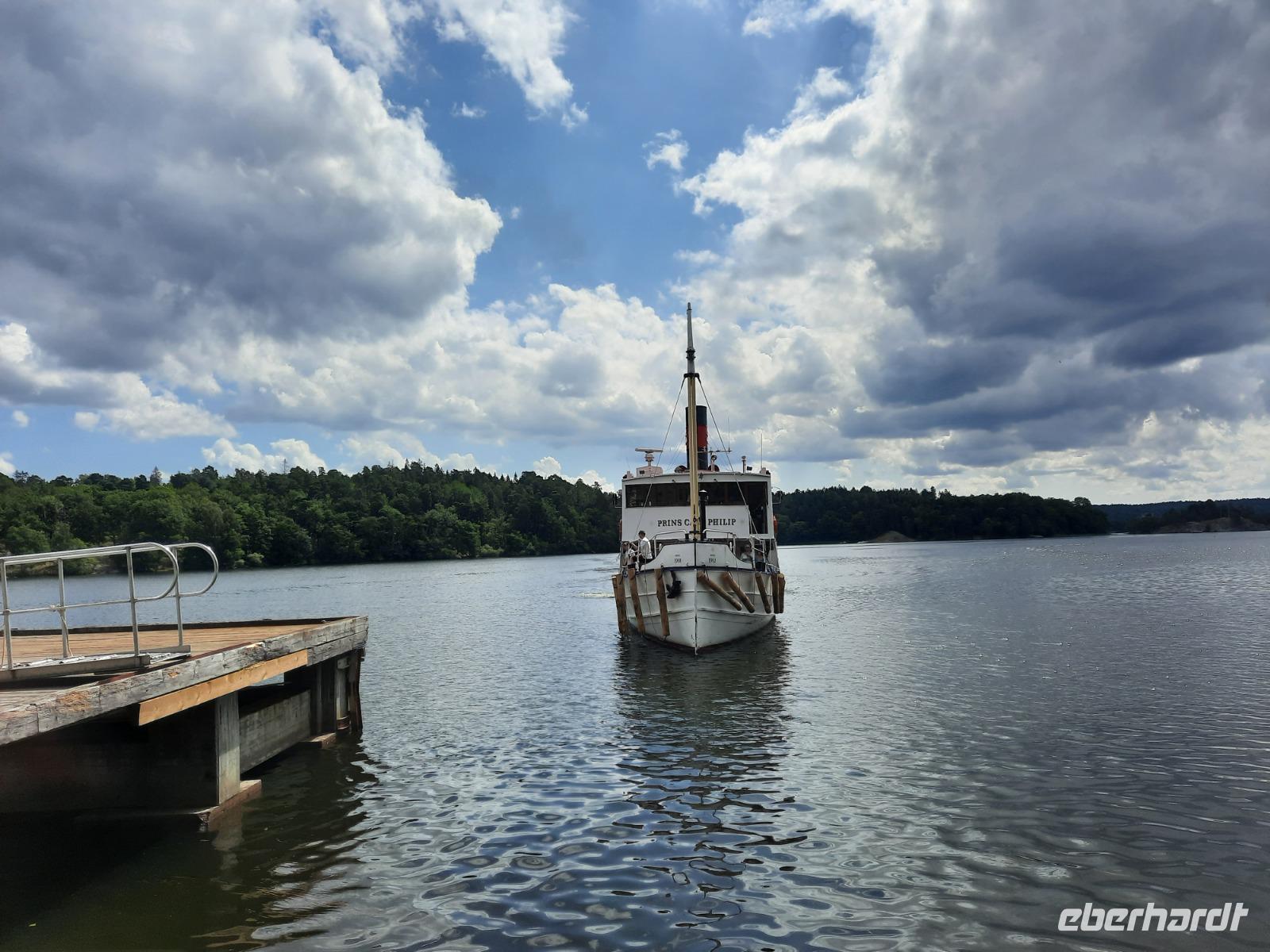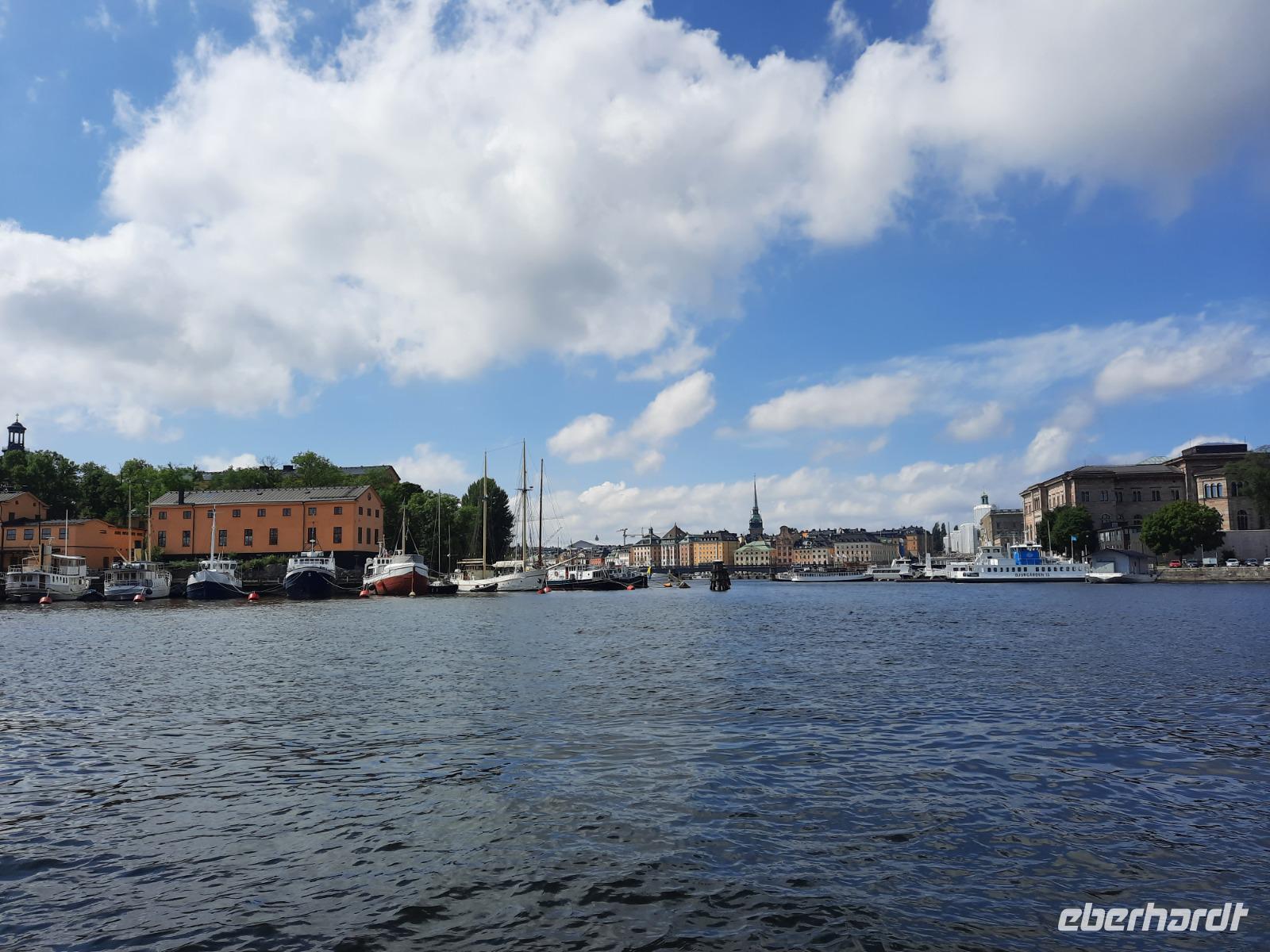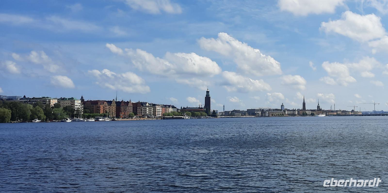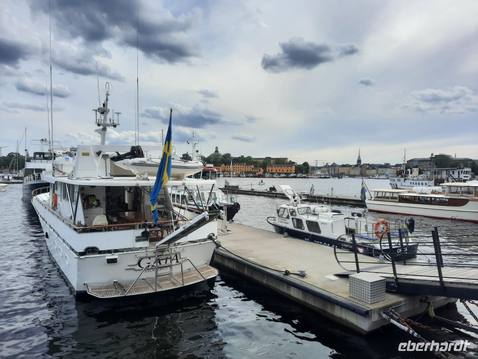 Gegen 9.30 Uhr kam ich mit 3 Reisegästen am neuen Berliner Flughafen an und dort trafen wir dann auch den Rest unserer kleinen „Reisefamilie". Die erste Aufregung hatten wir bereits hinter uns, denn kurz vor Berlin gab es eine Vollsperrung der Autobahn und nichts ging mehr... Zum Glück wandte sich das Blatt zum Guten und wir trafen dennoch pünktlich am Check-in-Schalter der Scandinavian Airlines (SAS) ein. Was wir hier noch nicht wussten - unser Flieger hatte ebenso Verspätung! Mit einer 1-stündigen Verspätung hob unser Flugzeug dann endlich gg. 12 Uhr in den Berliner Himmel ab und mit etwas Rückenwind erreichten wir nach einer Flugzeit von etwas mehr als einer Stunde den nördlich von Stockholm gelegenen Flughafen Arlanda. Hier wurden wir bereits von einem netten Taxifahrer erwartet. Ich kaufte noch zügig im Terminal die Stockholm Travel-Cards, unsere Fahrkarten für die Nutzung der öffentlichen Verkehrsmittel während unseres Stockholm-Aufenthaltes. Mit ihr konnten wir uns dann in den nächsten Tagen per Schiff, Bus, U-Bahn und auch Straßenbahn in der schwedischen Hauptstadt bewegen - sehr praktisch! Nun ging es also mit dem Taxi in die Innenstadt hinein und am frühen Nachmittag trafen wir schließlich im modernen 4-Sterne Elite Hotel Marina Tower, ganz nah am Zentrum gegenüber der Insel Djurgarden gelegen. ein. Wir bezogen unsere Zimmer und wenig später trafen wir uns dann für eine erste gemeinsame Erkundungstour wieder. Zunächst fuhren wir mit einem Linienschiff hinüber zur Insel Djurgarden und spazierten vorbei an einigen Museen, u. a. am Vasa-Museum in Richtung Strandvägen, einer boulevardartigen Prachtstraße im Herzen der Stadt... Anschließend ging es mit dem Linienschiff zum Hotel zurück und so hatten wir zumindest schon heute ein paar schöne erste Eindrücke der Stadt erhaschen können. Eine kurze Pause im Hotel und schon brachen wir zu einem ersten gemeinsamen Abendessen auf. Nur wenige Gehminuten vom Hotel entfernt und in sehr schöner Lage speisten wir im Restaurant „Docklands" im Stadtteil Nacka. Die Lage ist einfach herrlich, am Wasser außerhalb des Zentrums und auf dem Weg zu den Schären. Wir konnten sogar Plätze auf der Terrasse ergattern und hatten an diesem lauen Sommerabend tolle Blicke auf das Wasser, die umliegende Natur und große Schiffe, die zeitweilig an uns vorbeifuhren. Bei einem schmackhaften Abendessen lernten wir uns näher kennen, ehe wir müde in unsere Betten fielen, denn der Anreisetag begann sehr früh und ein langer Tag war nun zu Ende.