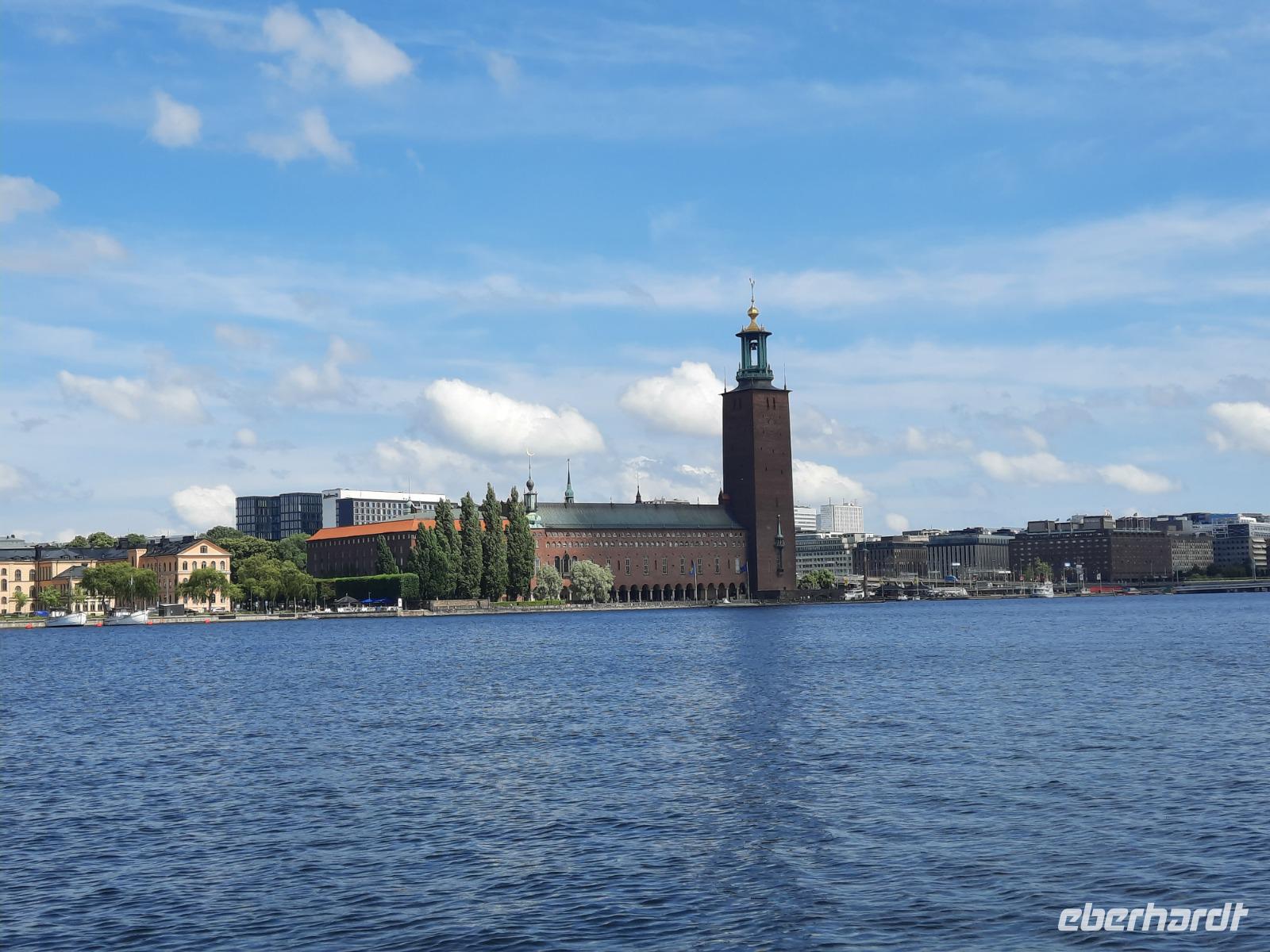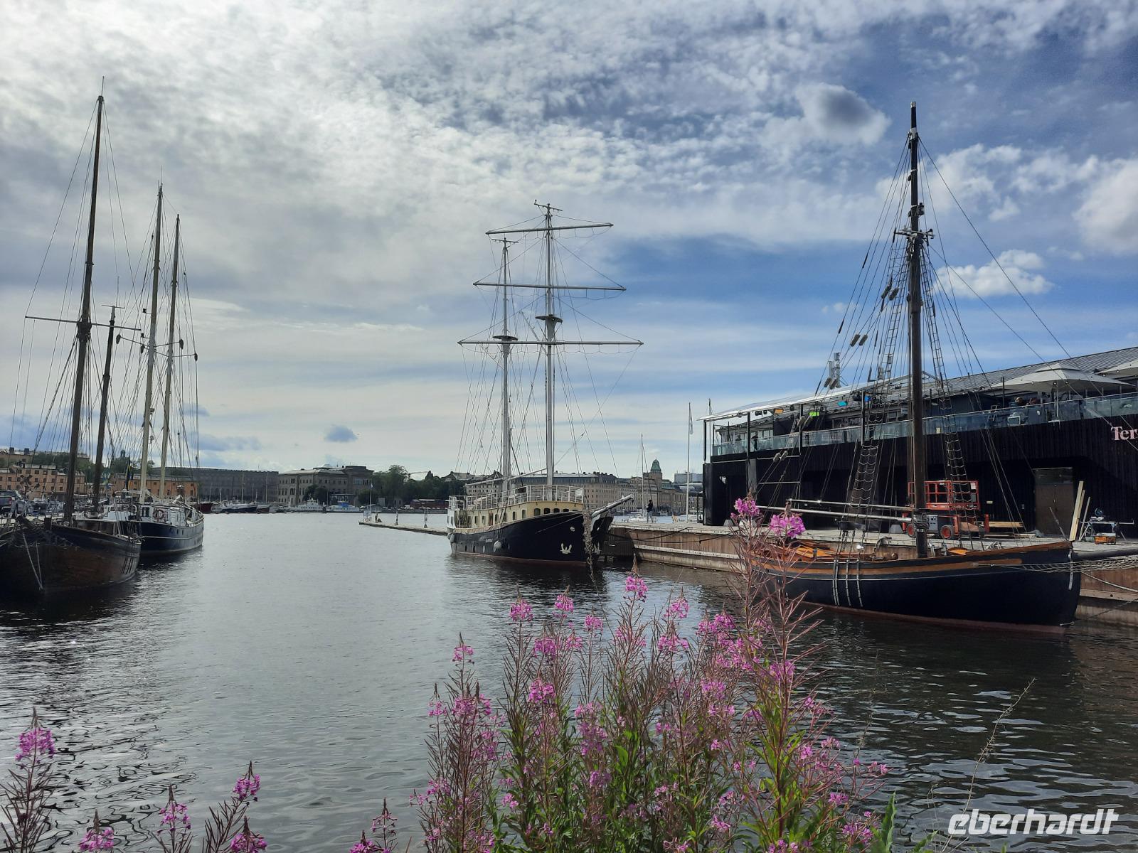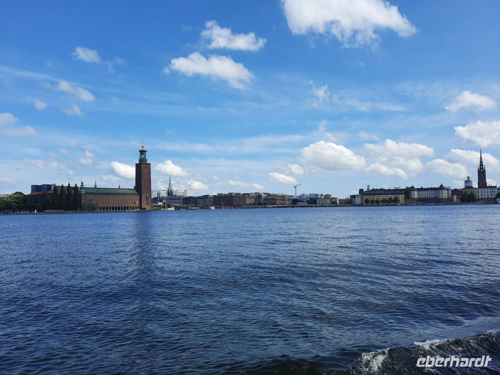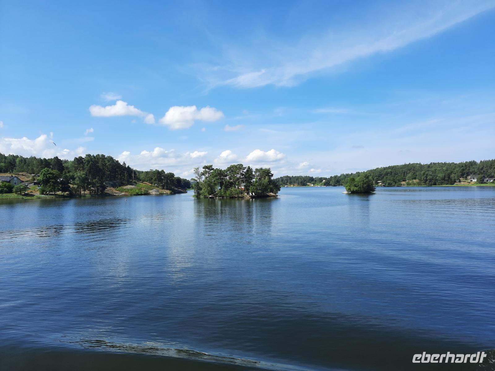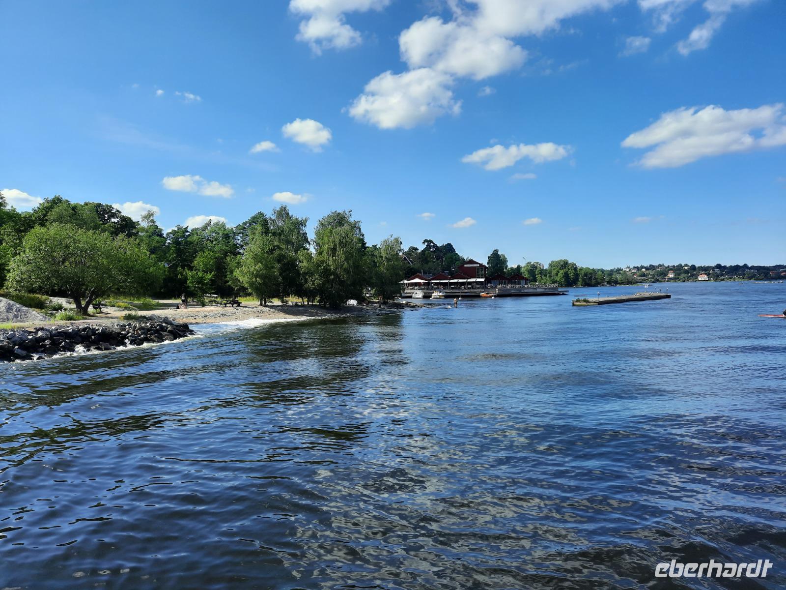 Gegen 9.30 Uhr kam ich mit 3 Reisegästen am neuen Berliner Flughafen an und dort trafen wir dann auch den Rest unserer kleinen „Reisefamilie". Die erste Aufregung hatten wir bereits hinter uns, denn kurz vor Berlin gab es eine Vollsperrung der Autobahn und nichts ging mehr... Zum Glück wandte sich das Blatt zum Guten und wir trafen dennoch pünktlich am Check-in-Schalter der Scandinavian Airlines (SAS) ein. Was wir hier noch nicht wussten - unser Flieger hatte ebenso Verspätung! Mit einer 1-stündigen Verspätung hob unser Flugzeug dann endlich gg. 12 Uhr in den Berliner Himmel ab und mit etwas Rückenwind erreichten wir nach einer Flugzeit von etwas mehr als einer Stunde den nördlich von Stockholm gelegenen Flughafen Arlanda. Hier wurden wir bereits von einem netten Taxifahrer erwartet. Ich kaufte noch zügig im Terminal die Stockholm Travel-Cards, unsere Fahrkarten für die Nutzung der öffentlichen Verkehrsmittel während unseres Stockholm-Aufenthaltes. Mit ihr konnten wir uns dann in den nächsten Tagen per Schiff, Bus, U-Bahn und auch Straßenbahn in der schwedischen Hauptstadt bewegen - sehr praktisch! Nun ging es also mit dem Taxi in die Innenstadt hinein und am frühen Nachmittag trafen wir schließlich im modernen 4-Sterne Elite Hotel Marina Tower, ganz nah am Zentrum gegenüber der Insel Djurgarden gelegen. ein. Wir bezogen unsere Zimmer und wenig später trafen wir uns dann für eine erste gemeinsame Erkundungstour wieder. Zunächst fuhren wir mit einem Linienschiff hinüber zur Insel Djurgarden und spazierten vorbei an einigen Museen, u. a. am Vasa-Museum in Richtung Strandvägen, einer boulevardartigen Prachtstraße im Herzen der Stadt... Anschließend ging es mit dem Linienschiff zum Hotel zurück und so hatten wir zumindest schon heute ein paar schöne erste Eindrücke der Stadt erhaschen können. Eine kurze Pause im Hotel und schon brachen wir zu einem ersten gemeinsamen Abendessen auf. Nur wenige Gehminuten vom Hotel entfernt und in sehr schöner Lage speisten wir im Restaurant „Docklands" im Stadtteil Nacka. Die Lage ist einfach herrlich, am Wasser außerhalb des Zentrums und auf dem Weg zu den Schären. Wir konnten sogar Plätze auf der Terrasse ergattern und hatten an diesem lauen Sommerabend tolle Blicke auf das Wasser, die umliegende Natur und große Schiffe, die zeitweilig an uns vorbeifuhren. Bei einem schmackhaften Abendessen lernten wir uns näher kennen, ehe wir müde in unsere Betten fielen, denn der Anreisetag begann sehr früh und ein langer Tag war nun zu Ende.