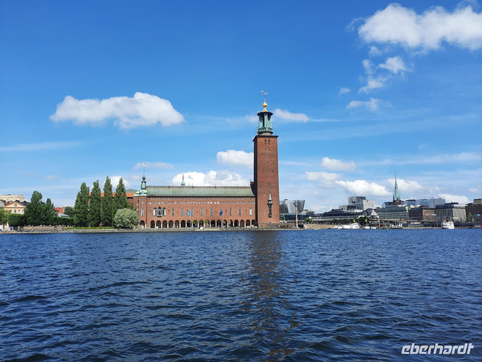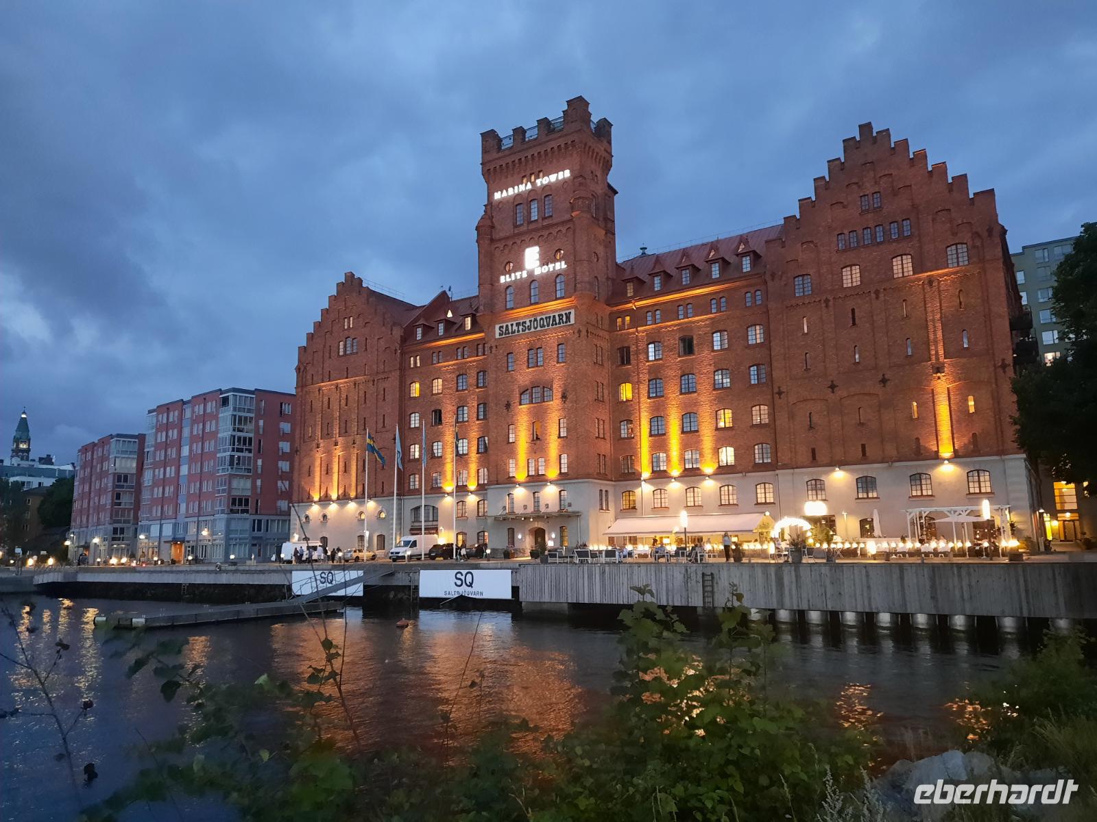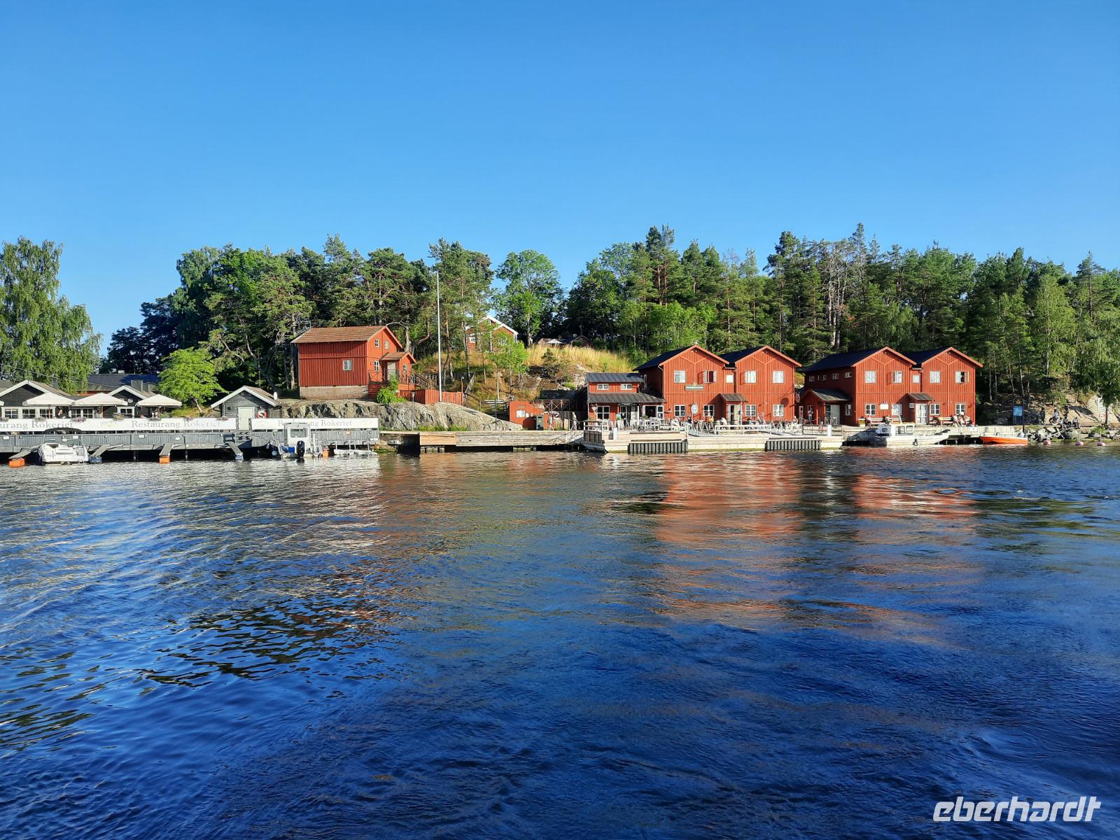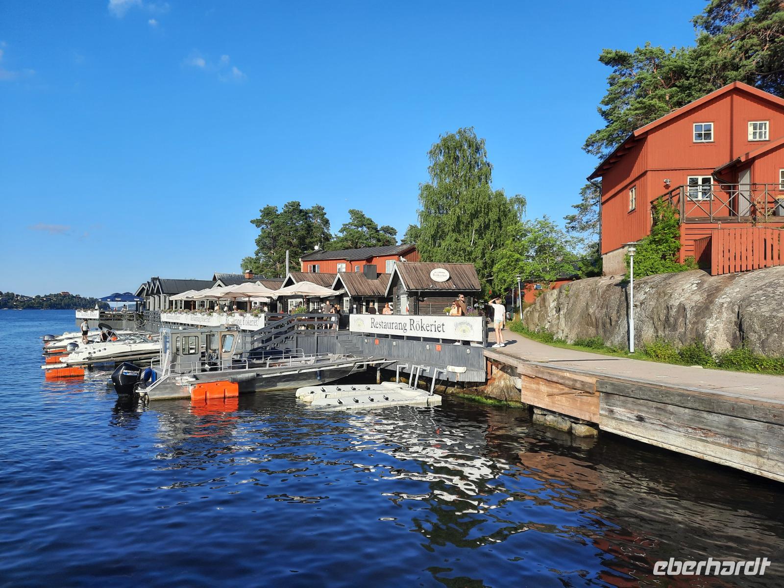 Gegen 9.30 Uhr kam ich mit 3 Reisegästen am neuen Berliner Flughafen an und dort trafen wir dann auch den Rest unserer kleinen „Reisefamilie". Die erste Aufregung hatten wir bereits hinter uns, denn kurz vor Berlin gab es eine Vollsperrung der Autobahn und nichts ging mehr... Zum Glück wandte sich das Blatt zum Guten und wir trafen dennoch pünktlich am Check-in-Schalter der Scandinavian Airlines (SAS) ein. Was wir hier noch nicht wussten - unser Flieger hatte ebenso Verspätung! Mit einer 1-stündigen Verspätung hob unser Flugzeug dann endlich gg. 12 Uhr in den Berliner Himmel ab und mit etwas Rückenwind erreichten wir nach einer Flugzeit von etwas mehr als einer Stunde den nördlich von Stockholm gelegenen Flughafen Arlanda. Hier wurden wir bereits von einem netten Taxifahrer erwartet. Ich kaufte noch zügig im Terminal die Stockholm Travel-Cards, unsere Fahrkarten für die Nutzung der öffentlichen Verkehrsmittel während unseres Stockholm-Aufenthaltes. Mit ihr konnten wir uns dann in den nächsten Tagen per Schiff, Bus, U-Bahn und auch Straßenbahn in der schwedischen Hauptstadt bewegen - sehr praktisch! Nun ging es also mit dem Taxi in die Innenstadt hinein und am frühen Nachmittag trafen wir schließlich im modernen 4-Sterne Elite Hotel Marina Tower, ganz nah am Zentrum gegenüber der Insel Djurgarden gelegen. ein. Wir bezogen unsere Zimmer und wenig später trafen wir uns dann für eine erste gemeinsame Erkundungstour wieder. Zunächst fuhren wir mit einem Linienschiff hinüber zur Insel Djurgarden und spazierten vorbei an einigen Museen, u. a. am Vasa-Museum in Richtung Strandvägen, einer boulevardartigen Prachtstraße im Herzen der Stadt... Anschließend ging es mit dem Linienschiff zum Hotel zurück und so hatten wir zumindest schon heute ein paar schöne erste Eindrücke der Stadt erhaschen können. Eine kurze Pause im Hotel und schon brachen wir zu einem ersten gemeinsamen Abendessen auf. Nur wenige Gehminuten vom Hotel entfernt und in sehr schöner Lage speisten wir im Restaurant „Docklands" im Stadtteil Nacka. Die Lage ist einfach herrlich, am Wasser außerhalb des Zentrums und auf dem Weg zu den Schären. Wir konnten sogar Plätze auf der Terrasse ergattern und hatten an diesem lauen Sommerabend tolle Blicke auf das Wasser, die umliegende Natur und große Schiffe, die zeitweilig an uns vorbeifuhren. Bei einem schmackhaften Abendessen lernten wir uns näher kennen, ehe wir müde in unsere Betten fielen, denn der Anreisetag begann sehr früh und ein langer Tag war nun zu Ende.