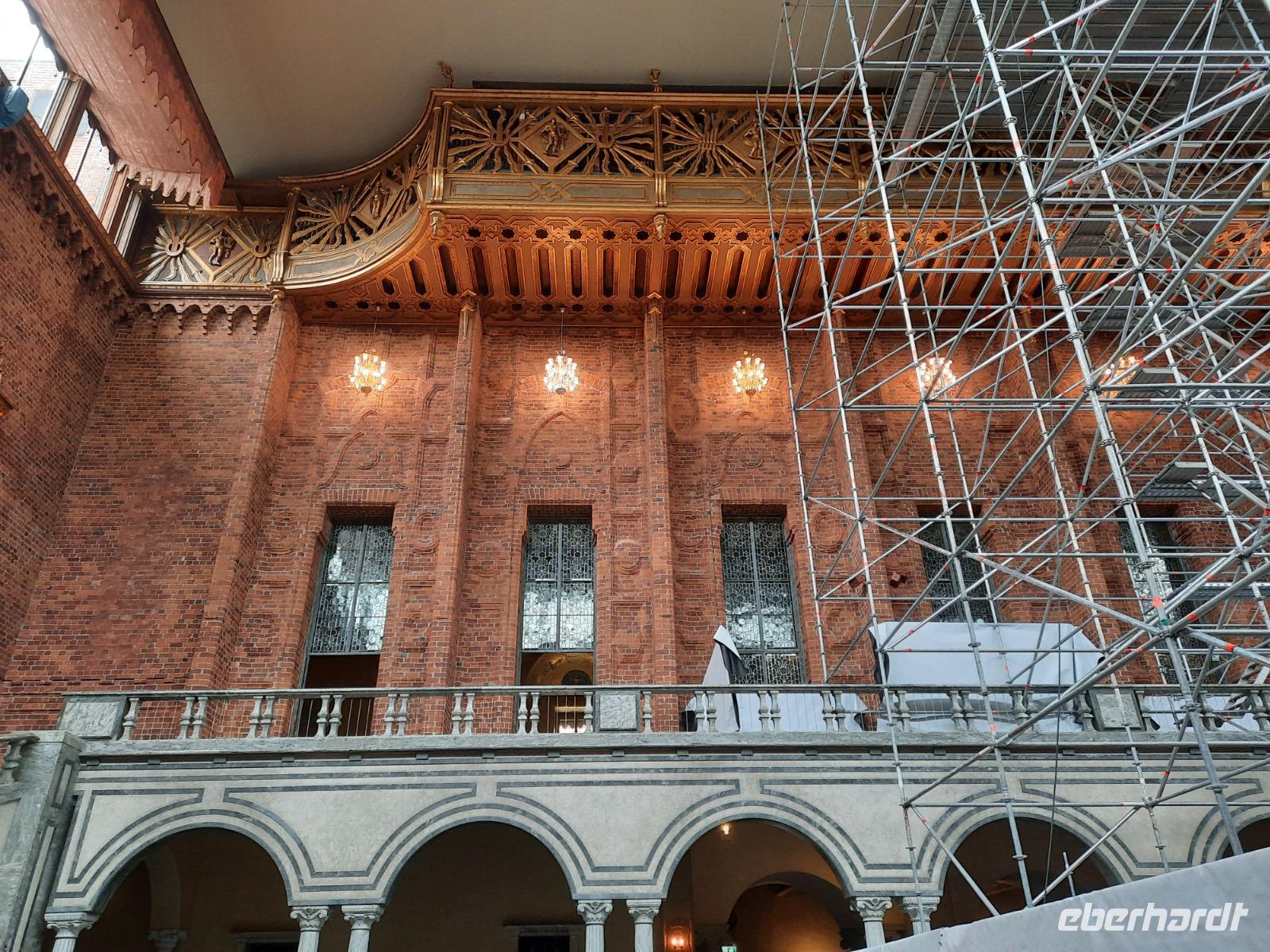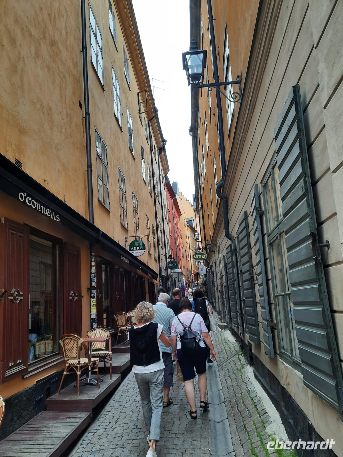 Nach einem sehr guten Frühstück starteten wir den Tag mit einer intensiven Stadtführung. Zur Stadtrundfahrt mit einem Kleinbus wurden wir von Jessica, unserer Reiseleiterin und Andros, dem Fahrer, am Hotel abgeholt. Ein erster kurzer Fotostopp erwartete uns im Stadtteil Södermalm oberhalb des Wikinger-Terminals, denn von dort aus hatten wir einen grandiosen Überblick über die Stadt. Von hier aus setzen wir unsere Rundfahrt fort und erfuhren von Jessica viel Interessantes zur Stadtgeschichte, über das Königshaus, die Mentalität der Schweden und das Leben der Menschen in Stockholm. Am Stadshuset (Rathaus) machen wir Station und besichtigten gemeinsam dieses fantastische Haus. Es wurde uns nun so einiges über die Politik, die Abgeordneten und die Regierung erzählt und wir bestaunten die verschiedenen Säle wie auch den berühmten Blauen Saal, der erst kürzlich wieder für Besucher geöffnet wurde. Der heutige Mittag stand dann später ganz im Zeichen der Kulinarik. Mit dem Bus fuhren wir weiter hinüber zur Saluhalle auf Östermalm, welche bereits 1888 eröffnet wurde und nach umfangreichen Sanierungsmaßnahmen in neuem Glanz erstrahlte. Wir verkosteten allerlei schwedische Köstlichkeiten wie Kalles Kaviar, verschieden Fisch-Spezialitäten und Brotaufstriche, Elchwurst und Rentiersalami. Derart gestärkt ging es später mit der U-Bahn weiter in die Altstadt, wo wir bei einem gemütlichen Bummel durch die malerischen Gassen viel zur Geschichte Stockholms und Schwedens erfuhren. Den Abschluss unseres Rundganges bildete ein kleiner Mittagsimbiss inmitten der Altstadt. Im Keller eines Restaurants bekamen wir heute das typisch schwedische Gericht Köttbullar mit Kartoffelbrei und Preiselbeeren serviert - sehr lecker! Für den restlichen Nachmittag stand schließlich noch etwas Freizeit auf unserem Programm und wir konnten somit noch einige Dinge in der Altstadt ganz individuell erkunden. Ein schmackhaftes Abendessen im urigen Restaurant „Gamlastan Hof" rundete diesen erlebnisreichen Tag ab. Anschließend kehrten wir gemeinsam mit dem Linienbus zum Hotel zurück.