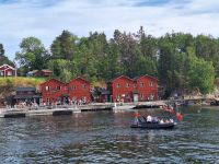 Danach spazieren wir ganz entspannt direkt zum Ableger am Strandvägen, wo unsere Archipeltour durch die Schären startet. Herrliche Landschaft erwartet uns im schönsten Sonnenschein. Leider ist das Boot ziemlich überfüllt, was die Freude und und vor allem die Aussicht etwas trübt.