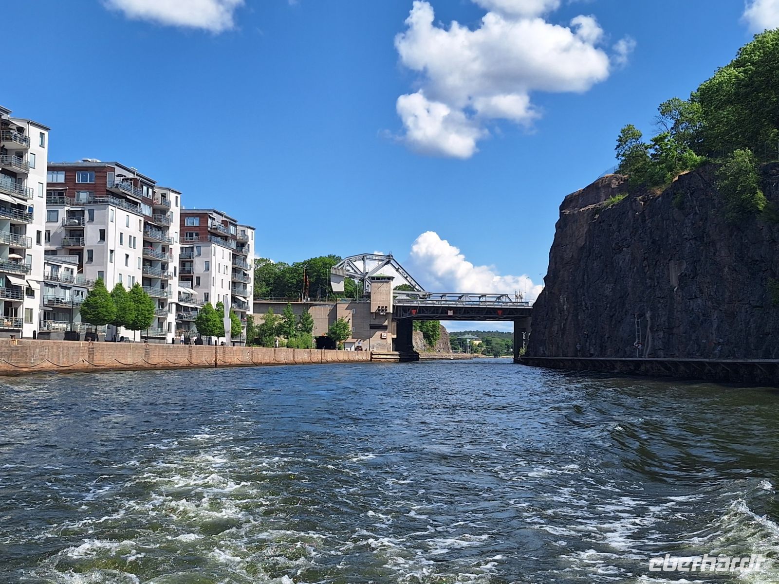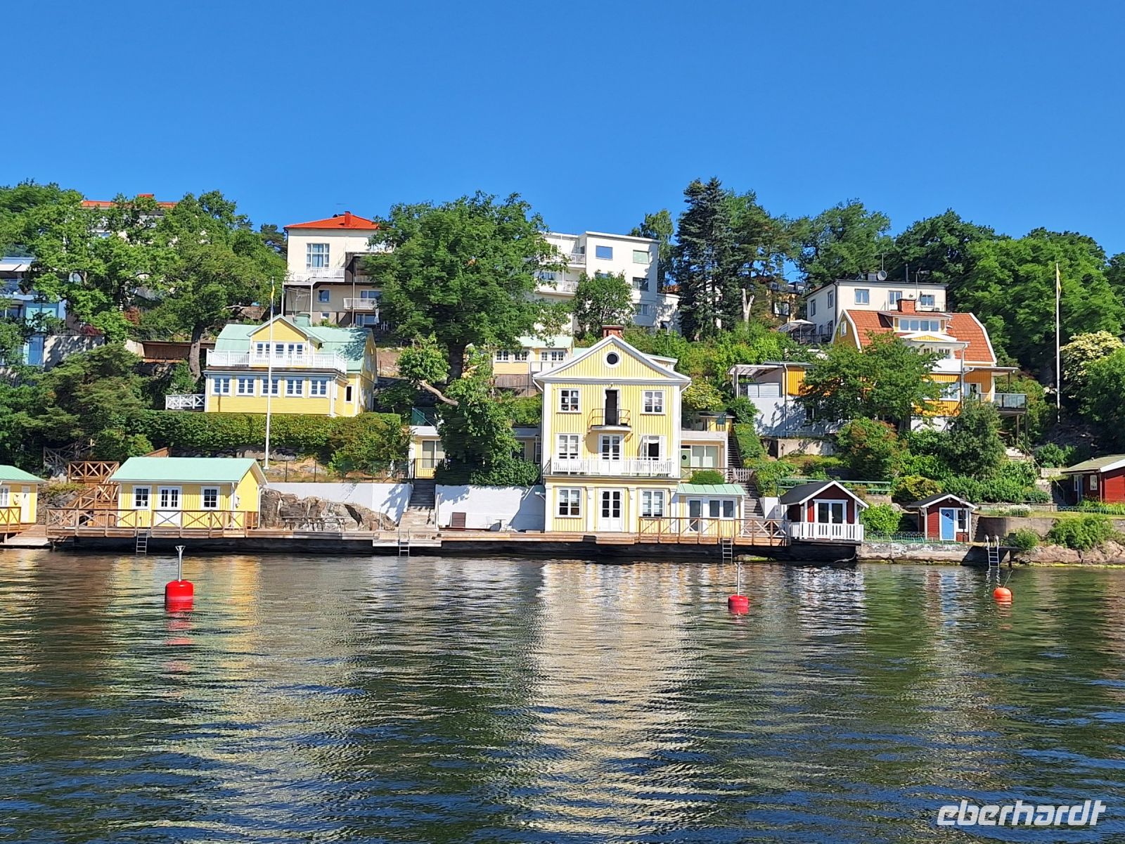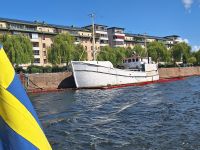 Eine sehr schöne zweistündige Tour, aber wenn man gute Fotos machen möchte, sollte man unbedingt einen Fensterplatz ergattern. Mit den ausgeteilten Kopfhörern kann man die Erklärungen auf Deutsch anhören und die ausliegende Karte hilft bei der Orientierung. Wir durchqueren auch eine Schleuse, sehen tolle Hausboote und staunen über den Skihügel SkiStar Hammarbybacken. Stockholm hat sich bereits mehrfach um die Olympischen Winterspiele beworben, dann aber wieder zurückgezogen. Die Teile des bereits gebauten Olympischen Dorfes sind heute ein modernes Wohngebiet.