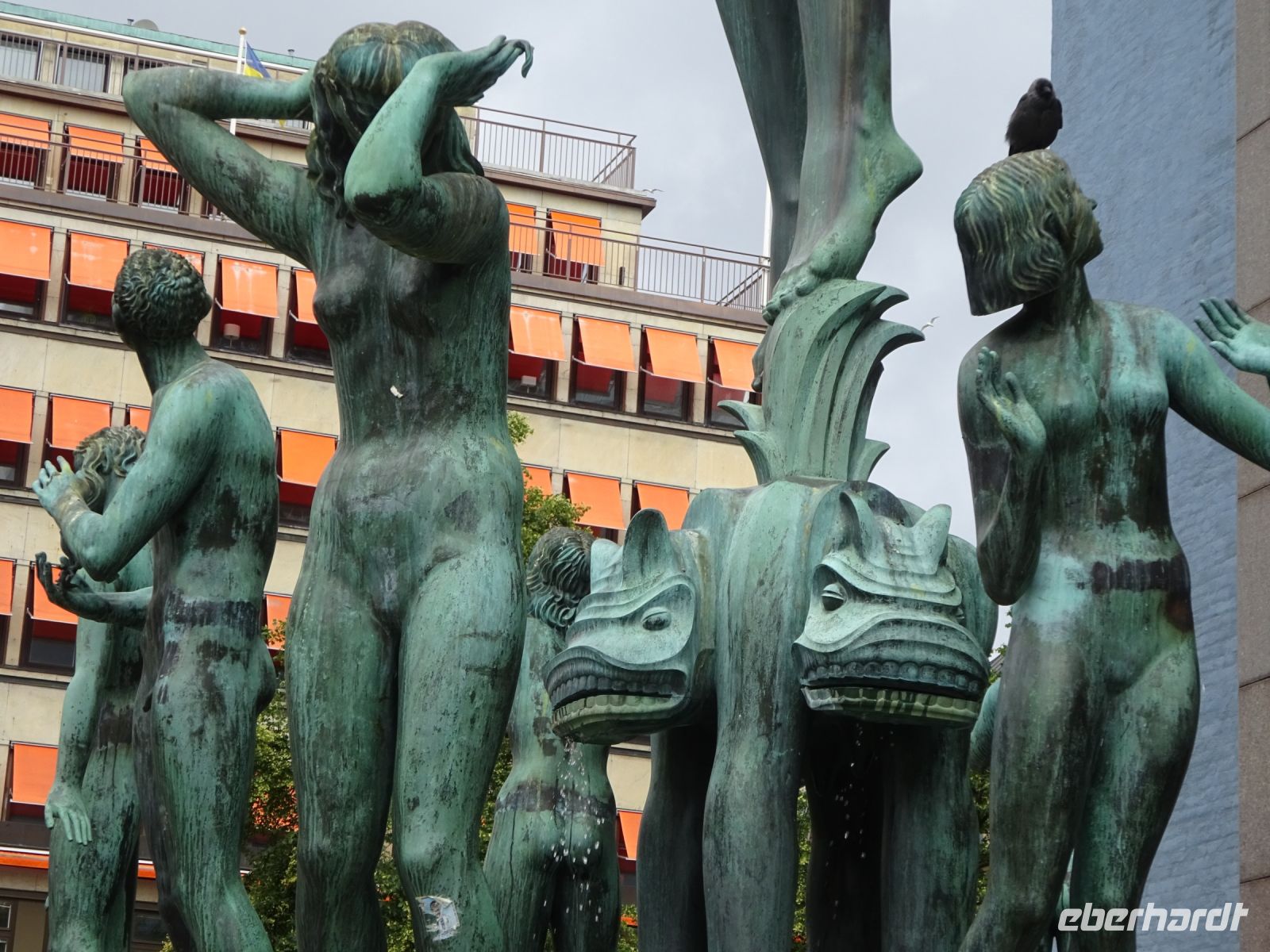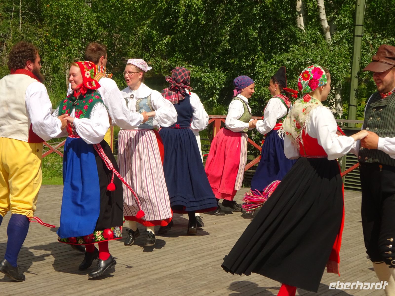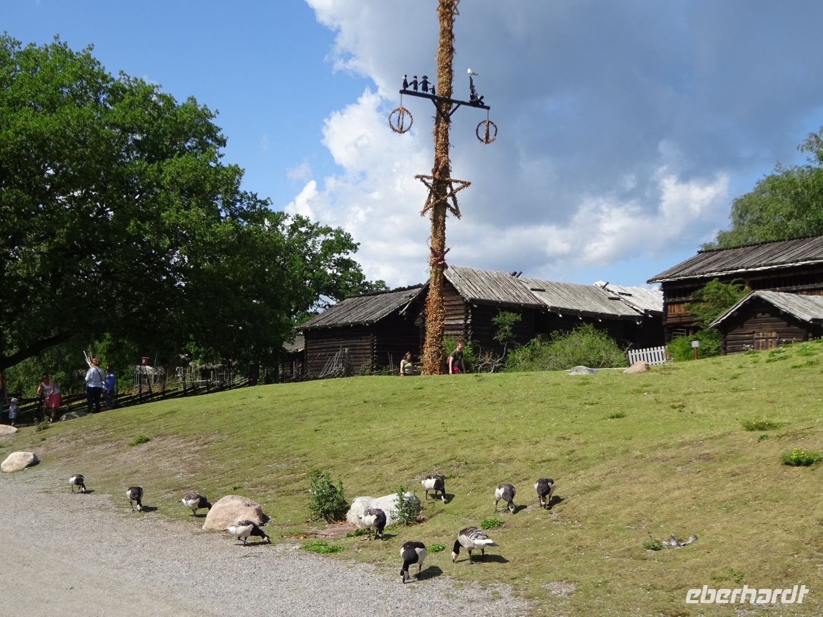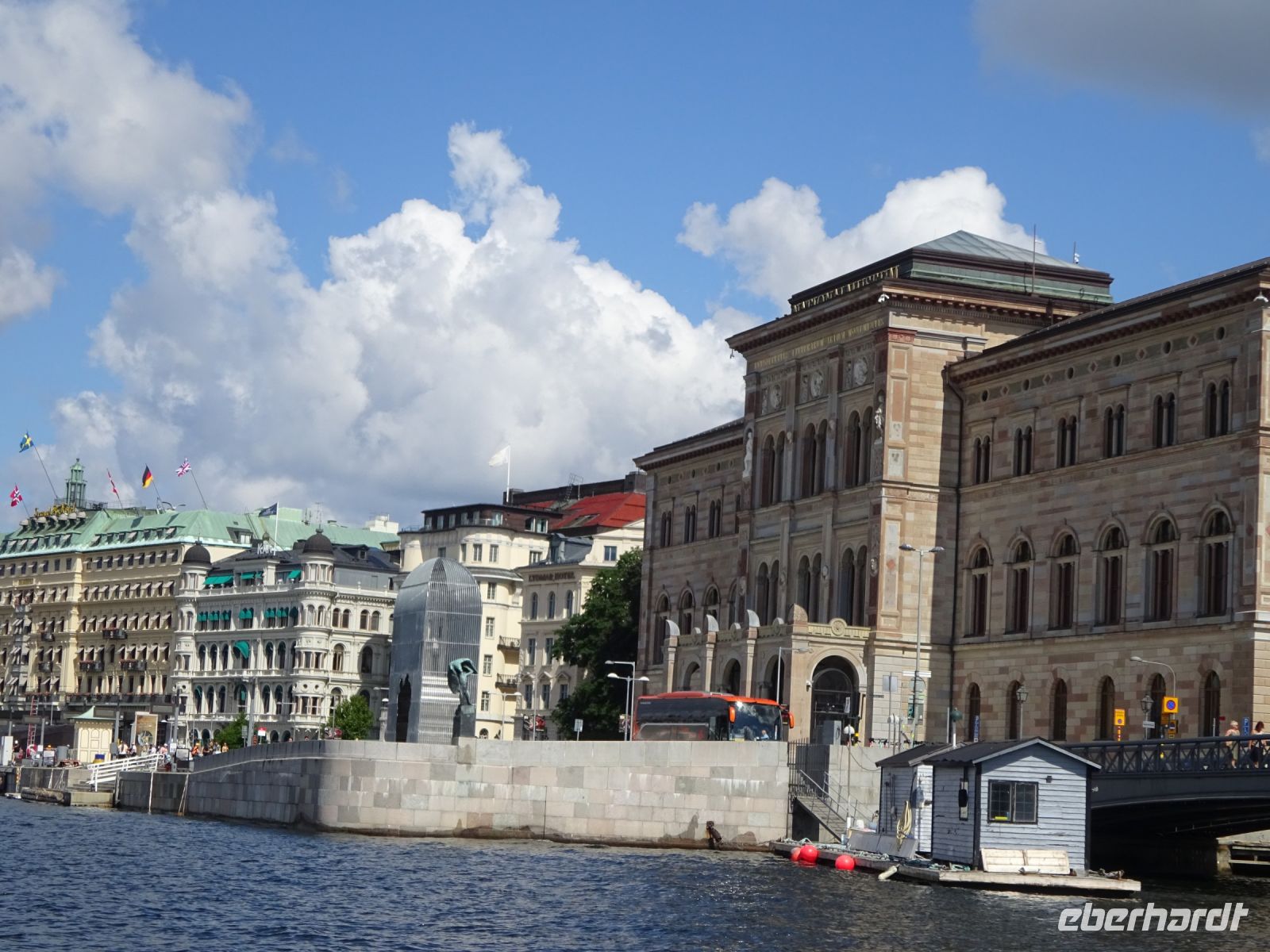 Wieder richtiges Touristenwetter! Vom Hotel fuhren wir mit dem Schiff Nr. 80 bis zum Nybroplan. Dies ist ein zentraler Platz zwischen den beiden Stadtteilen Norrmalm und Östermalm. Nybroplan ist außerdem ein Verkehrsknoten, der auch leicht den Anschluss an das Straßenbahnnetz ermöglicht. Ein kurzer Fußweg durch die Stallgatan, und schon waren wir am Bootsanleger Strömkajen. Von hier aus starteten wir pünktlich um 11 Uhr zur Bootsfahrt „Unter den Brücken von Stockholm“. Wir hatten schnell die besten Plätze inne, um Stockholm vom Wasser aus gut zu sehen. Fünfzehn Brücken und eine Schleuse passierten wir. Diese Tour auf der Ostsee und auf dem Mälarsee hielt uns über zwei Stunden in ihrem Bann. Es gab Fotomotive ohne Ende, einen Übersichtsplan, um die Fahrt gut verfolgen zu können, dazu wissenswerte Informationen über Kopfhörer. So fühlten wir uns wirklich umfassend informiert. Und den nächsten Höhepunkt unserer Reise hatten wir schon fest im Blick, das älteste Freilichtmuseum der Welt „Skansen“. Es wurde auf Initiative von Artur Hazelius angelegt. Ziel war und ist es bis heute, die schwedische Kultur, die historische Bauweise und Geschichte, die Volkskunde im weitesten Sinne, auch die heimische Flora und Fauna anschaulich zu präsentieren. So bestaunten wir Gebäude aus vergangenen Zeiten und sahen auch den Auftritt einer Musik- und Tanzgruppe, natürlich in regionaler Tracht. Für das leibliche Wohl ist hier ebenfalls gesorgt. Großzügig angelegte Spielplätze für Kinder sind in Schweden ohnehin ein gewohntes Bild, so auch hier. Dieses weitläufige Gelände ist ein schöner Ort für Eltern und Kinder. Natürlich sind im „Skansen“ auch Elche zu bestaunen, dazu ein großartiges Aquarium. Wir hatten jedenfalls ausreichend Zeit für den Besuch hier eingeplant. Und für das Abendessen hatten wir schon Plätze im Garten des Restaurants „Lilli Hasselbacken“ reserviert, gleich gegenüber vom Haupteingang zum „Skansen“. Froh und gestärkt ging es dann zurück zum Hotel oder noch auf eine kleine Runde durch einen der zahlreichen Parks oder einfach durch die schöne Altstadt.