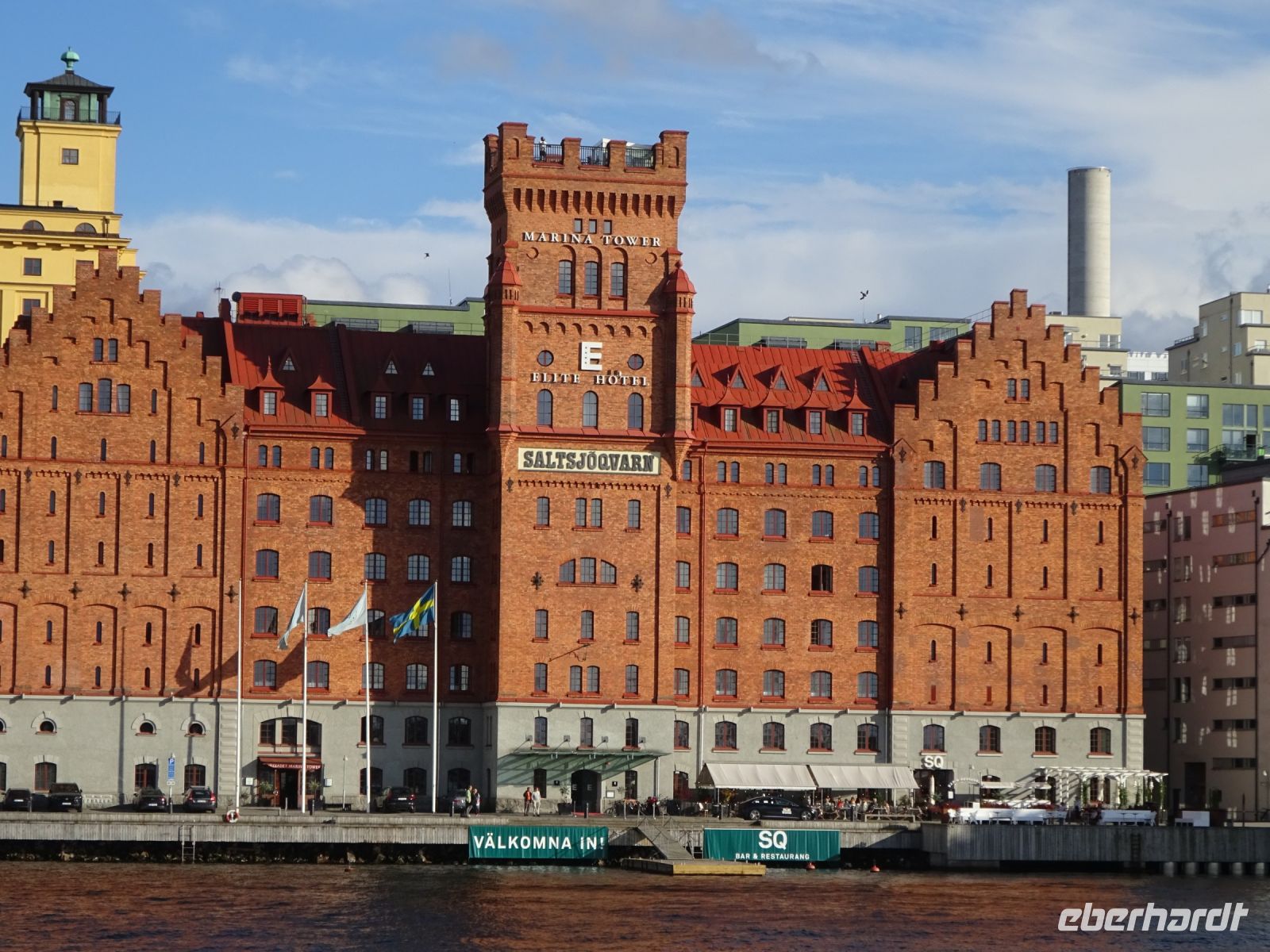 Fast alle waren mit ihren Fliegern aus unterschiedlichen Richtungen pünktlich in Stockholm gelandet. Das ist ja schon eine kleine Sensation an sich, fanden wir beim gemeinsamen Abendessen übereinstimmend. Im Hotel angekommen, wollten wir keine Zeit verlieren und brachen zu einer ersten Schnuppertour ins Zentrum von Stockholm oder in die nähere Umgebung des Hotels auf. Unser schönes 4-Sterne Elite Hotel Marina Tower war dafür ein ausgesprochen guter Startpunkt, denn die Bootslinie 80 legt direkt vor der Tür an und ab. Für den Abend hatten wir uns zum Essen und ersten Kennenlernen verabredet. Plätze waren bestellt, der Fisch schmeckte vorzüglich. Wir können also das Restaurant „Docklands“ allen nur empfehlen. Man erreicht es bequem vom Hotel zu Fuß oder mit der Bootslinie 80. Wir saßen direkt am Wasser, konnten die vorbeifahrenden großen und kleinen Schiffe bei ihrer Ein- und Ausfahrt beobachten, blickten doch etwas neidisch auf sie. Na, wir werden auch noch Touren auf dem Wasser haben. Das Programm der nächsten Tage war natürlich Gesprächsthema. Wie konnte es anders sein?! Jedenfalls hatten wir Stockholm gleich ins Herz geschlossen. Aber nach der Anreise, verbunden mit sehr zeitigem Aufstehen, meldet sich nun doch ein wenig Müdigkeit. Mit dem Boot Nr. 80 waren wir schnell zurück im Hotel. Die praktischen und dazu umweltfreundlichen Travelcards, die jeder von uns für die Dauer der Reise bekommen hatte, kamen gleich zum Einsatz.