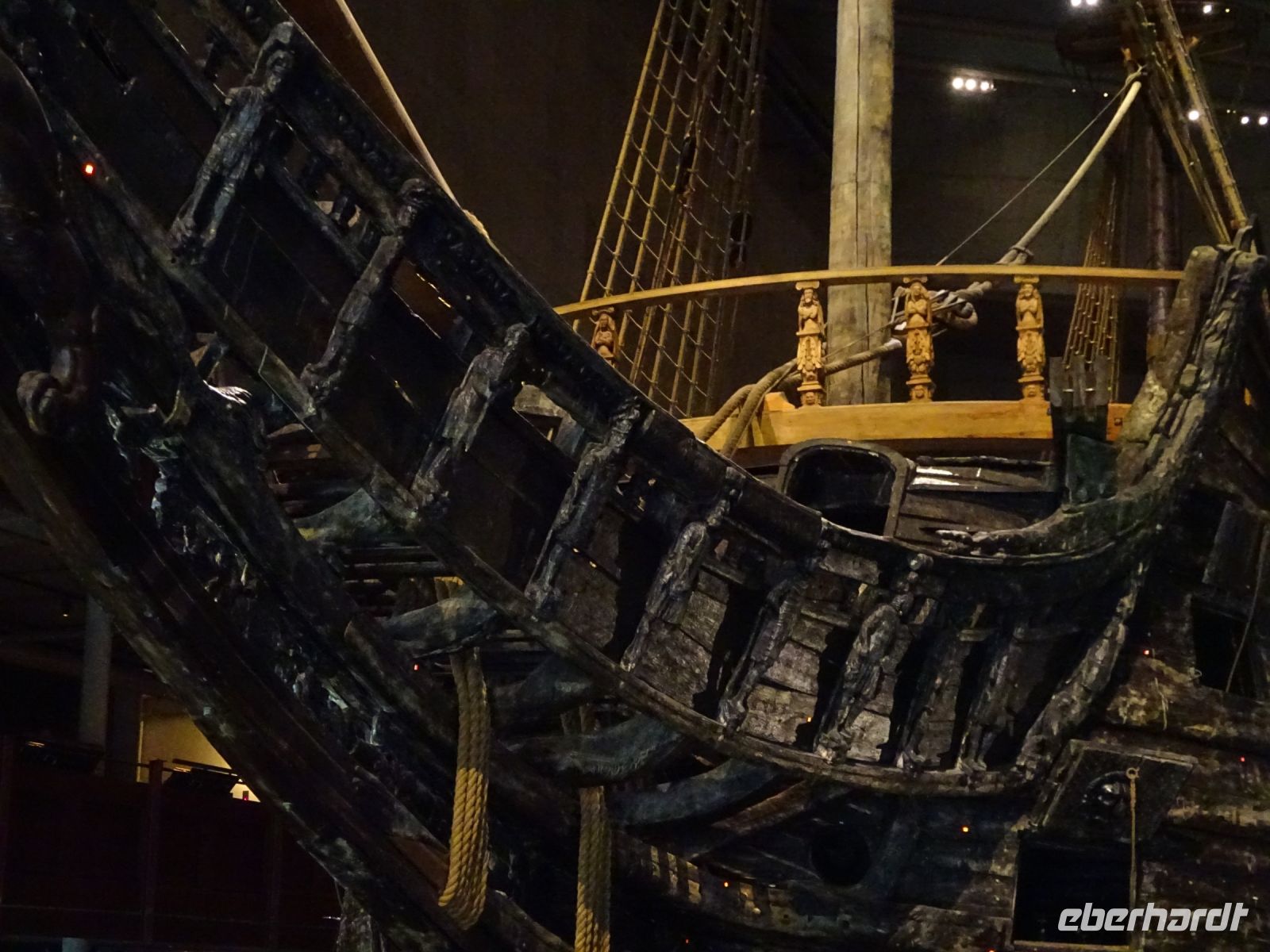 Eigentlich besteht ja unser Programm hier in Stockholm nur aus Höhepunkten. Aber heute war eine ganz besondere Sehenswürdigkeit an der Reihe: das Vasamuseum auf der Insel Djurgarden. Mit dem Schiff Nr. 80 und einem kleinen Spaziergang vorbei am Vergnügungspark waren wir schnell dort. Frühes Erscheinen sichert gute Plätze, das gilt auch und gerade hier. Der Film in deutscher Sprache sollte bald beginnen, Führungen wurden ausgerufen. Dazu kann man sich gut und ganz individuell über eine App auf seinem Rundgang informieren. Das Vasa-Schiff, in Auftrag gegeben von keinem geringeren als König Gustav II. Adolf, der im 30-jährigen Krieg in der Schlacht bei Lützen (bei Leipzig) fiel, und für den es dort auch eine Gedenkstätte gibt, hatte das Schiff in Auftrag gegeben. Allerding war es am 10. August 1628 auf seiner Jungfernfahrt im Stockholmer Hafen gesunken. Grund war der zu weit oben liegende Schwerpunkt des Schiffes. Erst 333 Jahre später konnte es geborgen werden. Dies alles und noch viel mehr zeigte uns der Film anschaulich. Der Film zeigt aber nicht nur den dramatischen Untergang des Schiffes, sondern auch seine aufwändige Restaurierung. Man glaubt es kaum, aber was wir da bestaunen konnten, besteht zu 98% aus Originalteilen! Zahlreiche kleine Ausstellungen in Seitennischen des Vasamuseums stellen spezielle Themen vor, so z.B. die Buchführung, den Alltag zu dieser Zeit in Stockholm, den Handel und noch vieles mehr. Es war genügend Zeit, dies alles ausführlich zu ergründen. Anschließend gingen einige von uns auf einen Stadtbummel, in ein weiteres Museum oder einfach auf einen Spaziergang durch die herrlichen Parks auf der Insel Djurgarden. Für den heutigen späten Nachmittag und frühen Abend hatten wir uns auf einen Ausflug auf die Schäreninsel Fjädarholmarna geeinigt. Man fährt mit dem Schiff nur eine halbe Stunde dorthin. Naja, wir sind in 3 Etappen gefahren, d.h. mit 3 verschiedenen Schiffen! Das schaffen auch nicht alle, aber wir schon! Am Ende zählt das Ergebnis, und auf der Insel kamen schließlich dann doch alle an, machten einen Spaziergang rings um die Insel und natürlich viele Fotos. Neben Geschäften gibt es kleine Werkstätten und schöne Restaurants. Zum Abendessen hatten wir Plätze bestellt, und zwar im Restaurant „Röckeriet Fjädarholmarna“ am Wasser, gleich neben dem Fähranleger und mit wirklich guter Küche. Die Fahrt zur und von der Insel war sehr angenehm. Wieder hatten wir gute Plätze, d.h. eine schöne Aussicht und die Chance auf ungestörtes Fotografieren. Und wieder hatten wir einen schönen Tag mit vielen Eindrücken erlebt und auch mit ein wenig selbstgemachten Turbulenzen wegen der Hinfahrt. Aber: Ende gut, alles gut! Das gilt auch hier.