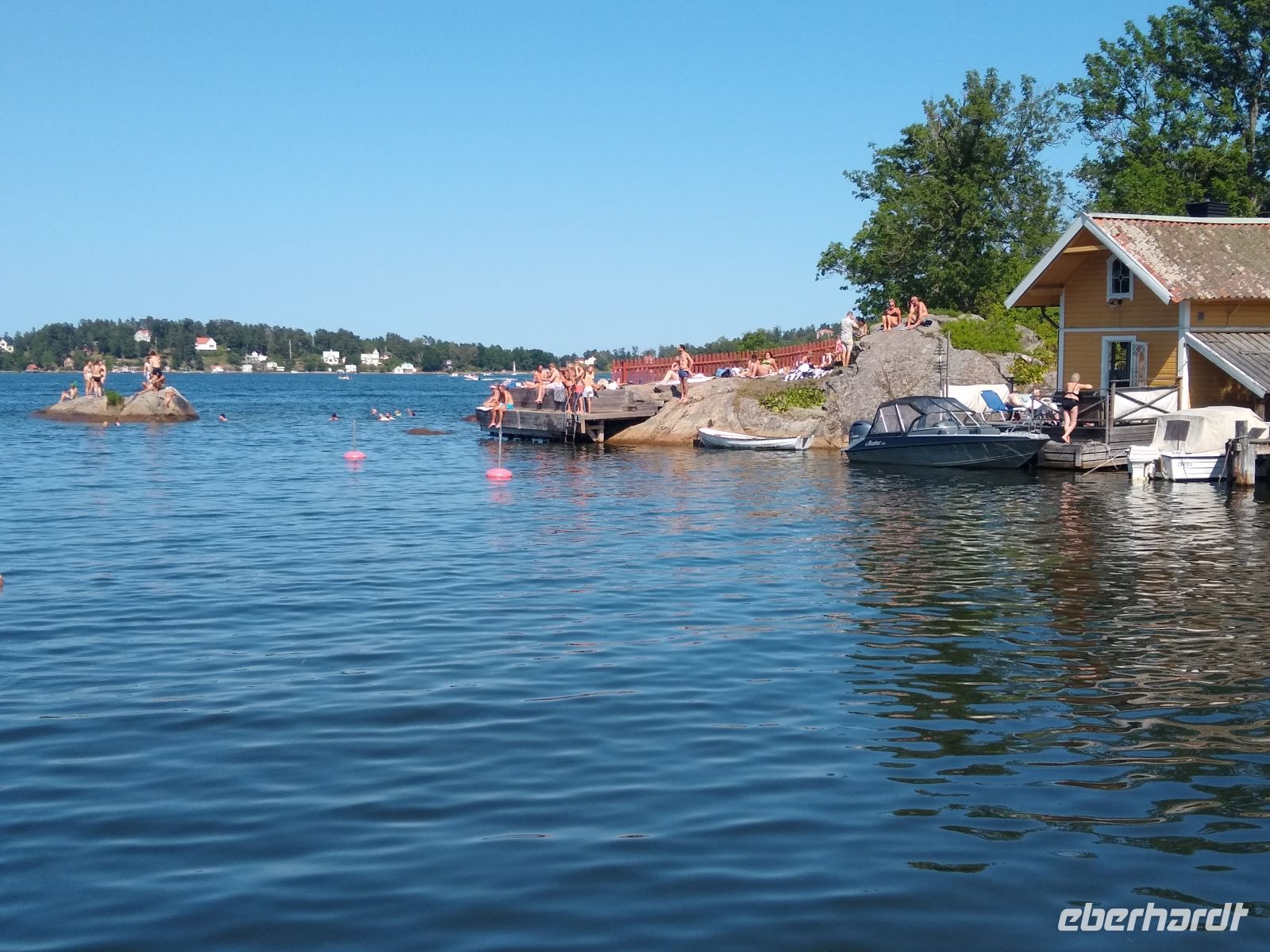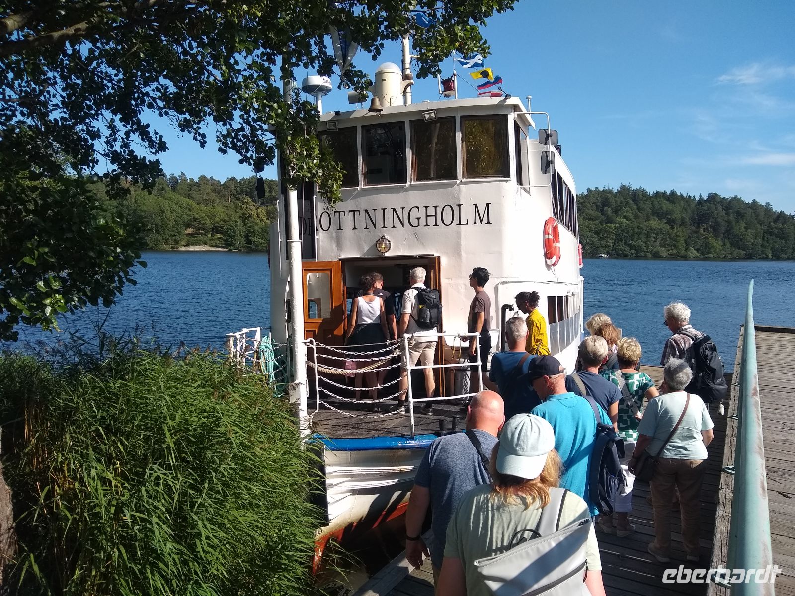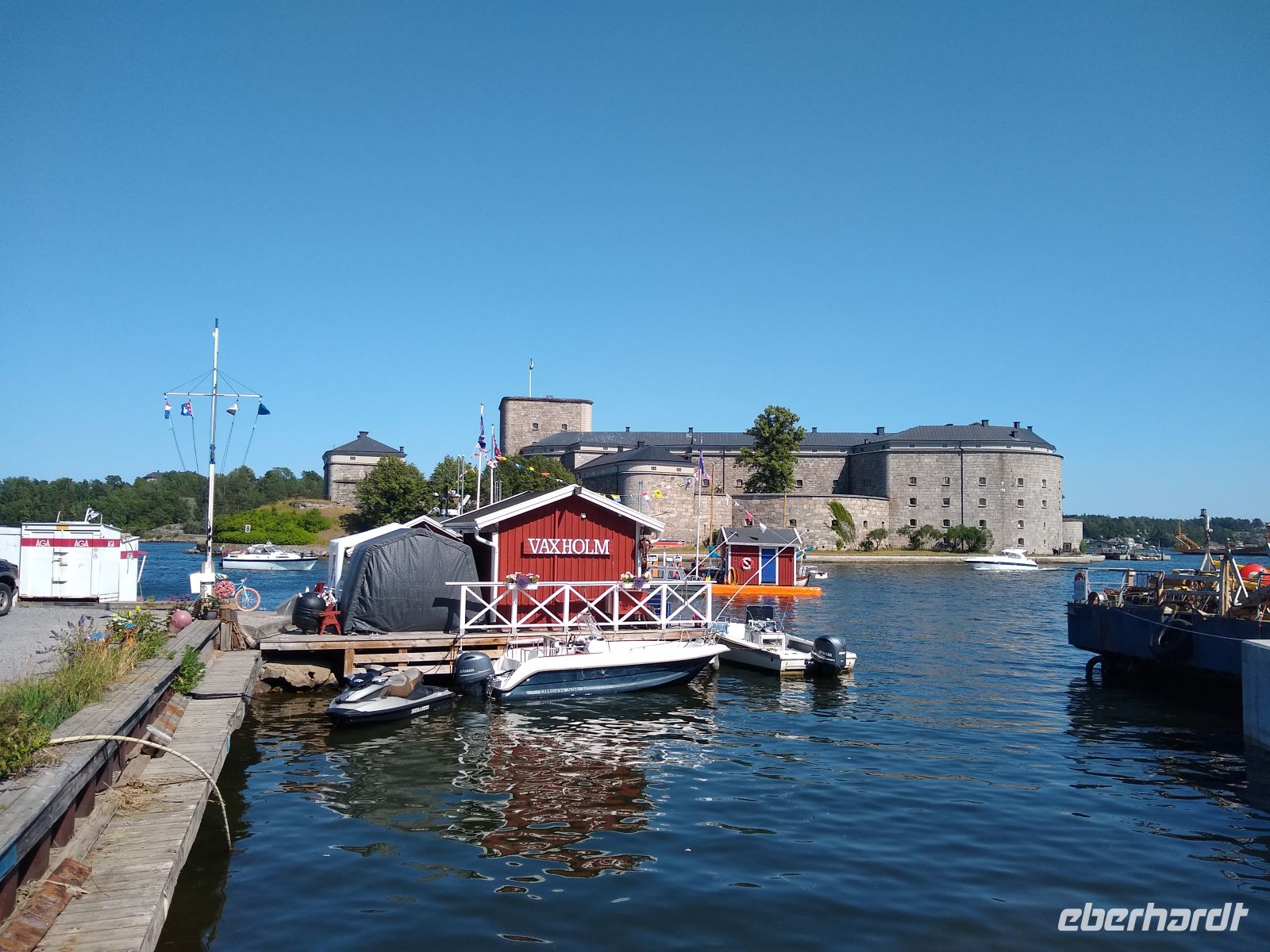 Und für den Nachmittag ist der Ausflug in die Stockholmer Schären geplant. Die Insel Waxholm sieht man nach einer Stunde Fahrt mit der Fähre. Im Hafenbereich kann man flanieren mit dem Blick zur Festung. Hier soll Pippi Langstrumpfs Papa von den Piraten gefangen gehalten sein. Erinnerungen an alten Filmen.