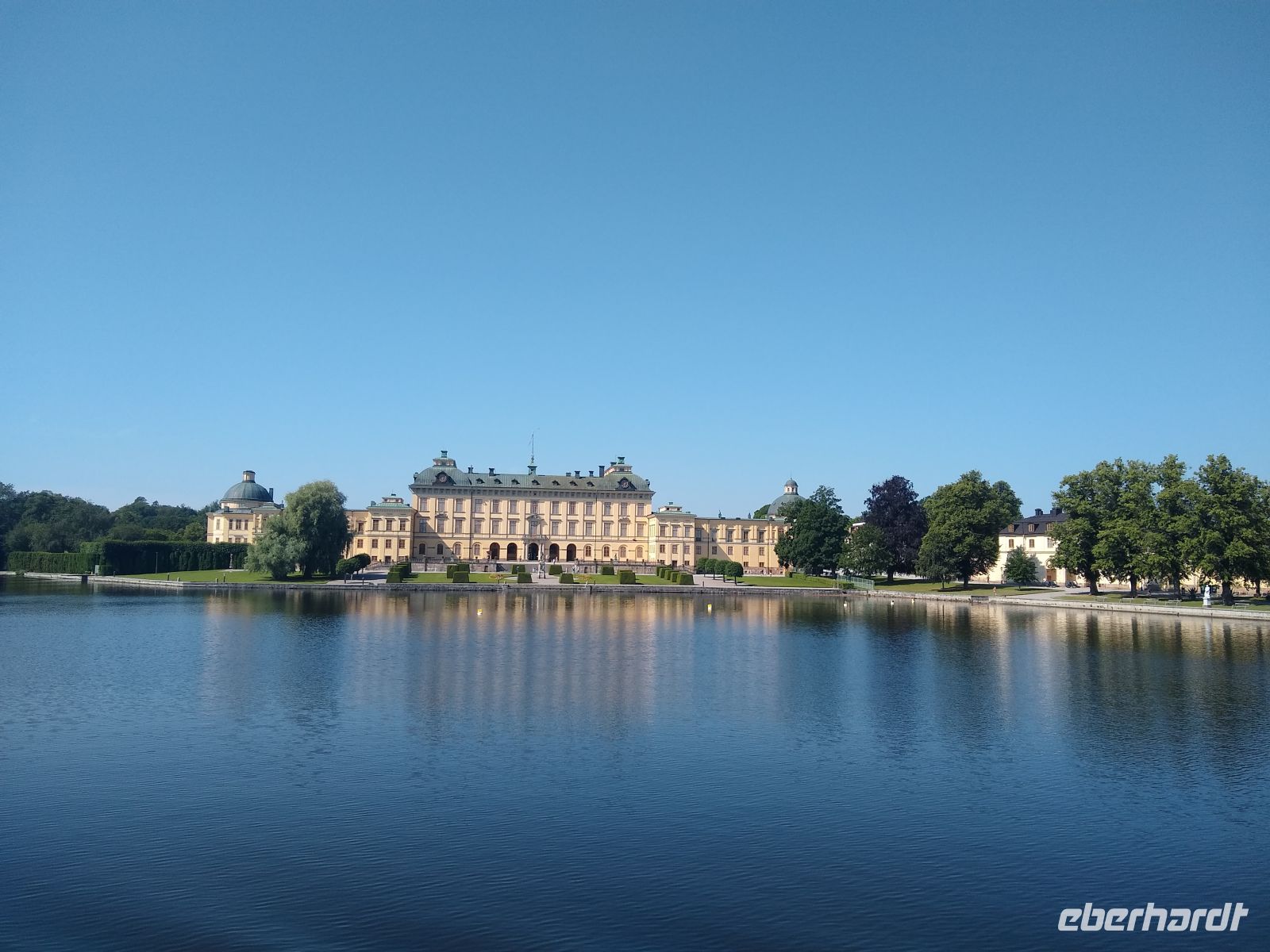 Mit der Fähre gegenüber von Stadthaus (Rathaus) fährt man eine Stunde lang in Richtung Westen zum Schloss Drottningholm, Wohnsitz der schwedischen Königsfamilie. Das barocke Schloss mit dem Garten, die „chinesische Bauten“ und das einmalige barocke Hoftheater aus dem 18. Jahrhundert sind UNESCO-Weltkulturerbe. Also unbedingt sehenswert. Bei dem herrlichen Sommerwetter lässt sich im Park angenehm spazieren.