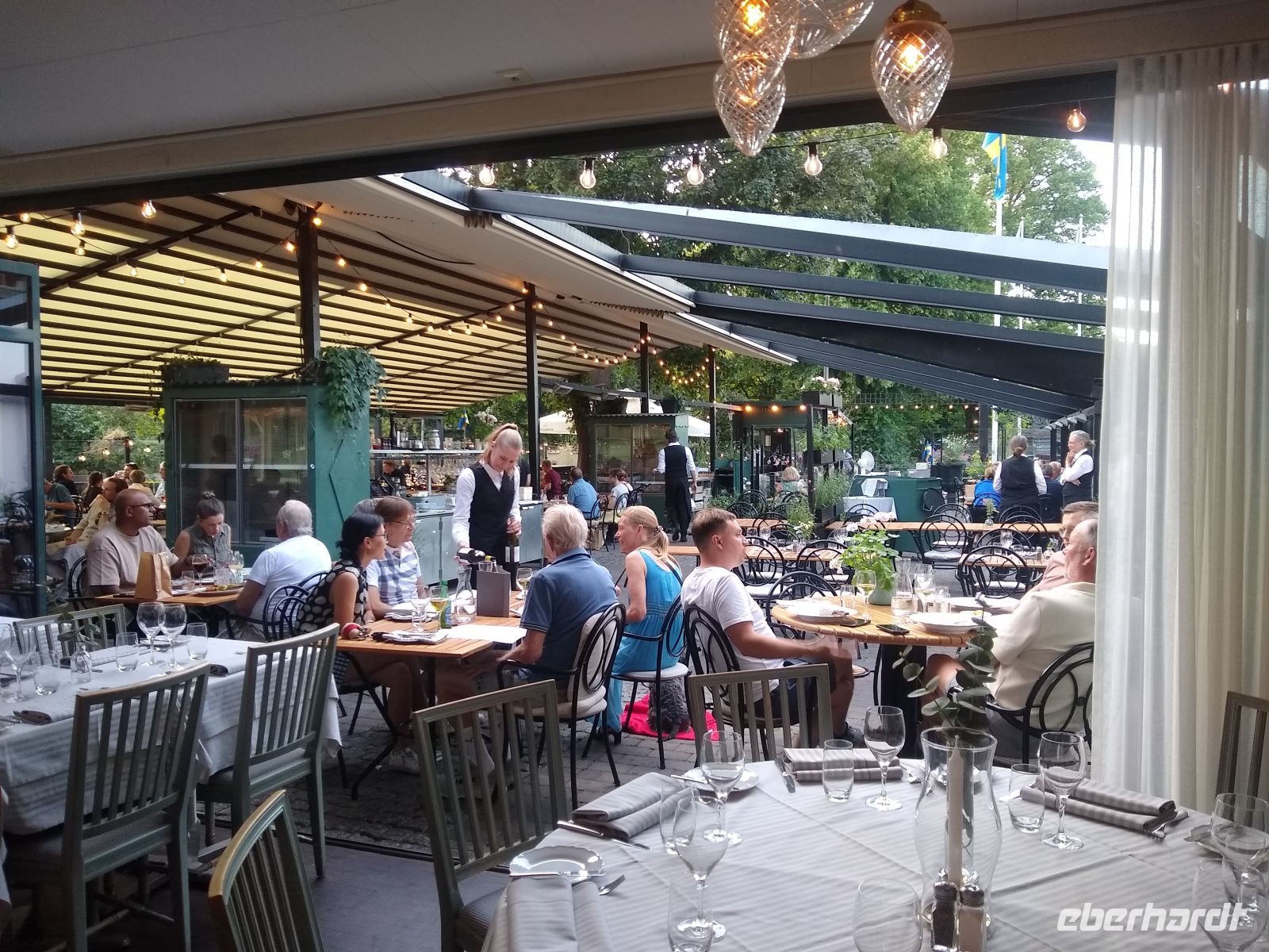 Den königlichen Bereich lassen wir mit dem Schiff am Nachmittag zurück, den am Abend möchten wir königlich essen. Beim Abschieds-Abendessen speisen wir im Grünen, und zwar im Restaurant Ulla Winbladh auf der Insel Djurgården: ein Genuss für die Augen und für den Gaumen!