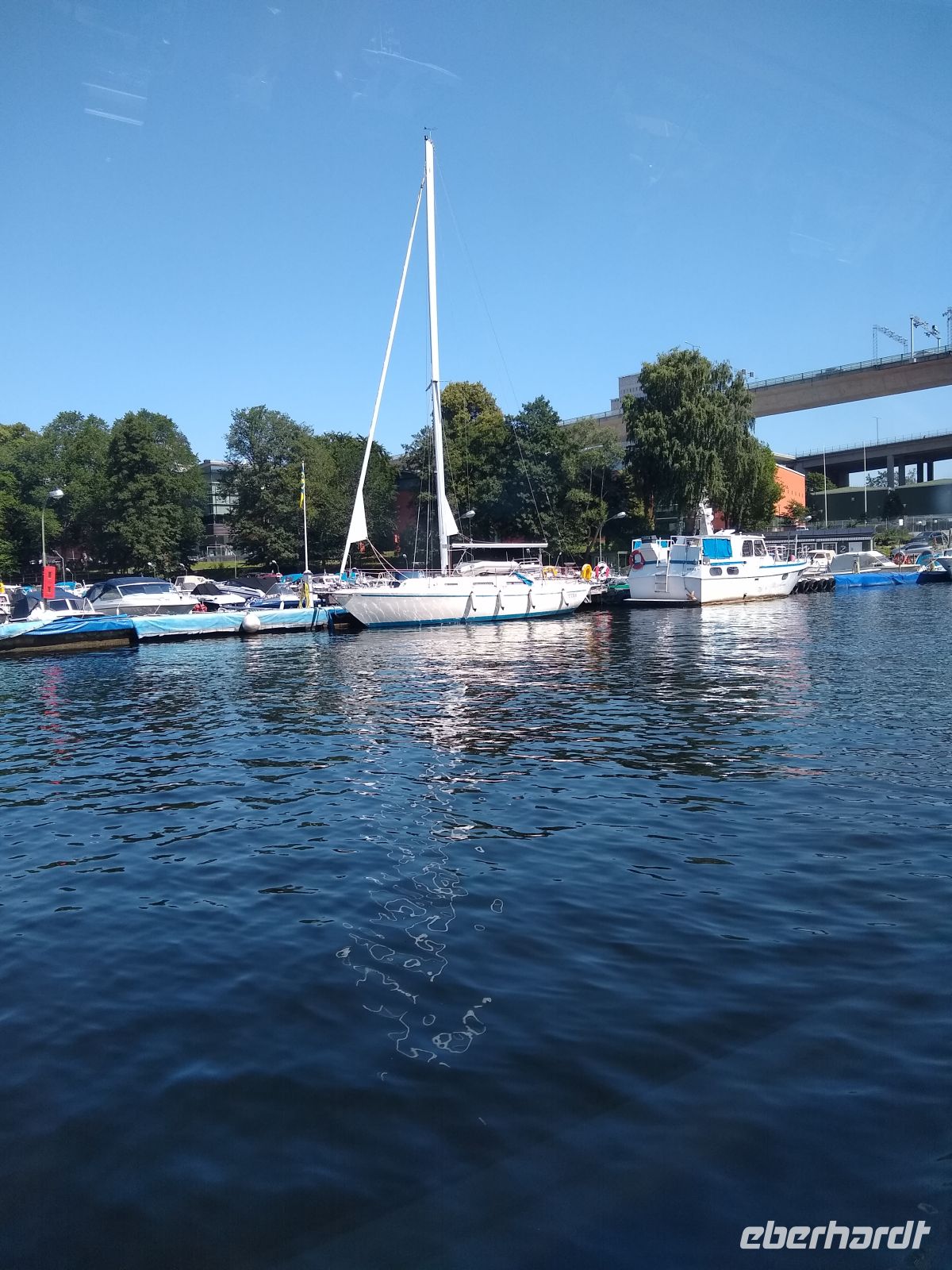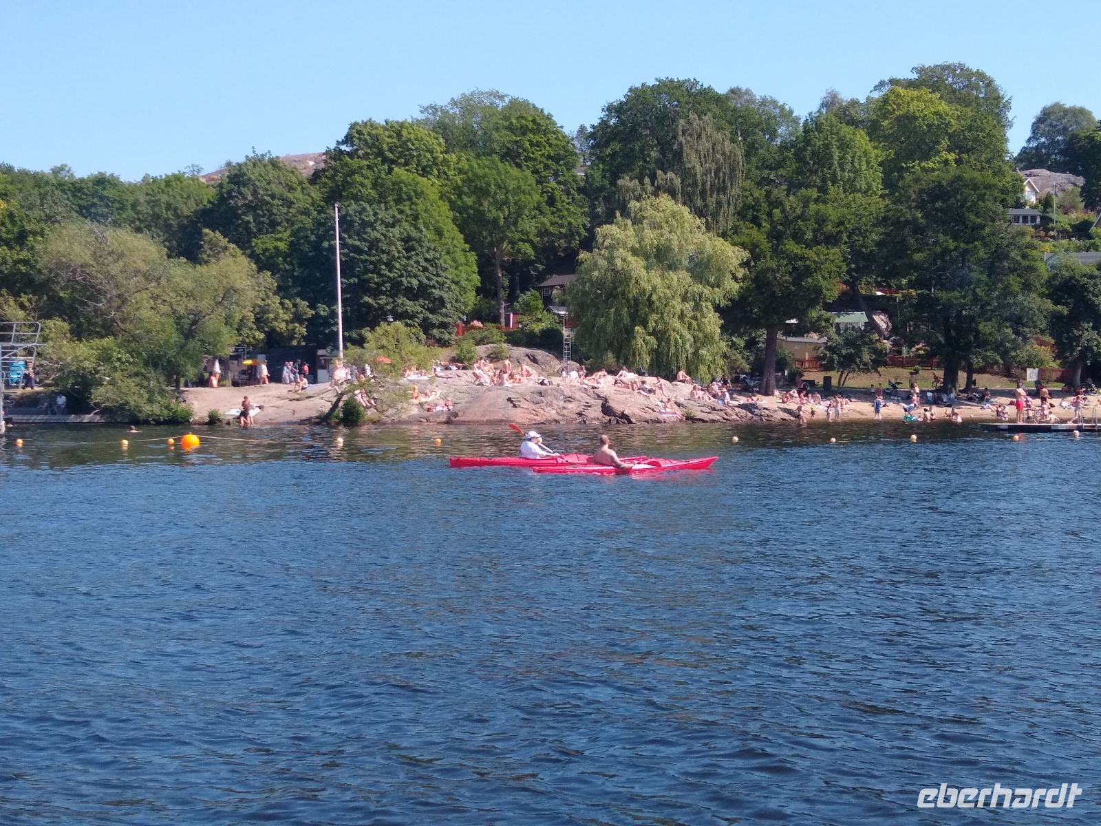 Mit der Fähre 80 sind wir früh am Morgen unterwegs, um den Nybroplan zu erreichen. Die Fähre haben wir vor der Hoteltür . Nur zwei Stationen und schon sind wir vor der Jugenstilfassade des Königlichen dramatischen Theaters, das durch den vielen vergoldeten Reliefs und Statuen auffällt. Nur noch ein paar Minuten zu Fuß bis zum Grand Hotel und schon sind wir an der Anlegestelle, wo unser Schiff eine Rundfahrt beginnen wird. Zwei Stunden auf dem Schiff, und man erahnt das entspannte Wohnen in den vielen Wohnblöcken, die ziemlich dicht am Wasser gebaut sind. Bei dem wunderschönem sonnigen Wetter liegen die Menschen auf jeder Wiese am Wasser. Einige schwimmen sogar.