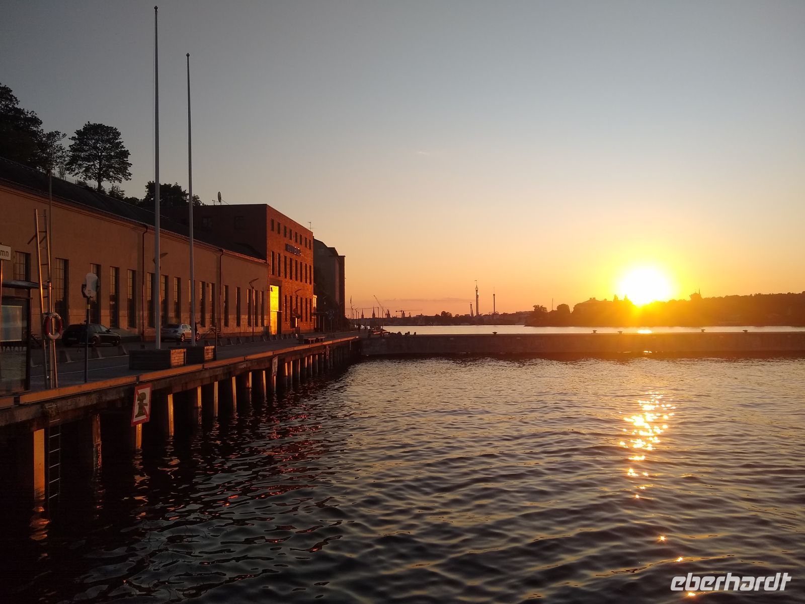 Nach der Kennenlernen-Runde der gesamten Gruppe, die aus 12 Personen besteht, bei einem Gläschen schwedischen Absolut Wodka oder Gin, ist Zeit für das Abendessen. Diesmal habe ich für die Gruppe einen Tisch unweit vom Hotel reserviert, im Restaurant Finnboda Hamnkrog. Das moderne Gebäude ist direkt am Wasser gelegen, direkt an dem Anleger der Fähre. In diesem Lokal, wo viele Einheimische an den Tischen sitzen, findet die erste Begegnung mit der schwedischen Küche. Und das Ganze bei Temperaturen von 28 Grad, bei einem wunderschönen Sonnenuntergang! Morgen wird die kulinarische Reise fortgesetzt!
