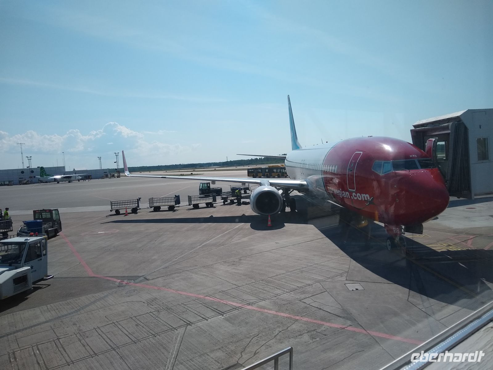 Der Himmel über Berlin ist heute Vormittag grau, und kurz vor dem Einsteigen in den Flieger geht es sogar richtig los mit dem Regen. Da freue ich mich doppelt nach Stockholm zu fliegen, wo die Meteorologen Sonne und warme Temperaturen für die kommende 6 Tage vorhergesagt haben. Mit einer kleinen Gruppe fliege ich vom Flughafen BER Berlin-Brandenburg nach Stockholm Arlanda mit der Norwegian Air. In anderthalb Stunden Flug können wir die grünen und blauen Töne der Landschaft der schwedischen Hauptstadt von der Luft aus wahrnehmen. Mit den zwei Taxen, die für die Gruppe bestellt wurden, werden wir uns durch den dichten Nachmittagsverkehr schlagen, um das zentral gelegene Hotel zu erreichen. Das Elite Hotel Marina Tower liegt direkt am Wasser, gegenüber der Insel Djurgården. Tolle Lage, die schon eine angenehme Urlaubsatmosphäre verströmt. Das ehemalige Fabrikgebäude mit der riesigen Backsteinfassade wurde wunderschön in ein komfortables Hotel umgebaut. Die modernen Akzente, und dazu zählen auch die zeitgenössischen Bildern im Inneren, passen gut im historischen Rahmen.
