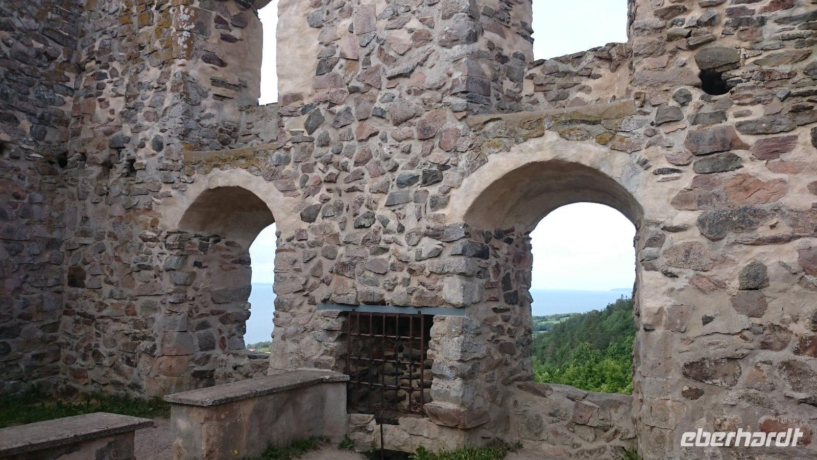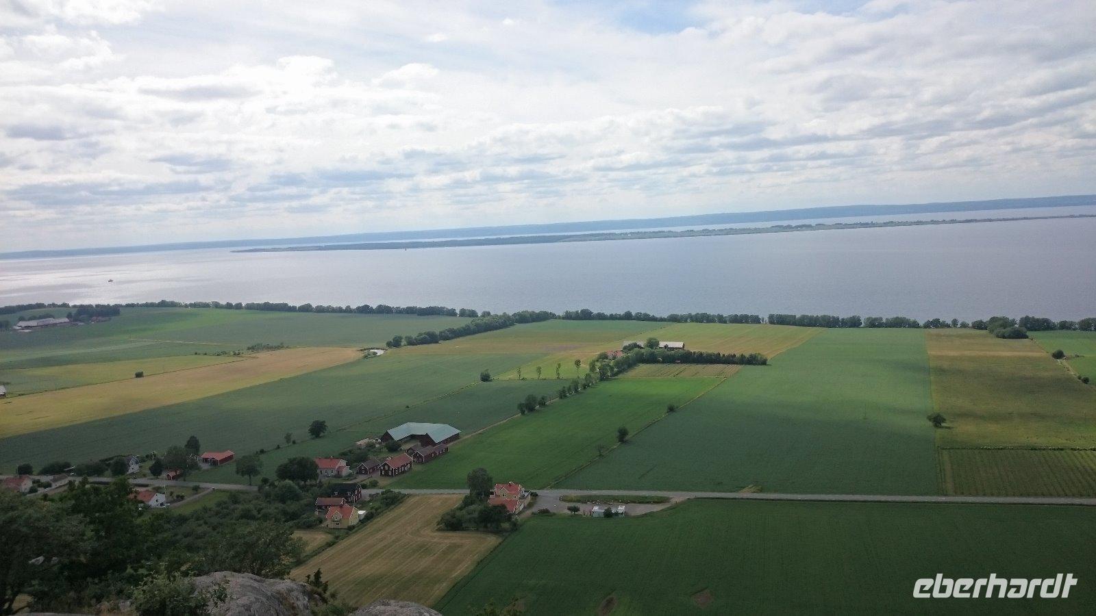 Auf der Fahrt zu unserem Hotel in Växjö stoppen wir ander Ruine Brahehus. Hier bietet sich allen ein phantatischer Blick über den Vätternsee und die Möglichkeit Polkagriskokerie - Zuckerstangen- als Mitbringsel zu erwerben.