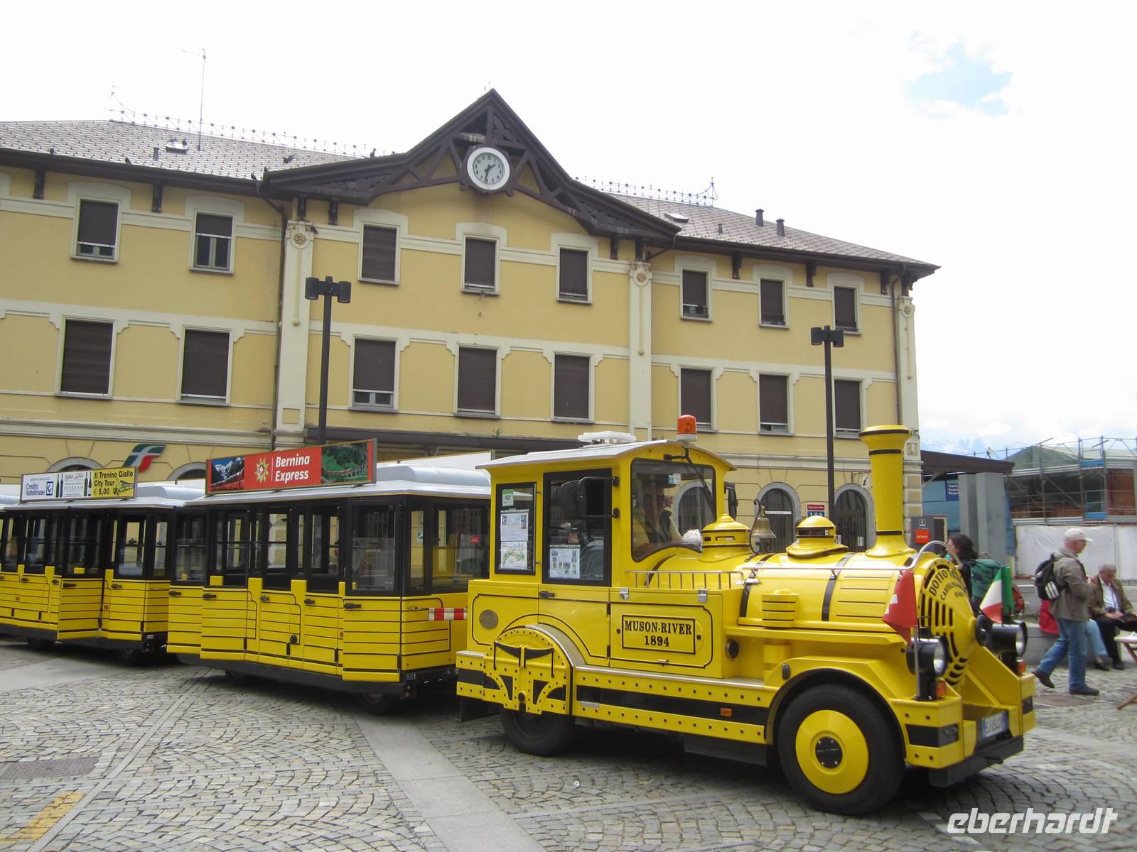 In Tirano angekommen probieren wir erst einmal die italienische Küche im Restaurant „Al Portici". Es bleibt noch Zeit für die Kirche Madonna di Tirano, oder auch für einen kurzen Besuch der Altstadt. Gegen 14.10 Uhr beginnen wir unsere Rückfahrt mit dem Bus. Dabei wollen wir die Fotofans auf ihre Kosten kommen lassen. Der erste Fotostopp ist am Kreisviadukt in Brusio. Ein gutes Timing, wir müssen nicht lange auf den Zug warten, der vor unsere Augen über das Viadukt gleitet und ähnlich wie bei einem Kreiskehrtunnel die Höhendifferenz überwindet. Viele Bilder sind im Kasten. Schöne Fotos ergeben sich noch bei dem Stopp am Berninapass und dem Morteratschgletscher.