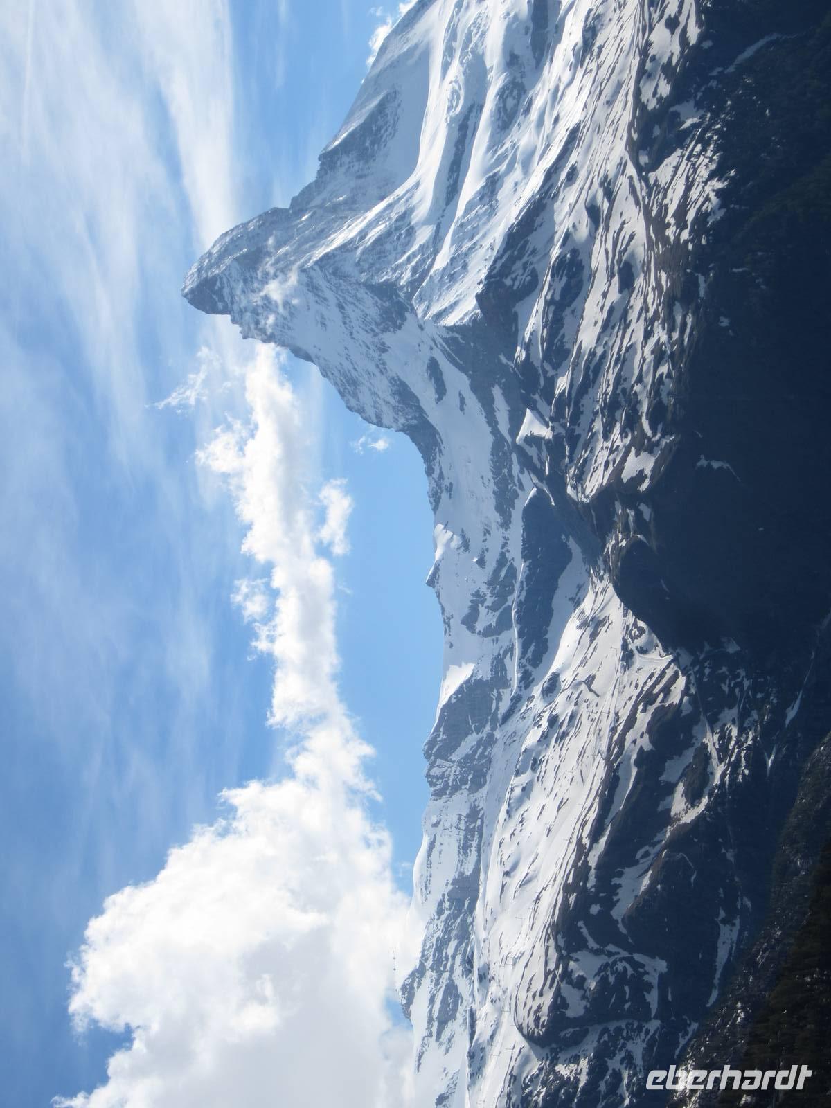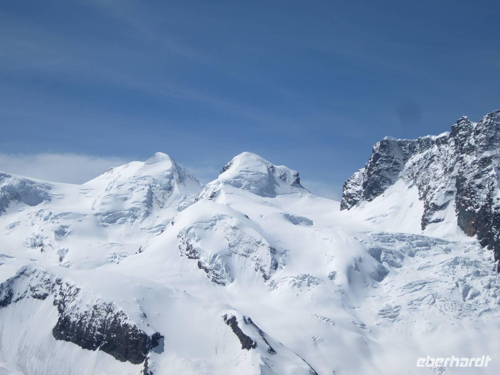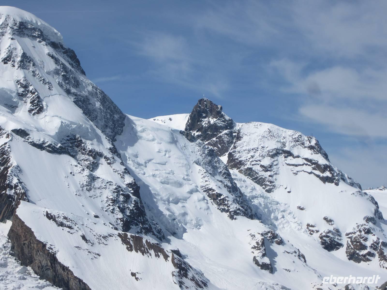 Reiner ist mit unseren Koffern schon an der Rezeption. Schnell sind die Zimmer bezogen und wir lassen bei einem guten Abendessen den Tag ausklingen.Tag, ZermattNach dem Aufwecken, Blick zu den Bergen. Wir haben Glück, kalte Temperaturen in der Nacht und schon teilweise blauer Himmel am Morgen. Der größte Teil der Gruppe fährt zum Gornergrat. Wir nehmen den Zug 09.36 Uhr. Es sind noch wenige Gäste unter,wegs, die Tagestouristen kommen später und wir können die Ruhe auf den Gornergrat genießen. Die Berge zeigen sich in voller Schönheit mit viel Schnee. Um wandern zu können muss man die tieferen Regionen nutzen.