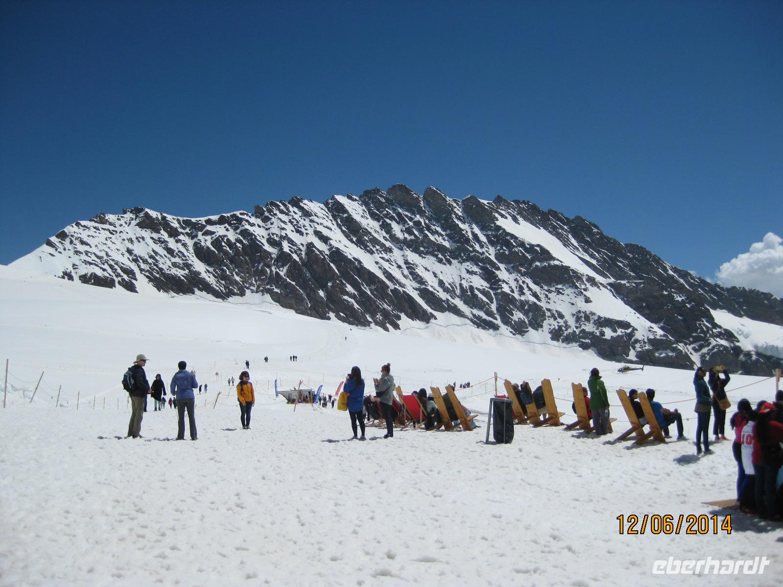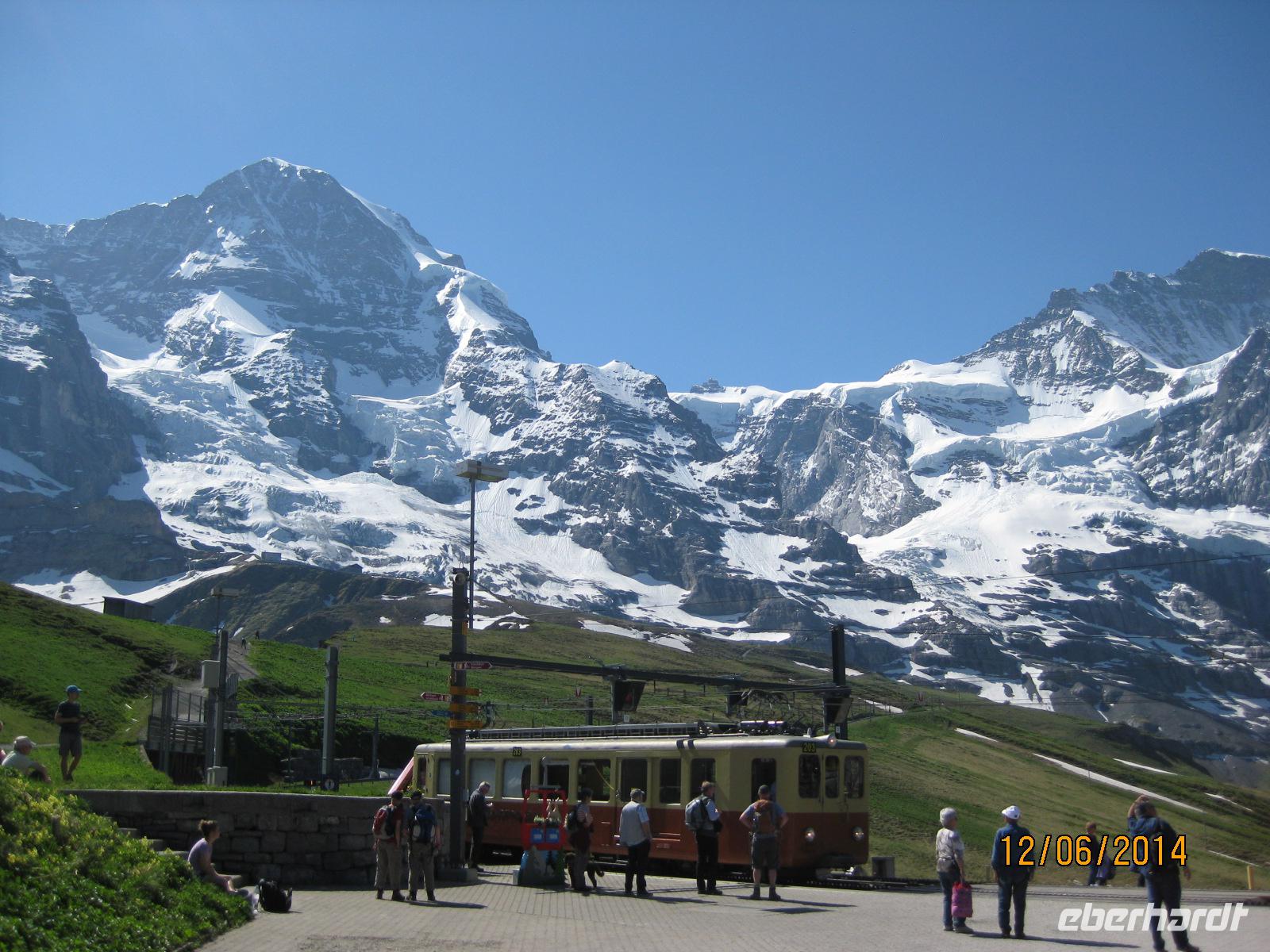 Mönch, Eiger, Jungfrau - die Berge rufen und das Wetter spielt auch heute wieder mit! Endlich ist es soweit und wir fahren mit dem Zug nach Grindelwald und weiter mit der Zahnradbahn zur Kleinen Scheidegg. Bereits hier genießen wir einen traumhaften Blick auf das Dreigestirn. Anschließend geht es mit der Jungfraubahn durch den Eiger zur höchstgelegenen Bahnstation Europas, dem Jungfraujoch in 3.454 Metern Höhe. In dieser gewaltigen Höhe ist etwas einmaliges geschaffen worden. Ganz oben angekommen besichtigen wir die Aussichtsplattform Sphinx und den Eispalast im Gletscher mit einzigartigen Eisplastiken. Von den verschiedenen Aussichtspunkten genießen wir eine traumhafte Sicht auf die umliegenden Berge sowie den sagenhaften Aletschgletscher. Mit dem Zug kehren wir am späten Nachmittag nach Interlaken zurück.