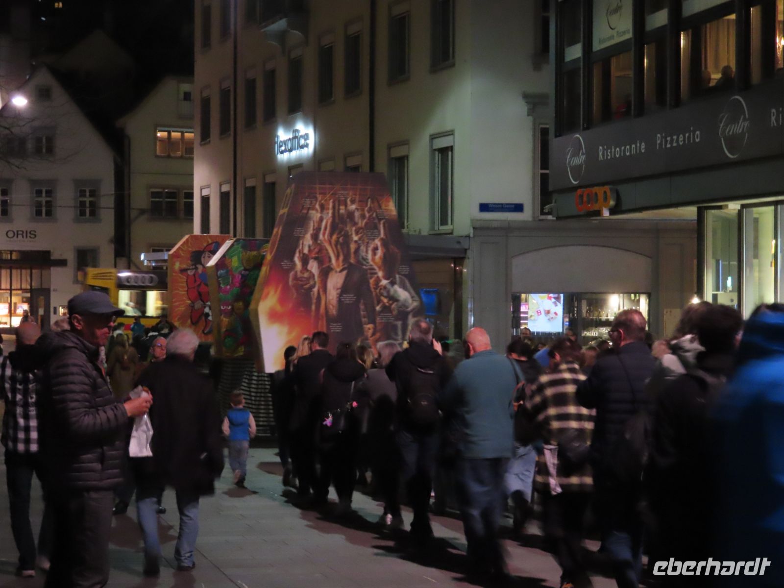 Den Abschluss des Tages gestalten die Guggenmuusig-Gruppen. Sie ziehen in Sternmärschen durch die Stadt und spielen mit Pauken, Trompeten, Tubas und anderen Blas- und Schlaginstrumenten bekannte Melodien. Sie geben als Höhepunkt auf verschiedenen Plätzen der Stadt jeweils Konzerte geben. In der ganzen Altstadt begegnen wir zusätzlich trommelnden und pfeifenden Gruppierungen. Wir schauen auf dem Münsterplatz vorbei und bewundern die kunstvoll gestalteten Laternen. Ein letztes Mal lassen wir uns verzaubern. Das Abendessen nehmen wir individuell ein.