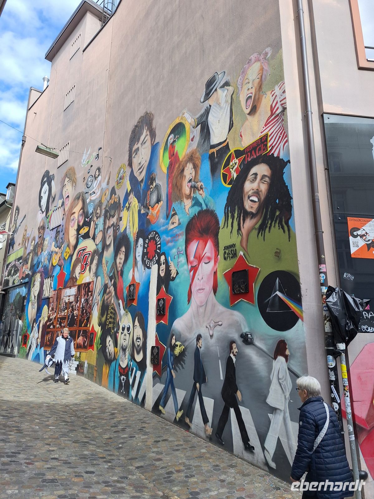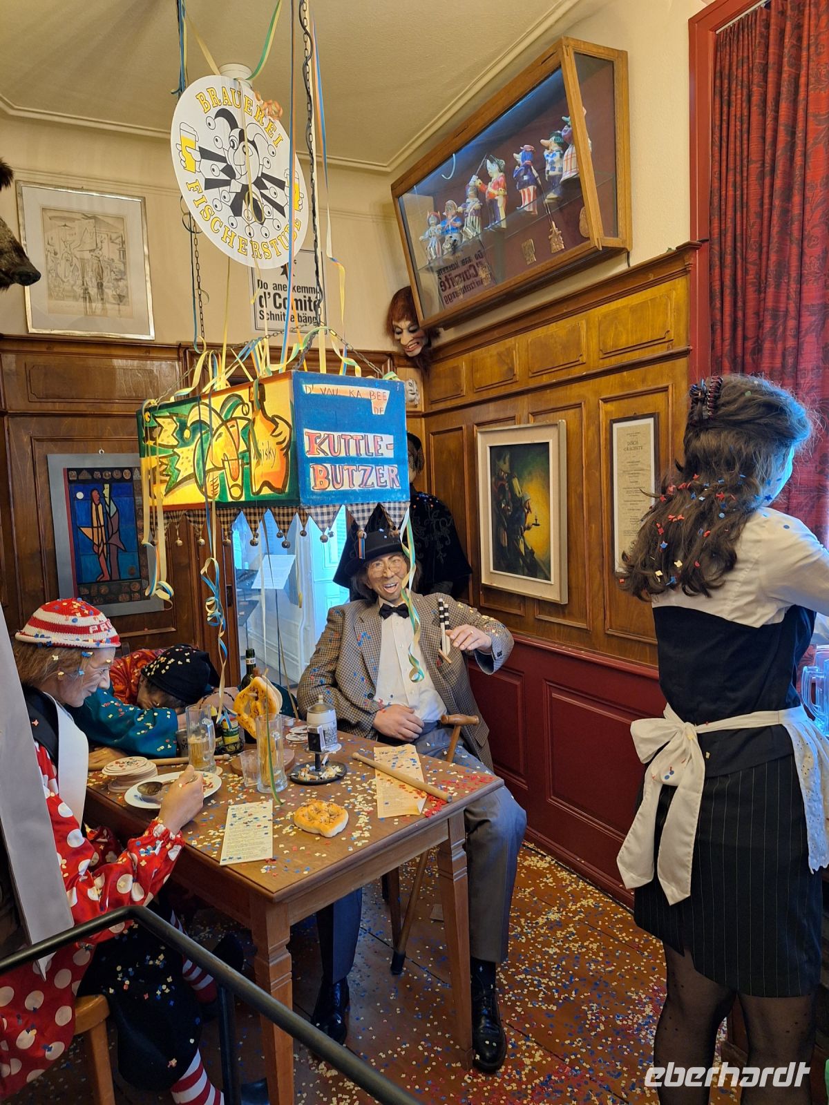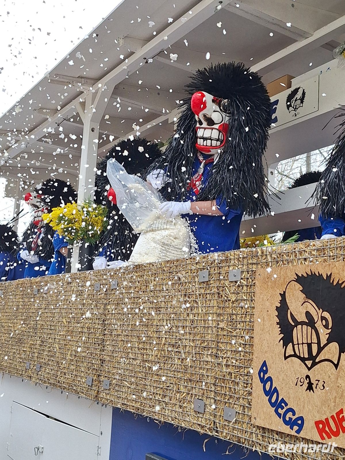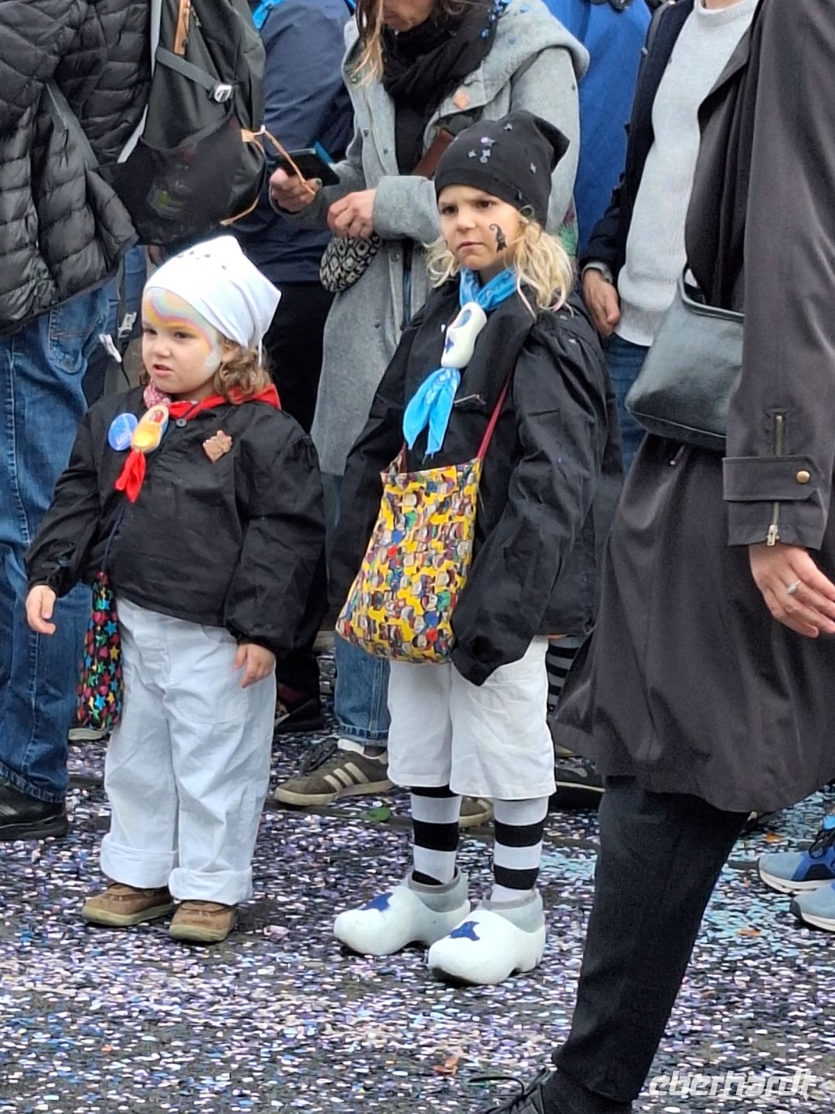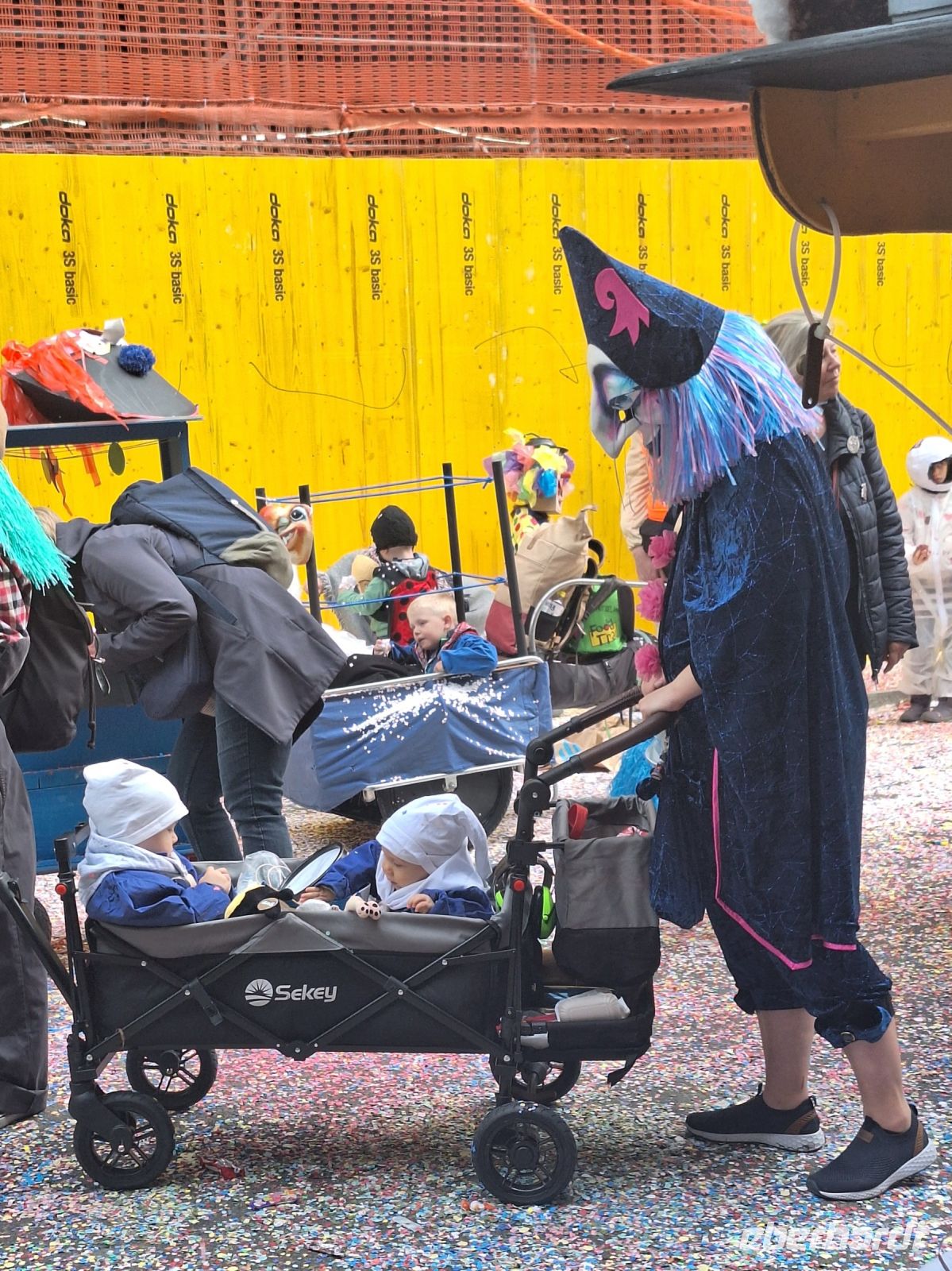 Am Vormittag erwartet uns ein weiterer Höhepunkt. Auf dem Münsterberg vor dem Museum der Kulturen erwartet uns ein leidenschaftlicher Fasnächtler natürlich im Kostüm. Er nimmt uns in der interessanten Ausstellung zur Basler Fasnacht auf besondere Art mit in die Welt und die Faszination der Fasnacht. Gespannt lauschen wir den spannenden Geschichten! Wir erfahren, dass die Kostüme für den Cortegè, den großen Umzug jeder Fasnächtler jedes Jahr neu anfertigt, dass zum Morgenstraich und am Dienstag zur Kinderfasnacht alle in selbst gewählten Kostümen unterwegs sind. Sehr erstaunt sind wir darüber, dass die Fasnacht durch die Cliquen selbst finanziert werden. Der Verkauf der Plaketten ist dabei ein wichtiger Beitrag. Es gibt keinerlei Zuschüsse von der Stadt oder anderen Sponsoren. Deshalb ist es möglich, dass verschiedenste, auch unbequeme Themen als Sujet – Thema durch die Cliquen gewählt werden können. Wir erfahren, wie die Larven – die Masken – hergestellt werden, wie eine Trommel gebaut ist und die Bedeutung der verschiedenen Figuren, die wir immer wieder in den einzelnen Cliquen entdecken. Es war ein sehr kurzweiliger Besuch. Den weitern Tag nutzen wir zum Bummeln durch die engen Gassen der Altstadt. Hier sind heute die unterschiedlichsten Gruppen unterwegs. Überall treffen wir die fröhlichen Fasnächtler. Guggemuusig, Piccollos und Trommler – die ganze Stadt ist erfüllt mit den Fasnachtsklängen und heute voll in der Hand der Familien und Kinder. Sie formieren sich in einen eigenen großen Umzug. Auch dabei bleibt es nicht aus, dass uns die Begeisterung erfasst, mit welcher die Basler ihre Tradition pflegen und schon als Kinder mitwirken dürfen. In viel Liebe und Fantasie oft selbst gestalteten Kostümen und kleinen Wägelchen nehmen sie am Umzug teil. Sie verteilen ihre Dääfeli (Bonbons) und bewerfen sich gegenseitig und manchmal auch die Zuschauer mit Räppli (Konfetti). Es ist einfach herrlich.