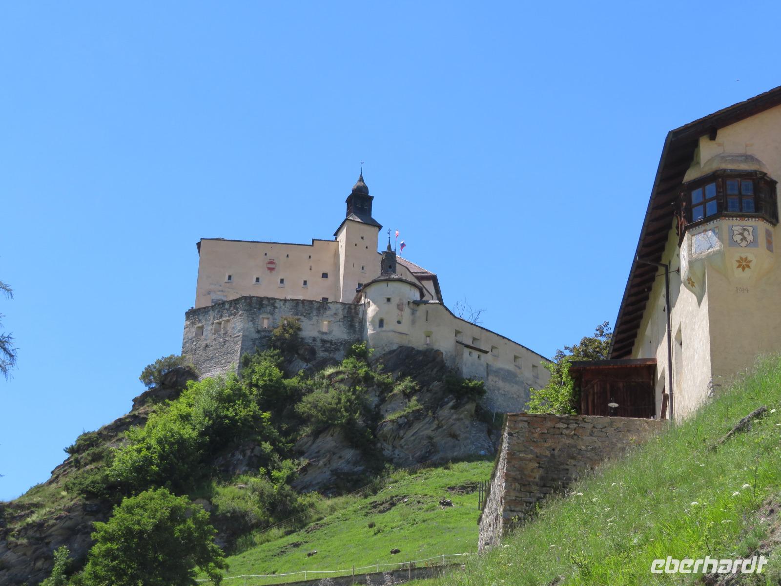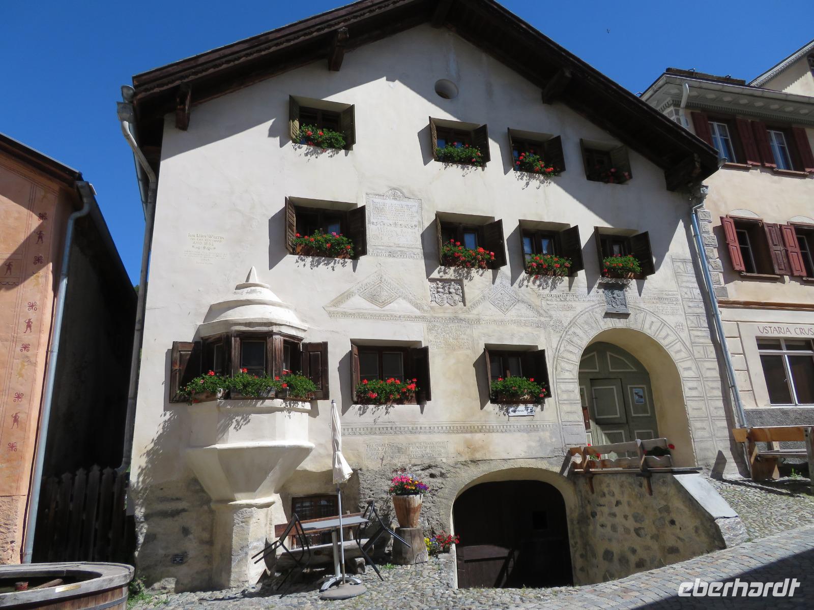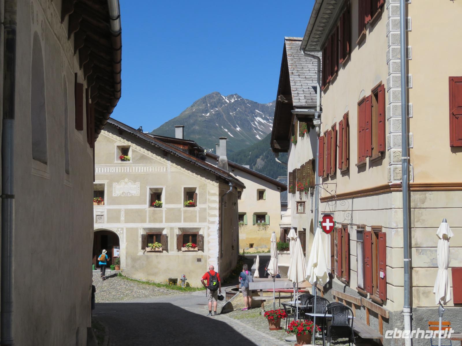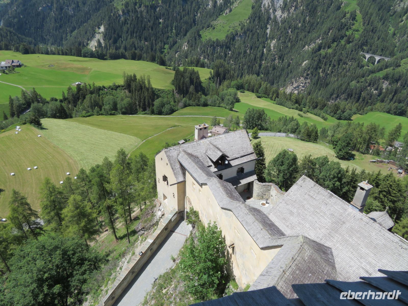 Heute geht es in Richtung Guarda. Auf dem Weg dahin überqueren wir den Flüelapass und machen einen kleinen Fotostopp. Uns bietet sich ein unglaubliches Bergpanorama, welches man mit dem Fotoapparat gar nicht ganz einfangen kann. Im Anschluss setzen wir unsere Fahrt nach Guarda fort. Mit seinen charmanten Engadiner Steinhäusern, den Sgrafitto-Malereien und nicht zu Letzt der wunderbaren Aussicht auf die Bergwelt der Schweiz ist Guarda in jedem Fall einen Besuch wert! Nach unserer Ankunft spazieren wir direkt ins Zentrum des Dorfes und lernen etwas über die Entstehung und die Geschichte Guardas. Im Anschluss kann jeder noch einmal individuell durch die kleinen Gassen wandeln. Danach geht es weiter zum Schloss Tarasp, einer Burganlage aus dem 11. Jahrhundert. Das Schloss liegt auf einem Felsen. Wir gehen zu Fuß ca. 20 Minuten hinauf auf den Schlossberg. Schon auf dem Weg nach oben, bieten sich uns traumhafte Aussichten bei klarem und sonnigem Wetter. Auf der Burg angekommen, erwartet uns die Verwalterin. Sie führt uns exklusiv durch die Gemäuer des Schlosses. Dabei können wir uns die wunderbare Architektur des Schlosses genauer anschauen und viel über dessen Geschichte lernen. Dem Dresdner Dr. Karl August Lingner verdanken wir es, dass das Schloss im Laufe der Geschichte nicht verfallen ist. Mit seinen großzügigen Spenden verhalf er dem Schloss zu neuem Glanz. Nach der wirklich sehr interessanten einstündigen Führung kehren wir zum Bus zurück und fahren wieder Richtung Davos. Auf der Schatzalp erwartet uns am Abend noch eine Führung durch das Hotel. Früher war die Schatzalp ein sehr bekanntes und fortschrittliches Sanatorium zur Heilung von Lungenkrankheiten. Thomas Mann besuchte hier oft seine Frau, die als Kurpatientin mehrfach in Davos weilte. In seinem berühmten Roman "Der Zauberberg" beschreibt Thomas Mann das Leben der Patienten im Sanatorium. Während der Führung können wir ein bisschen in die längst vergangene Zeit eintauchen und sehen noch einige gut erhaltenen Dinge, wie zum Beispiel den ehemaligen Röntgenraum oder die für damalige Zeiten sehr moderne Telefonzentrale. Nach dem Abendessen lassen wir den Tag bei einem atemberaubenden Blick auf dem Balkon ausklingen.