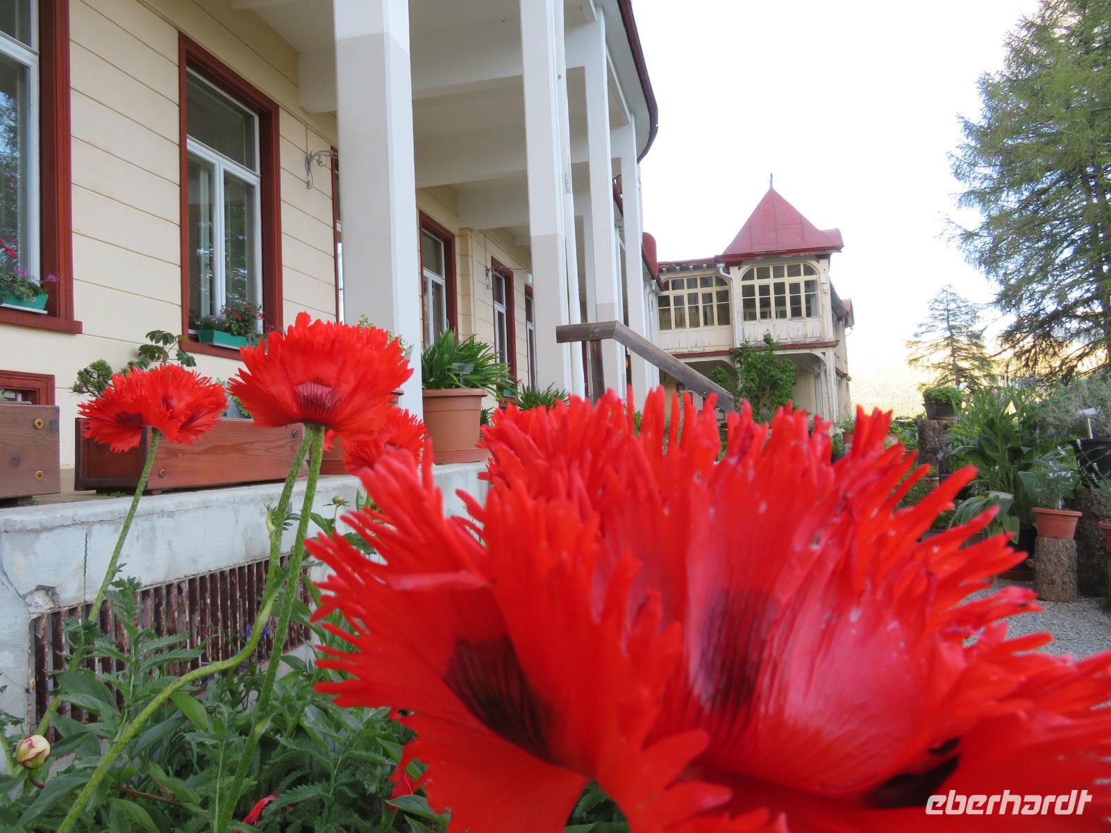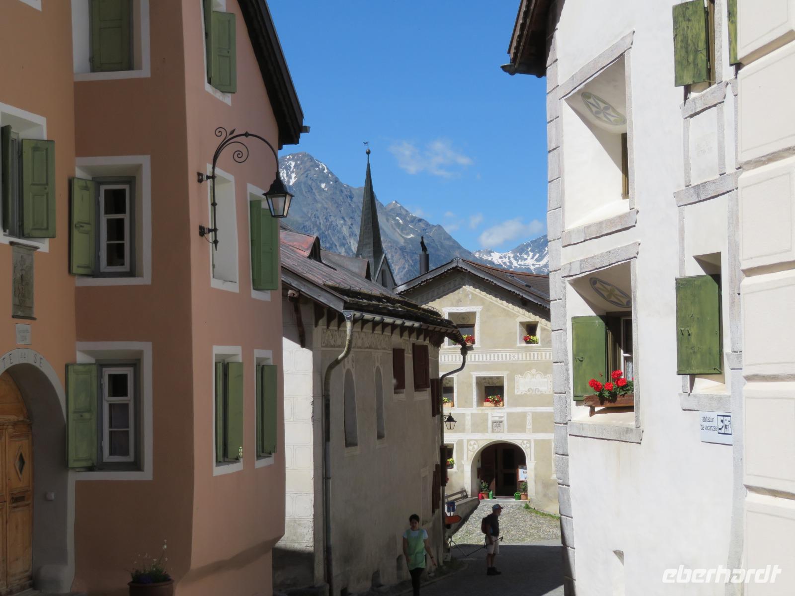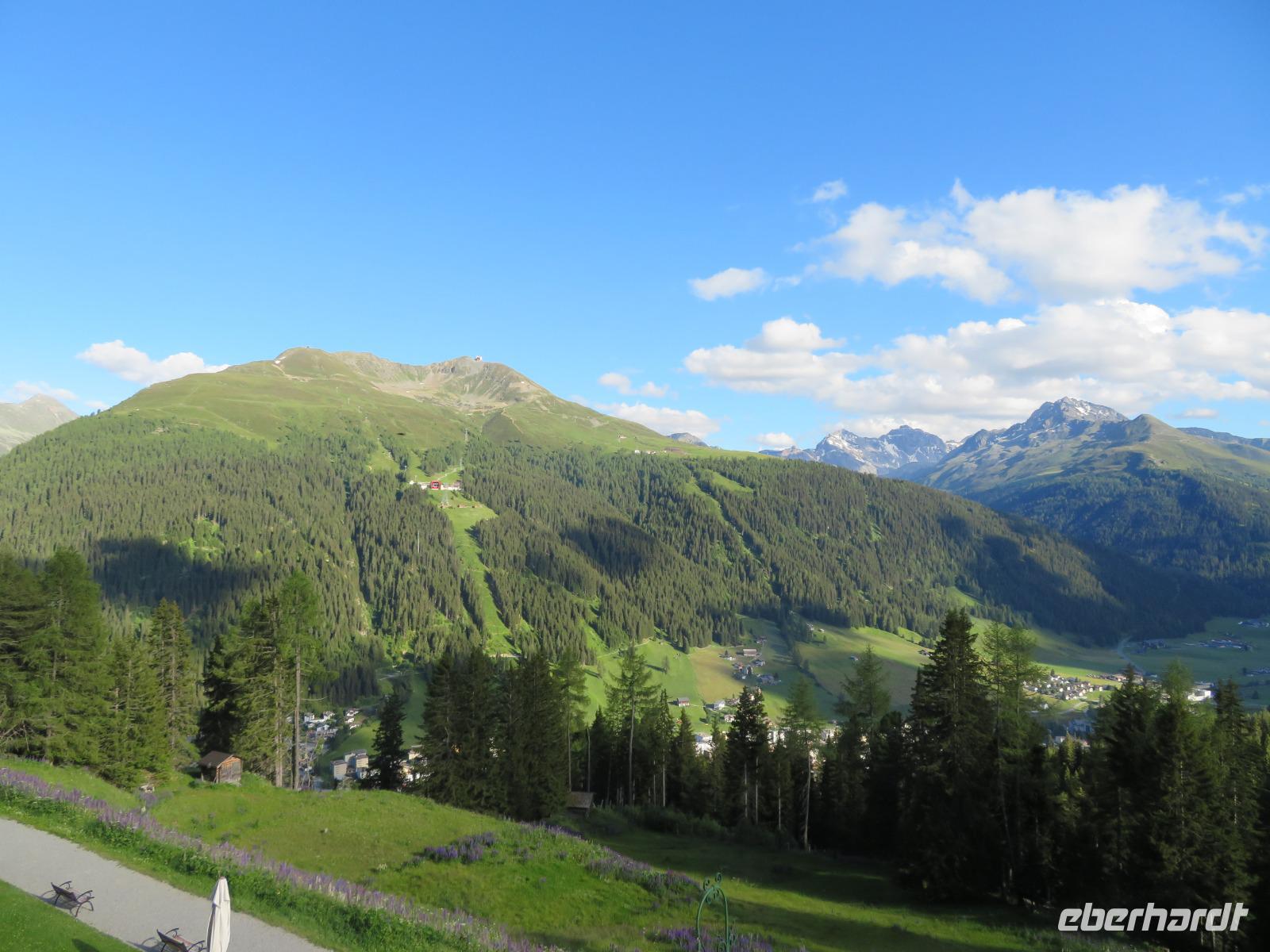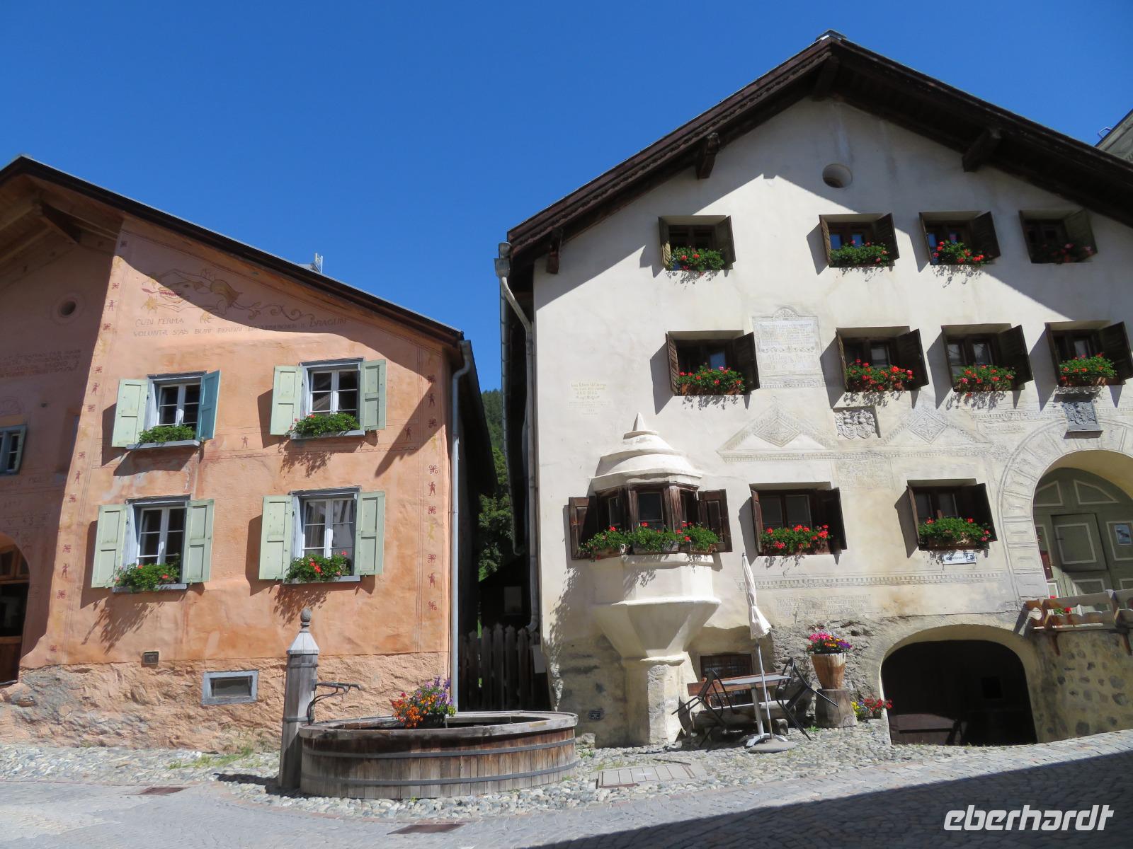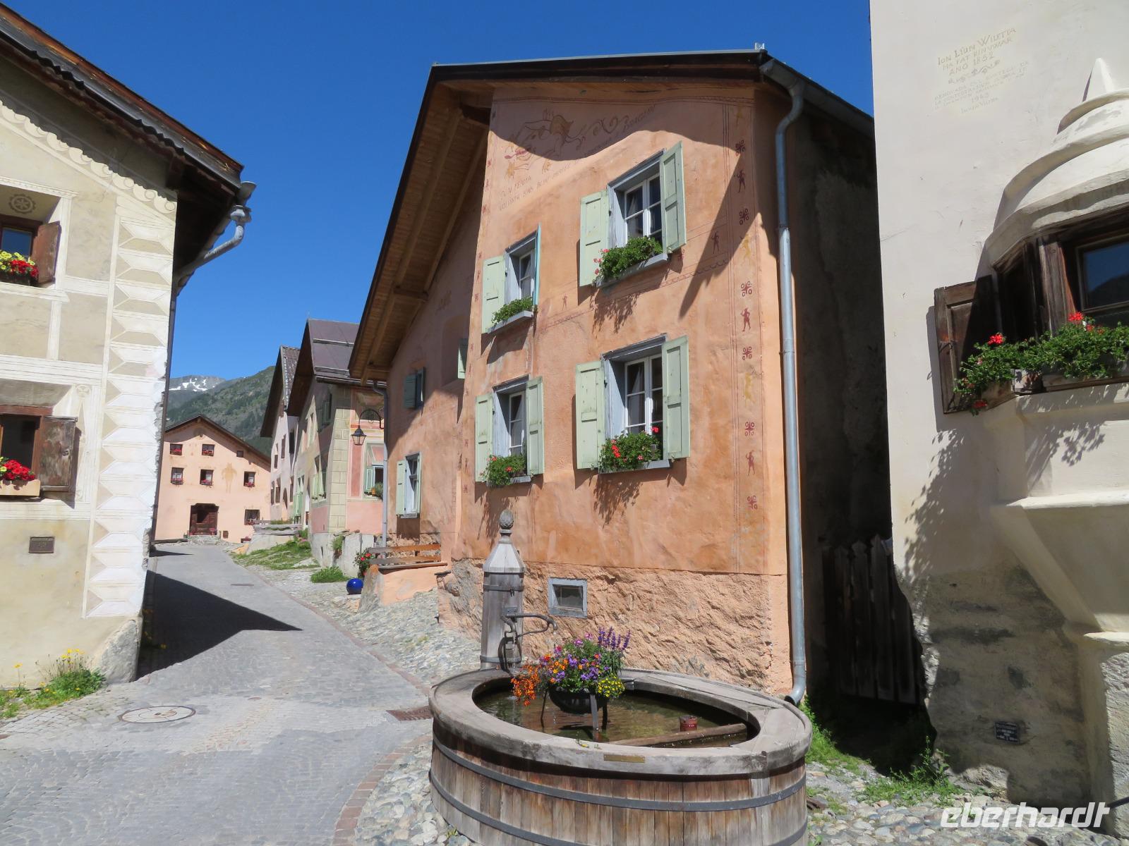 Heute geht es in Richtung Guarda. Auf dem Weg dahin überqueren wir den Flüelapass und machen einen kleinen Fotostopp. Uns bietet sich ein unglaubliches Bergpanorama, welches man mit dem Fotoapparat gar nicht ganz einfangen kann. Im Anschluss setzen wir unsere Fahrt nach Guarda fort. Mit seinen charmanten Engadiner Steinhäusern, den Sgrafitto-Malereien und nicht zu Letzt der wunderbaren Aussicht auf die Bergwelt der Schweiz ist Guarda in jedem Fall einen Besuch wert! Nach unserer Ankunft spazieren wir direkt ins Zentrum des Dorfes und lernen etwas über die Entstehung und die Geschichte Guardas. Im Anschluss kann jeder noch einmal individuell durch die kleinen Gassen wandeln. Danach geht es weiter zum Schloss Tarasp, einer Burganlage aus dem 11. Jahrhundert. Das Schloss liegt auf einem Felsen. Wir gehen zu Fuß ca. 20 Minuten hinauf auf den Schlossberg. Schon auf dem Weg nach oben, bieten sich uns traumhafte Aussichten bei klarem und sonnigem Wetter. Auf der Burg angekommen, erwartet uns die Verwalterin. Sie führt uns exklusiv durch die Gemäuer des Schlosses. Dabei können wir uns die wunderbare Architektur des Schlosses genauer anschauen und viel über dessen Geschichte lernen. Dem Dresdner Dr. Karl August Lingner verdanken wir es, dass das Schloss im Laufe der Geschichte nicht verfallen ist. Mit seinen großzügigen Spenden verhalf er dem Schloss zu neuem Glanz. Nach der wirklich sehr interessanten einstündigen Führung kehren wir zum Bus zurück und fahren wieder Richtung Davos. Auf der Schatzalp erwartet uns am Abend noch eine Führung durch das Hotel. Früher war die Schatzalp ein sehr bekanntes und fortschrittliches Sanatorium zur Heilung von Lungenkrankheiten. Thomas Mann besuchte hier oft seine Frau, die als Kurpatientin mehrfach in Davos weilte. In seinem berühmten Roman "Der Zauberberg" beschreibt Thomas Mann das Leben der Patienten im Sanatorium. Während der Führung können wir ein bisschen in die längst vergangene Zeit eintauchen und sehen noch einige gut erhaltenen Dinge, wie zum Beispiel den ehemaligen Röntgenraum oder die für damalige Zeiten sehr moderne Telefonzentrale. Nach dem Abendessen lassen wir den Tag bei einem atemberaubenden Blick auf dem Balkon ausklingen.