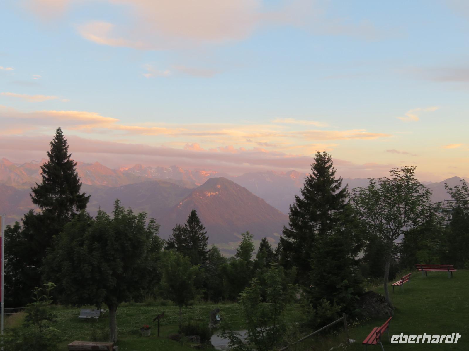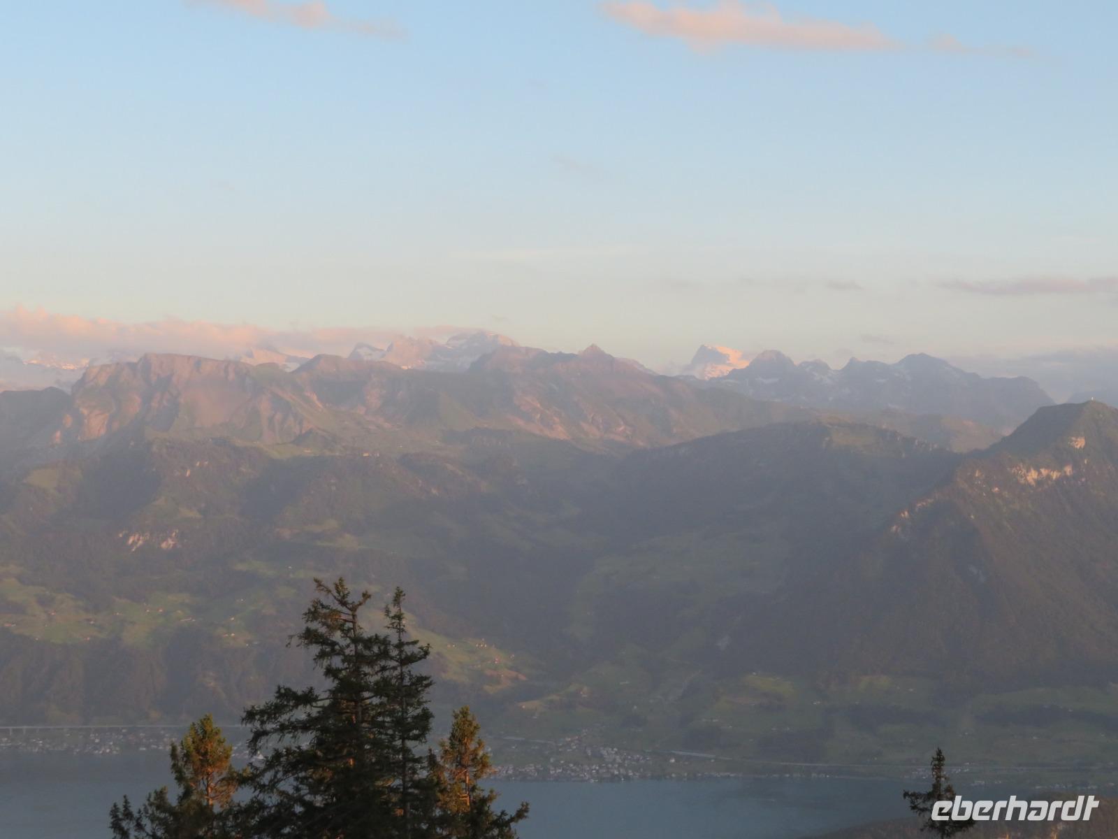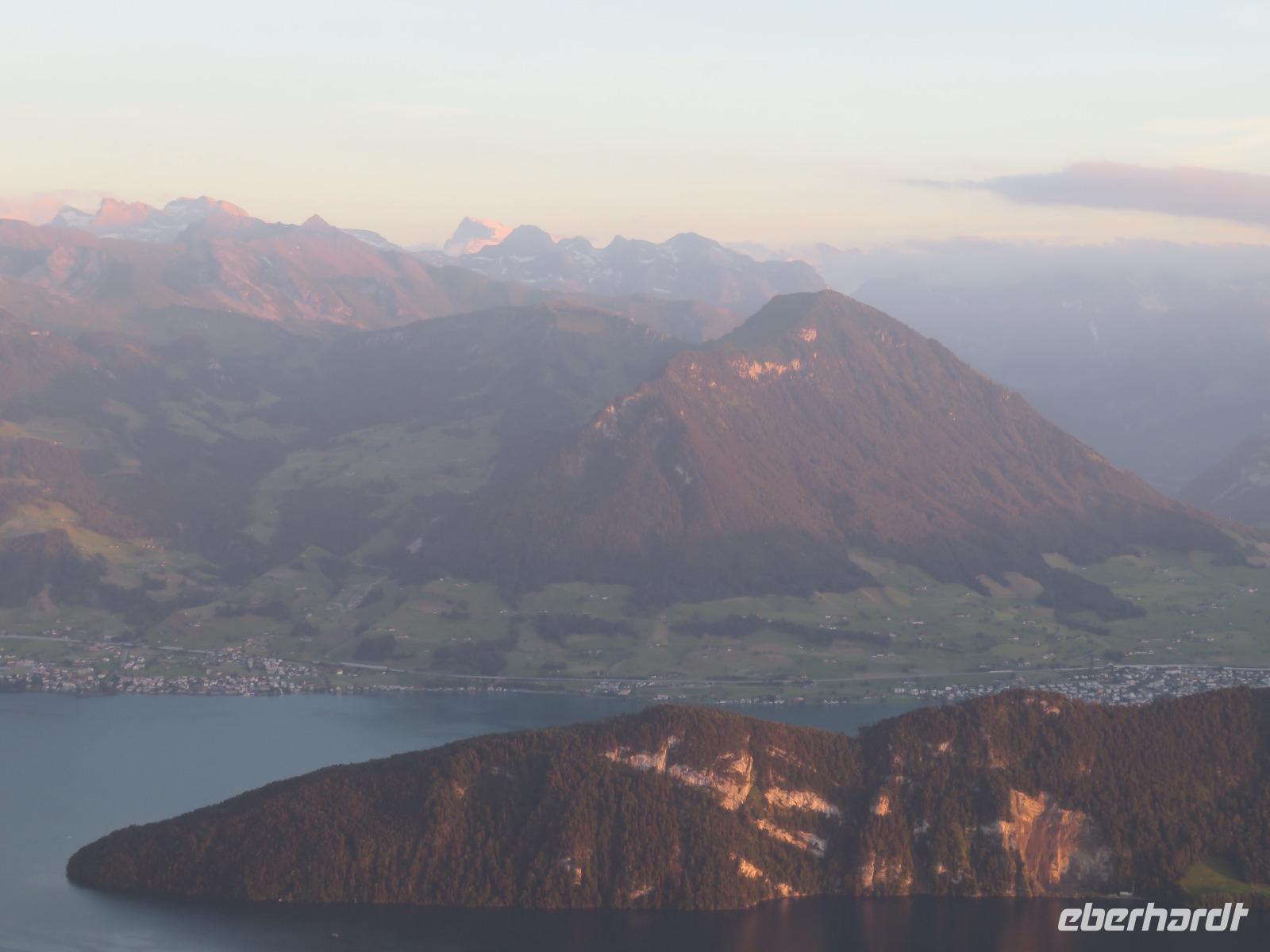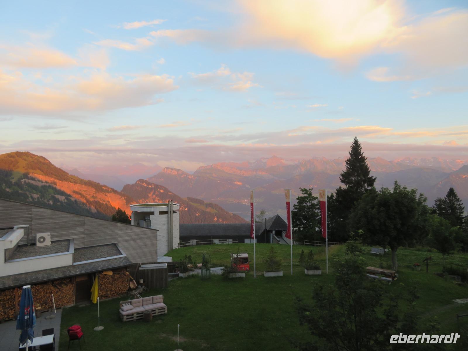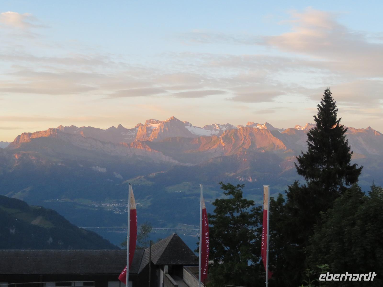 Heute heißt es Koffer packen und Abschied nehmen von der Schatzalp. Nach dem Frühstück steigen wir in den Bus und setzen unsere Reise nach Rigi Kaltbad fort. Auf dem Weg dahin machen wir einen Stopp in der Stadt Chur. Dort unternehmen wir einen kleinen Spaziergang und besuchen unter anderem die Kathedrale St. Mariä Himmelfahrt. Danach erkundet jeder noch einmal individuell die wunderbare und charmante Altstadt, bevor wir unsere Fahrt fortsetzen. Auf der Axenstraße, welche entlang des Ufers des Vierwaldstättersee´s verläuft, bieten sich uns wunderbare Aussichten auf den Pilatus, dessen höchste Erhebung auf 2.132 Metern liegt. Das Wasser spiegelt in blauen und türkiesen Farben und macht die Fahrt nach Vitznau zusätzlich zu einem Erlebnis. Nach der Ankunft in Vitznau besteigen wir die älteste Zahnradbahn Europas, welche uns zu unserem Hotel in Rigi Kaltbad bringt. Auch dort zeigt sich uns noch einmal ein wunderbarer Blick auf den Vierwaldstättersee. Beim Abendessen gibt uns der Kellner dann den Tipp, zum Sonnenuntergang zum Aussichtspunkt Chänzeli, welcher 15 Minuten vom Hotel entfernt liegt zu gehen. Dieser Tipp ist Gold wert! Wir bestaunen einen atemberaubenden Sonnenuntergang mit einem Bergpanorama wie es im Buche steht. Diesen Anblick kann keine Kamera einfangen. Es ist ein perfekter Tagesabschluss.