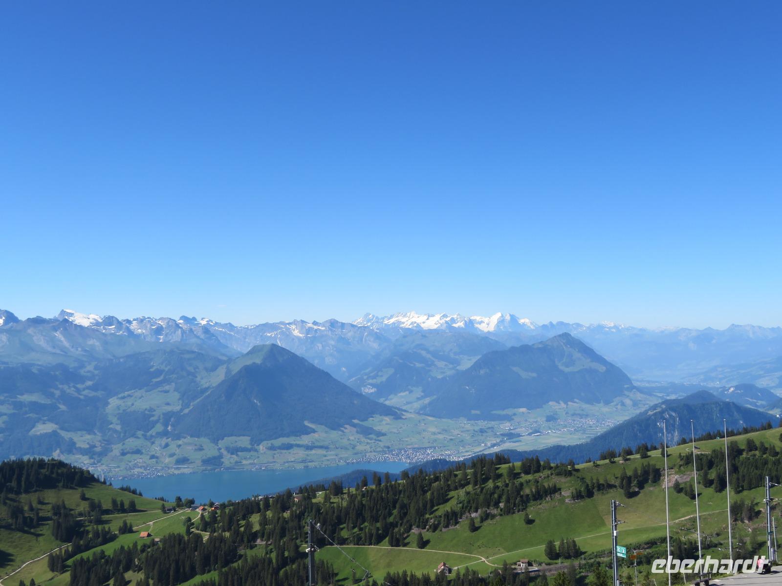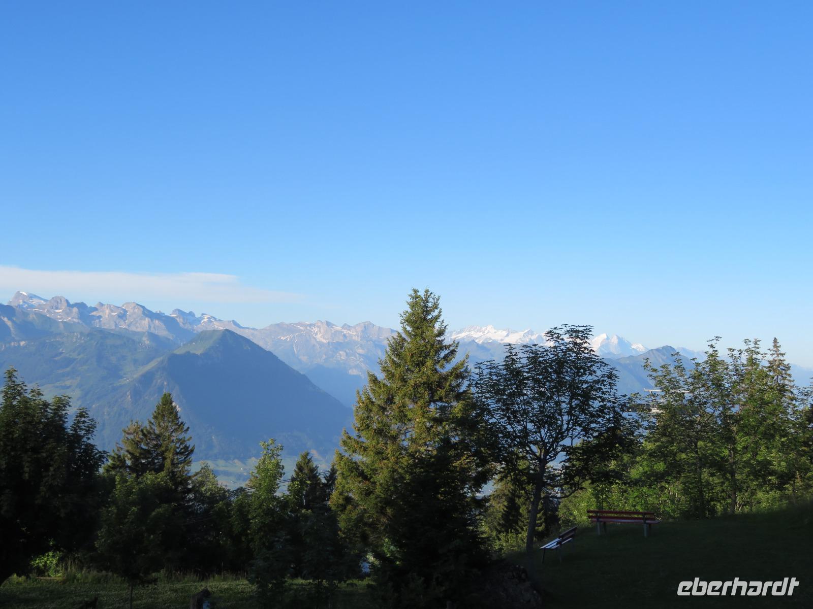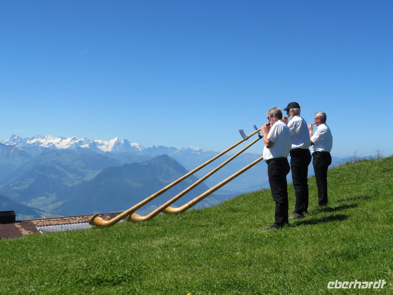 Heute haben wir wieder einmal wunderbares Wetter! Perfekt für einen Ausflug auf den Gipfel der Rigi. Mit der Zahnradbahn geht es nach dem Frühstück auf 1.797 Meter Höhe. Dort haben wir Zeit, das wunderbare Panorama zu genießen. In der einen Richtung schauen wir auf das Panorama der Berner Alpen mit Eiger, Mönch und Jungfrau und weiter über die Zentralschweizer Berge mit dem Titlis bis in die Ostschweizer Berge mit dem Säntis. Auf der anderen Seite liegt uns das das Flachland mit insgesamt 13 Seen, wie dem Vierwaldstättersee, dem Zugersee und dem Sursee zu Füßen. Nach einem ausgiebigen Aufentahlt wandern wir zurück zum Hotel. Die kleine Wanderung führt uns entlang des Blumenweges. Links und rechts kann man die Blumenvielfalt der Schweizer Berge kennenlernen und die wunderbaren Farben der Blüten bestaunen. Den Nachmittag nutzen wir entweder noch einmal für einen kleinen Spaziergang oder wir gönnen uns einen entspannten Nachmittag im Mineralbad des Hotels. Zum Abendessen wartet mit Käsefondue eine ganz besondere Spezialität der Schweiz auf uns. Es hat allen gut geschmeckt. Satt und zufrieden geht es dann ins Bett.