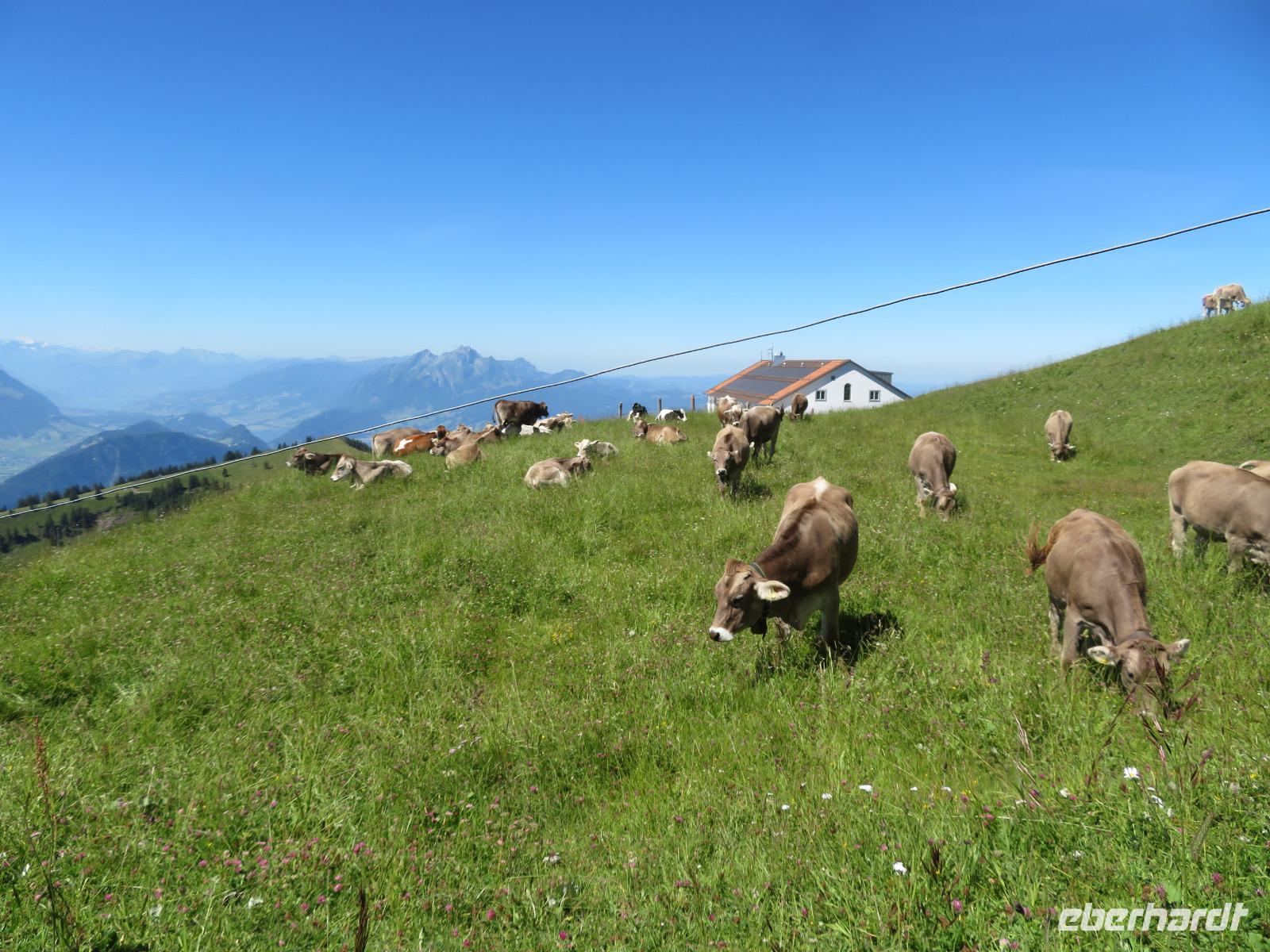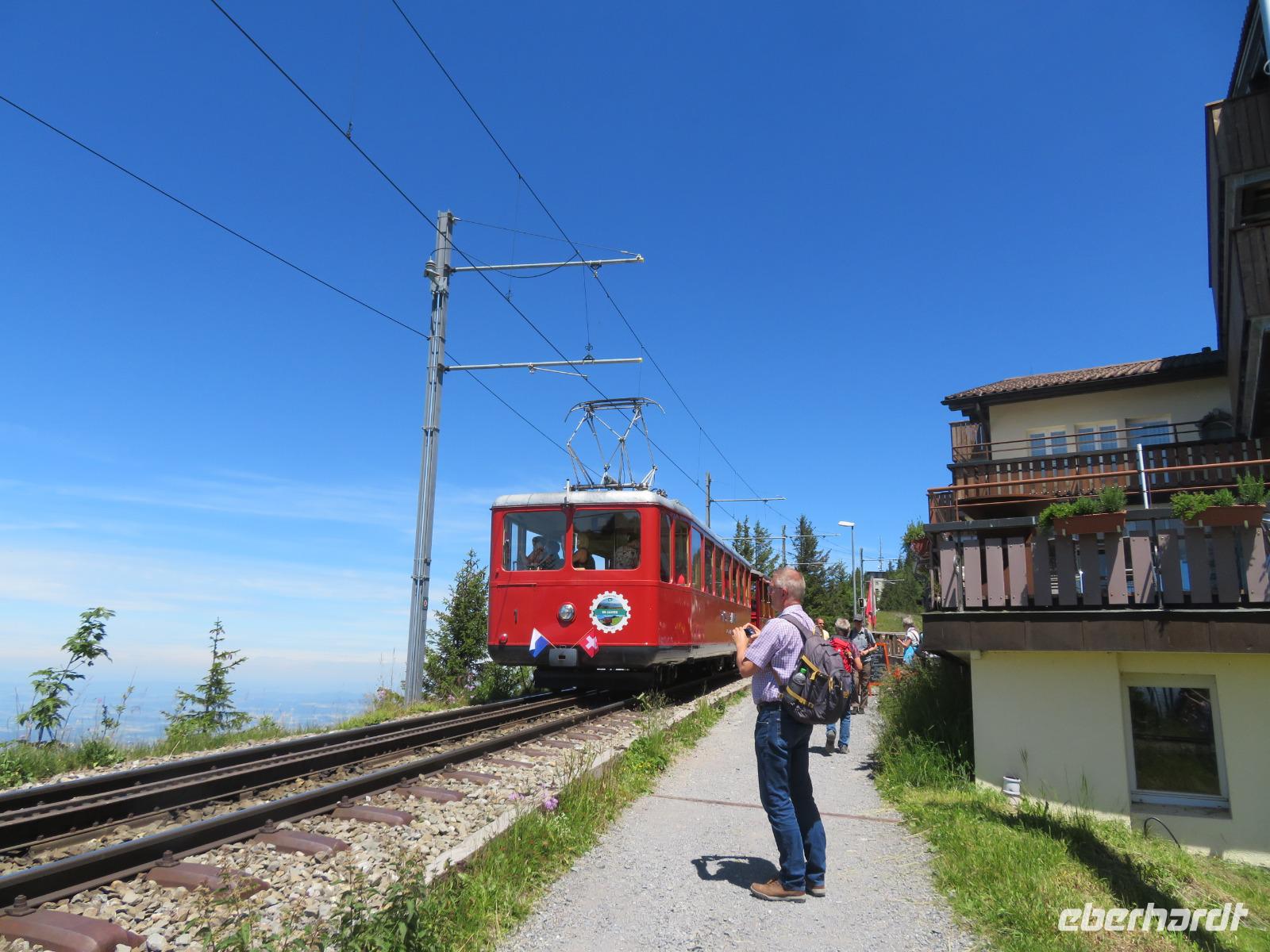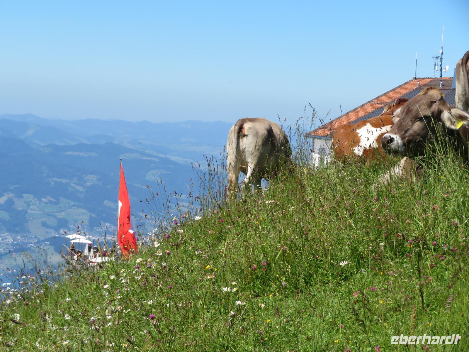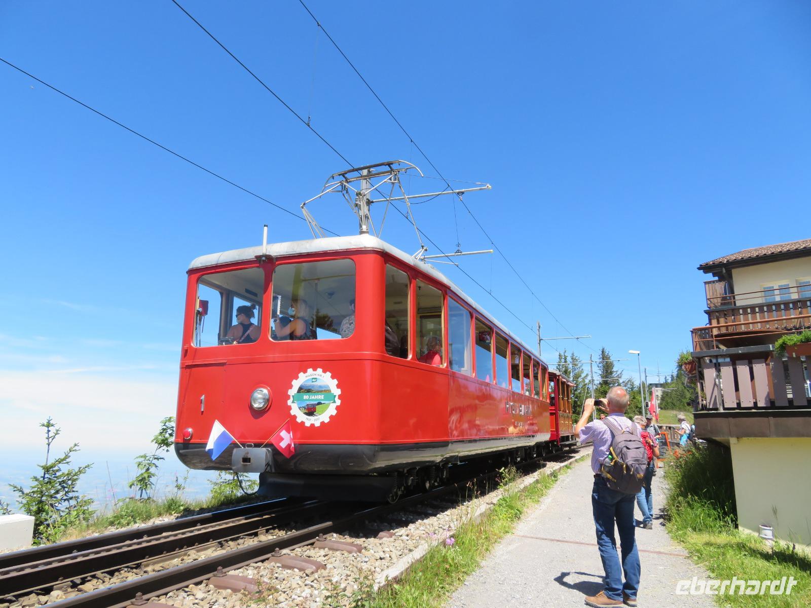 Heute haben wir wieder einmal wunderbares Wetter! Perfekt für einen Ausflug auf den Gipfel der Rigi. Mit der Zahnradbahn geht es nach dem Frühstück auf 1.797 Meter Höhe. Dort haben wir Zeit, das wunderbare Panorama zu genießen. In der einen Richtung schauen wir auf das Panorama der Berner Alpen mit Eiger, Mönch und Jungfrau und weiter über die Zentralschweizer Berge mit dem Titlis bis in die Ostschweizer Berge mit dem Säntis. Auf der anderen Seite liegt uns das das Flachland mit insgesamt 13 Seen, wie dem Vierwaldstättersee, dem Zugersee und dem Sursee zu Füßen. Nach einem ausgiebigen Aufentahlt wandern wir zurück zum Hotel. Die kleine Wanderung führt uns entlang des Blumenweges. Links und rechts kann man die Blumenvielfalt der Schweizer Berge kennenlernen und die wunderbaren Farben der Blüten bestaunen. Den Nachmittag nutzen wir entweder noch einmal für einen kleinen Spaziergang oder wir gönnen uns einen entspannten Nachmittag im Mineralbad des Hotels. Zum Abendessen wartet mit Käsefondue eine ganz besondere Spezialität der Schweiz auf uns. Es hat allen gut geschmeckt. Satt und zufrieden geht es dann ins Bett.