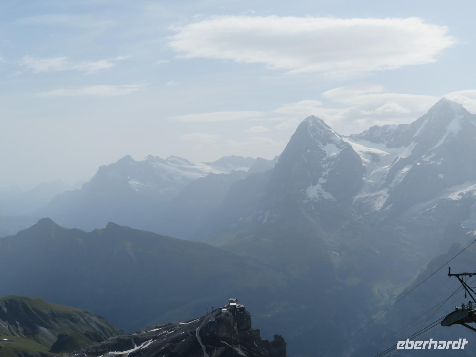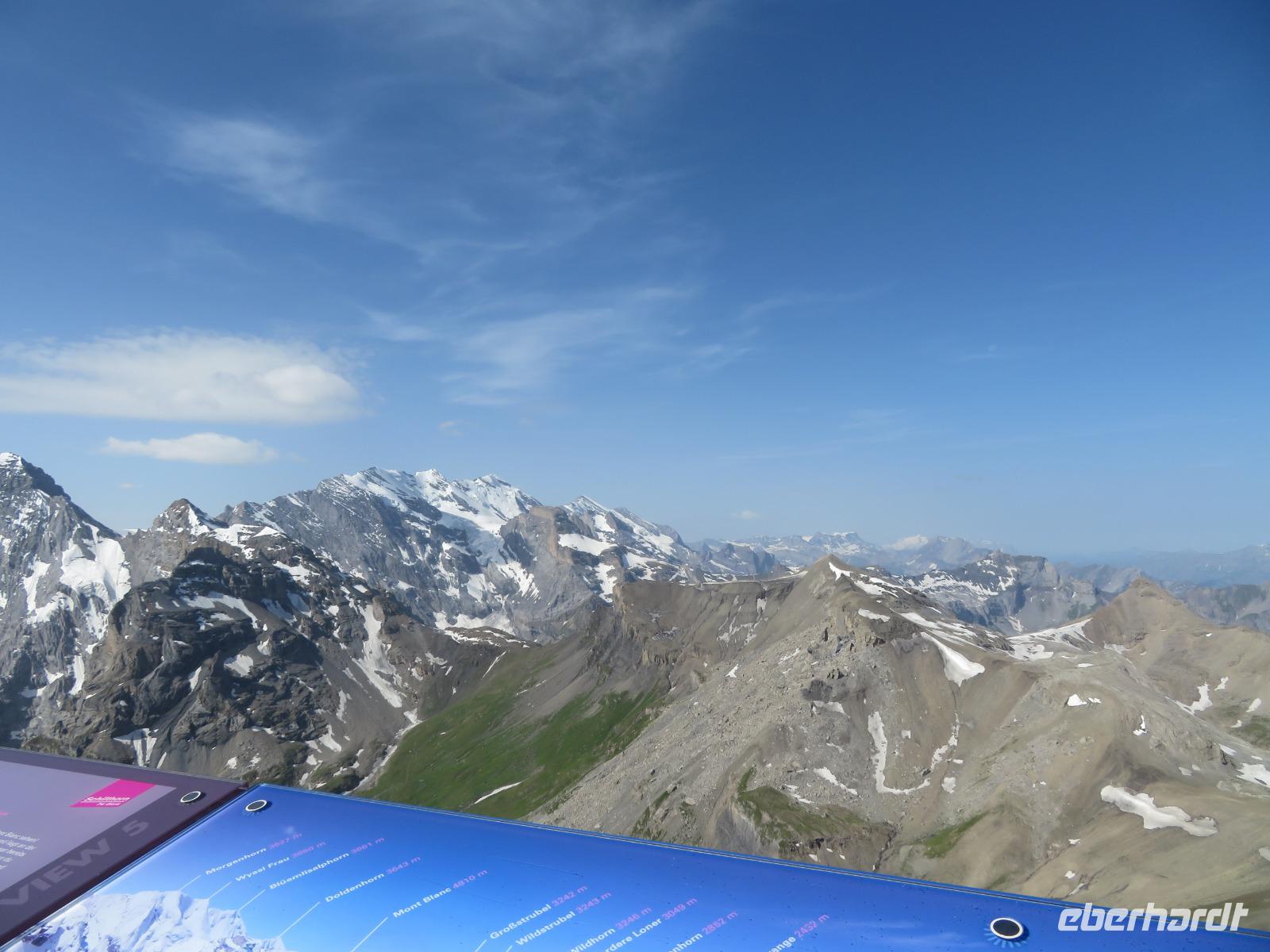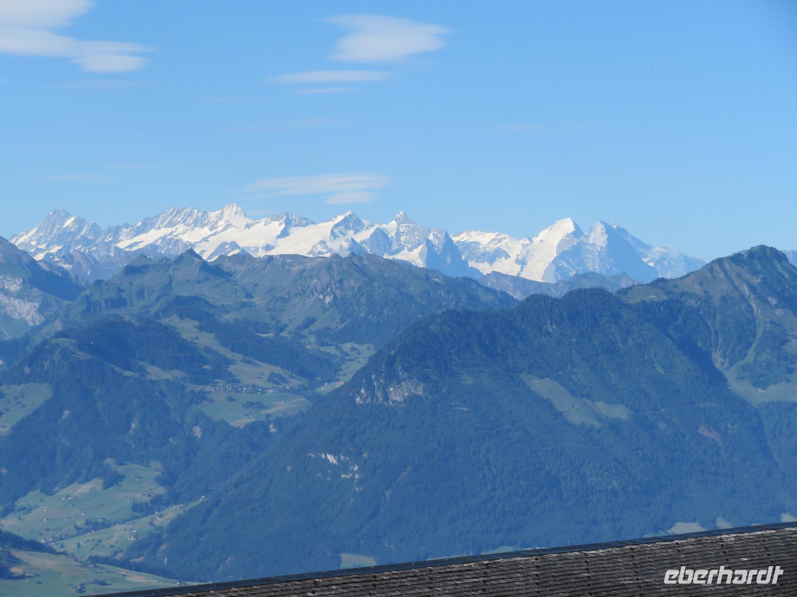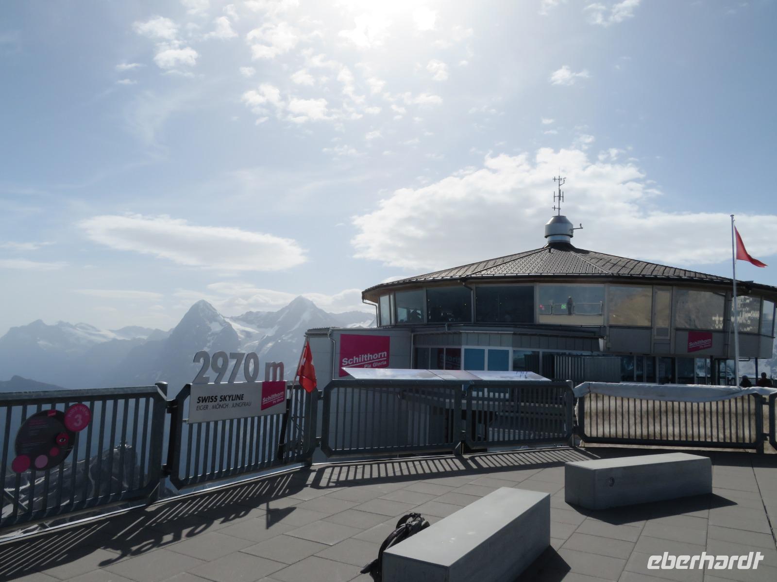 Ein Tag in geheimer Mission erwartet uns. Heute geht es auf das 2.970 Meter hohe Schilthorn, wo vor über 50 Jahren der bekannte James Bond Film „On Her Majesty´s Secret Service" gedreht wurde. Gefrühstückt wird heute auch nicht im Hotel, sondern in dem 360 Grad Panorama Restaurant auf dem Schilthorn. Ein vorzügliches Essen mit einer atemberaubenden Aussicht auf Eiger, Mönch, Jungfrau und sogar auf den Mont Blanc. Wie kann man besser in den Tag starten? Nach dem Frühstück erkunden wir natürlich die „Bond World" und den „007 Walk of Fame". Wir konnten viele interessante Dinge über den Dreh und die Geschichte des Films lernen. Im Kino kann man sich sogar Teile des Filmes anschauen. Bond Aktion, wie sie im Buche steht. Auf den Aussichtspunkten haben wir die Möglichkeit großartige Blicke auf die umliegende Bergwelt der Berner Alpen und das Mittelland zu erhaschen. Wer nach dem Besuch der Bond World Lust auf Aktion und Adrenalin bekommen hat, kann den Thrill Walk gehen. Eine Brücke direkt an der Felswand und unter den Füßen 100 Meter bis zum Boden. Nichts für schwache Nerven. Im Anschluss fahren wir mit der Bahn wieder nach Mürren, wo wir uns eine Stunde von Ausruhen konnten. Danach geht es auf den Allmendhubel auf 1.907 Meter. Hier genießen wir noch einmal die herrliche Aussicht auf die Bergwelt und gehen über den Flower Trail - den Blumenweg. Dieser Weg bietet uns über 150 verschiedene Bergblumenarten. Im Anschluss geht es wieder zurück zum Hotel und wir genießen gemeinsam unser hervorragendes Abendessen. Am Abend bietet sich uns noch ein einmaliges Naturschauspiel. Nach einen starken Regenguß erblicken wir zwei riesige Regenbögen vor der von der Sonne beleuchteten Felswand.