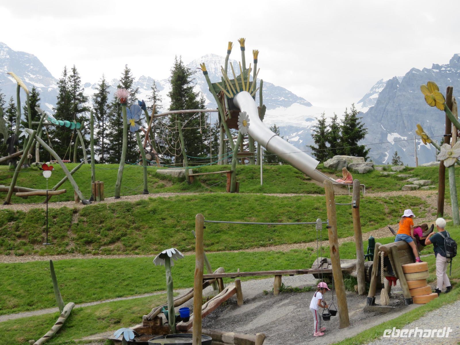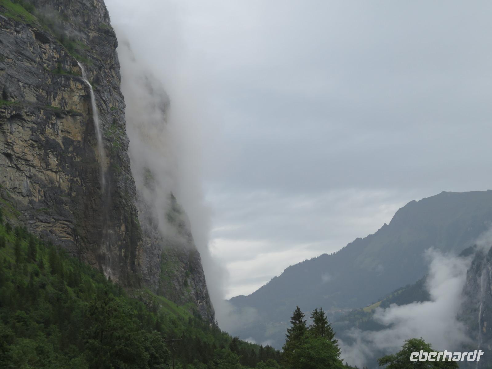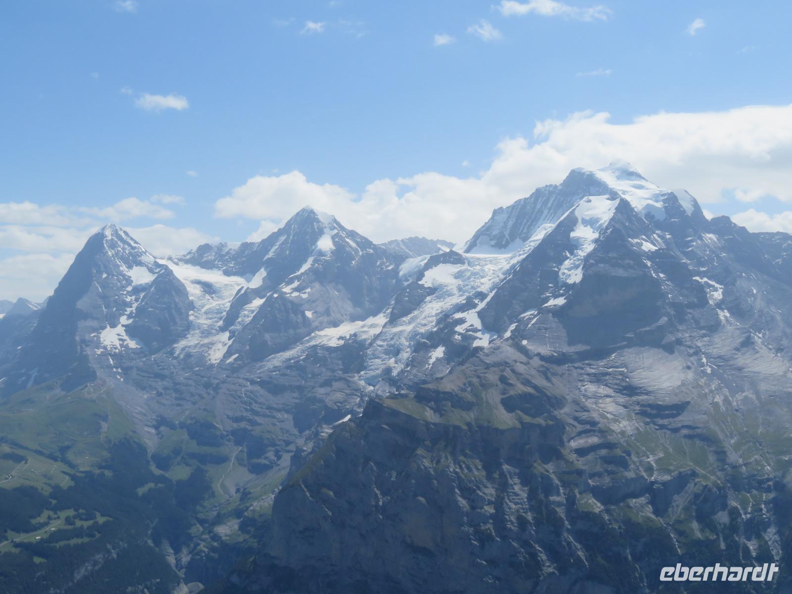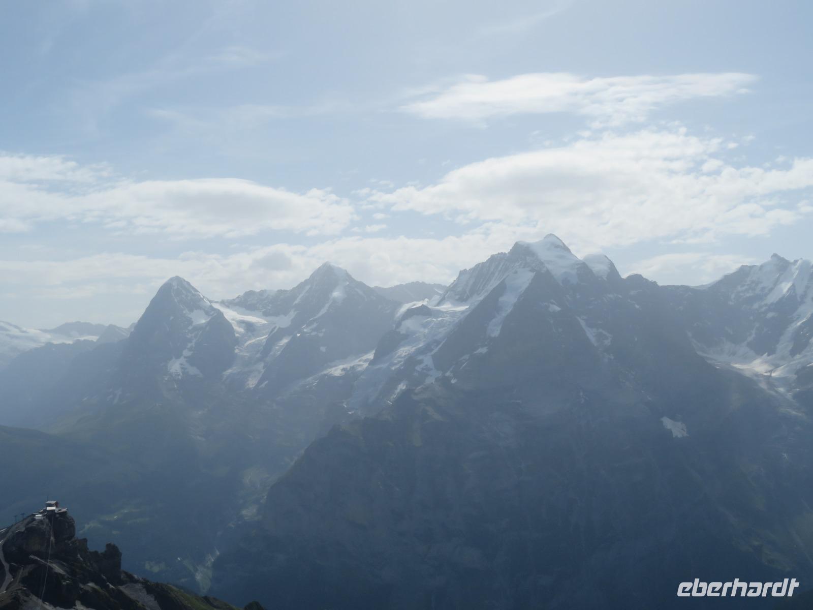 Ein Tag in geheimer Mission erwartet uns. Heute geht es auf das 2.970 Meter hohe Schilthorn, wo vor über 50 Jahren der bekannte James Bond Film „On Her Majesty´s Secret Service" gedreht wurde. Gefrühstückt wird heute auch nicht im Hotel, sondern in dem 360 Grad Panorama Restaurant auf dem Schilthorn. Ein vorzügliches Essen mit einer atemberaubenden Aussicht auf Eiger, Mönch, Jungfrau und sogar auf den Mont Blanc. Wie kann man besser in den Tag starten? Nach dem Frühstück erkunden wir natürlich die „Bond World" und den „007 Walk of Fame". Wir konnten viele interessante Dinge über den Dreh und die Geschichte des Films lernen. Im Kino kann man sich sogar Teile des Filmes anschauen. Bond Aktion, wie sie im Buche steht. Auf den Aussichtspunkten haben wir die Möglichkeit großartige Blicke auf die umliegende Bergwelt der Berner Alpen und das Mittelland zu erhaschen. Wer nach dem Besuch der Bond World Lust auf Aktion und Adrenalin bekommen hat, kann den Thrill Walk gehen. Eine Brücke direkt an der Felswand und unter den Füßen 100 Meter bis zum Boden. Nichts für schwache Nerven. Im Anschluss fahren wir mit der Bahn wieder nach Mürren, wo wir uns eine Stunde von Ausruhen konnten. Danach geht es auf den Allmendhubel auf 1.907 Meter. Hier genießen wir noch einmal die herrliche Aussicht auf die Bergwelt und gehen über den Flower Trail - den Blumenweg. Dieser Weg bietet uns über 150 verschiedene Bergblumenarten. Im Anschluss geht es wieder zurück zum Hotel und wir genießen gemeinsam unser hervorragendes Abendessen. Am Abend bietet sich uns noch ein einmaliges Naturschauspiel. Nach einen starken Regenguß erblicken wir zwei riesige Regenbögen vor der von der Sonne beleuchteten Felswand.