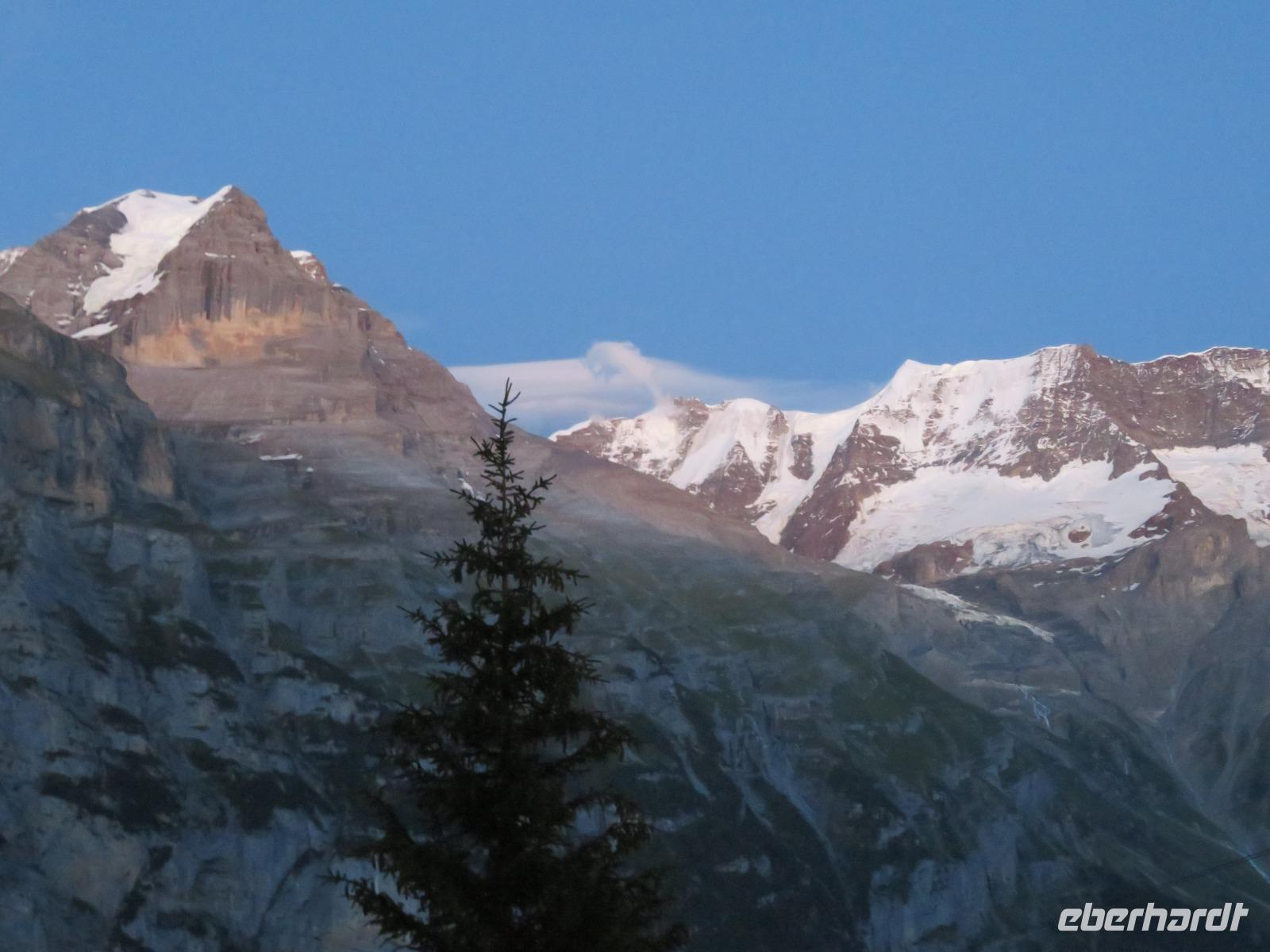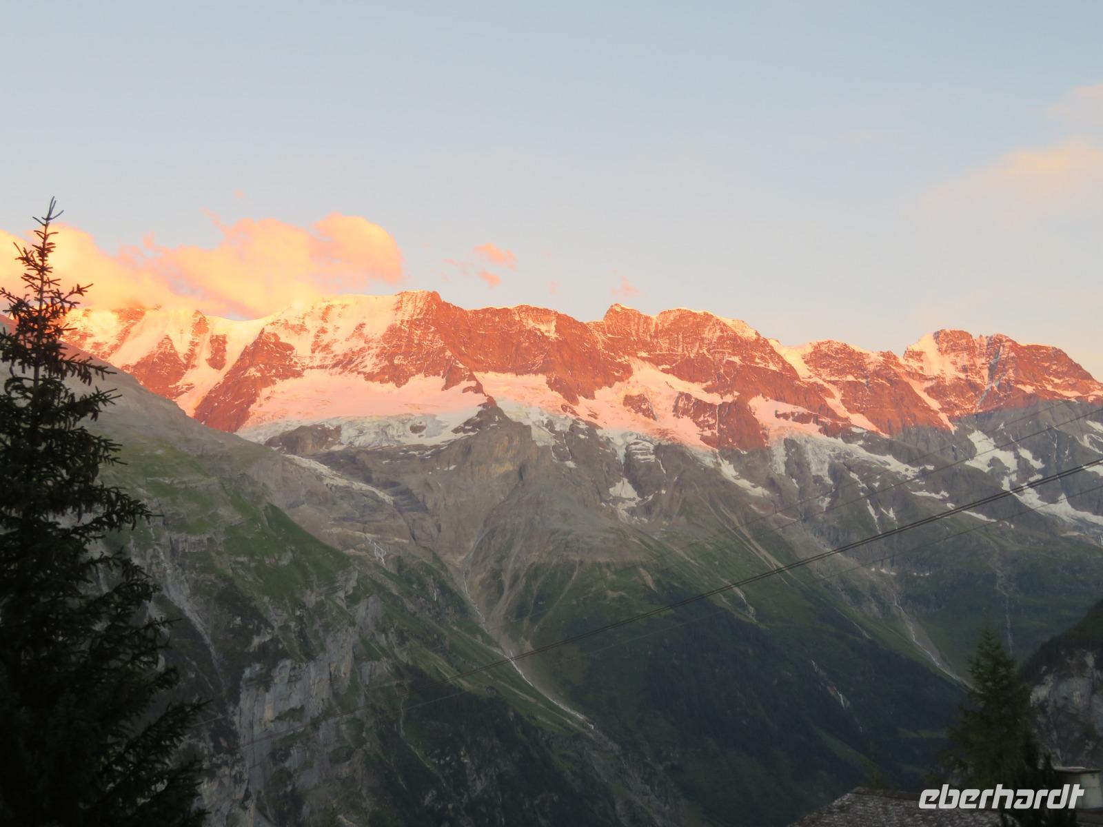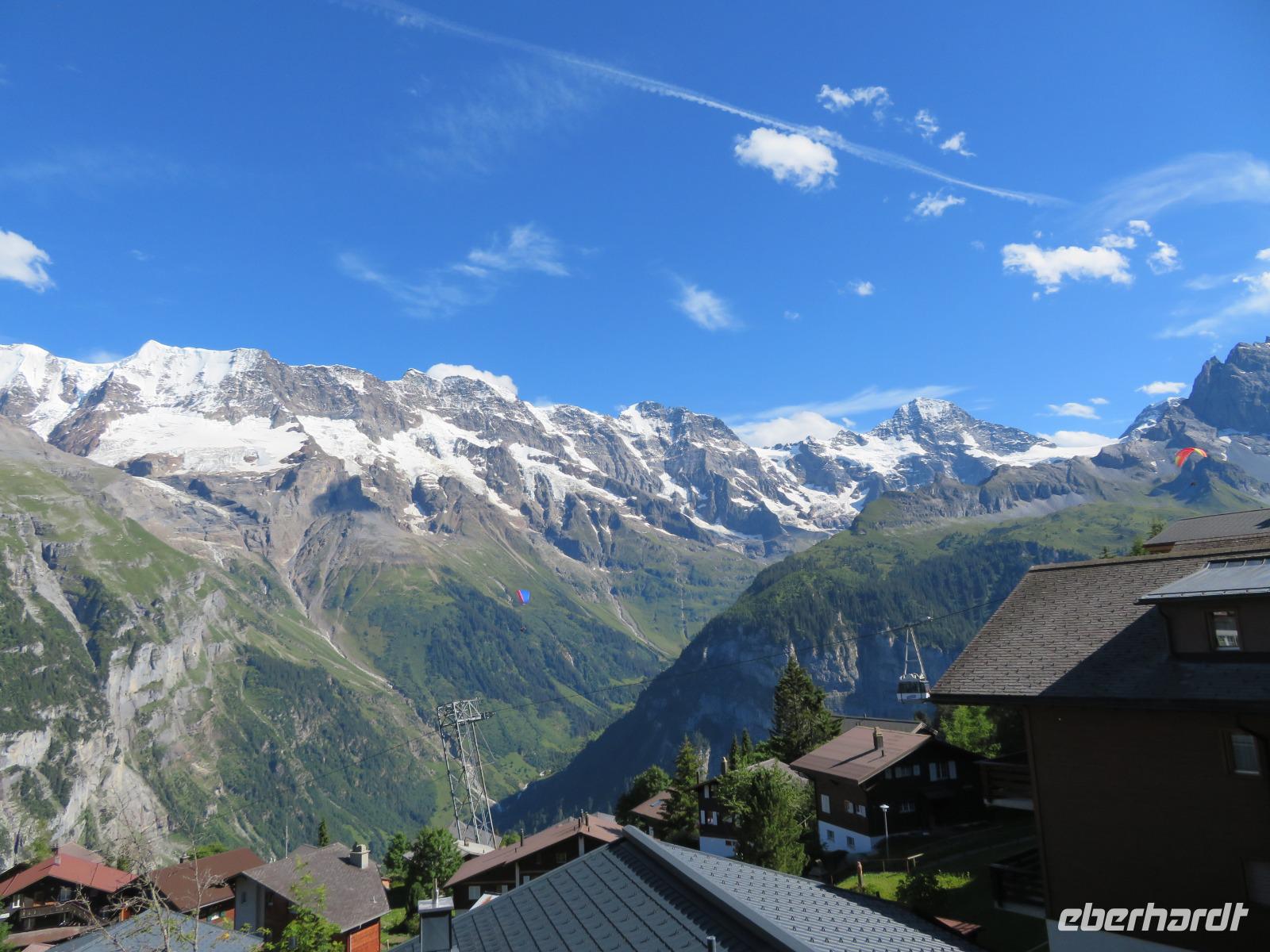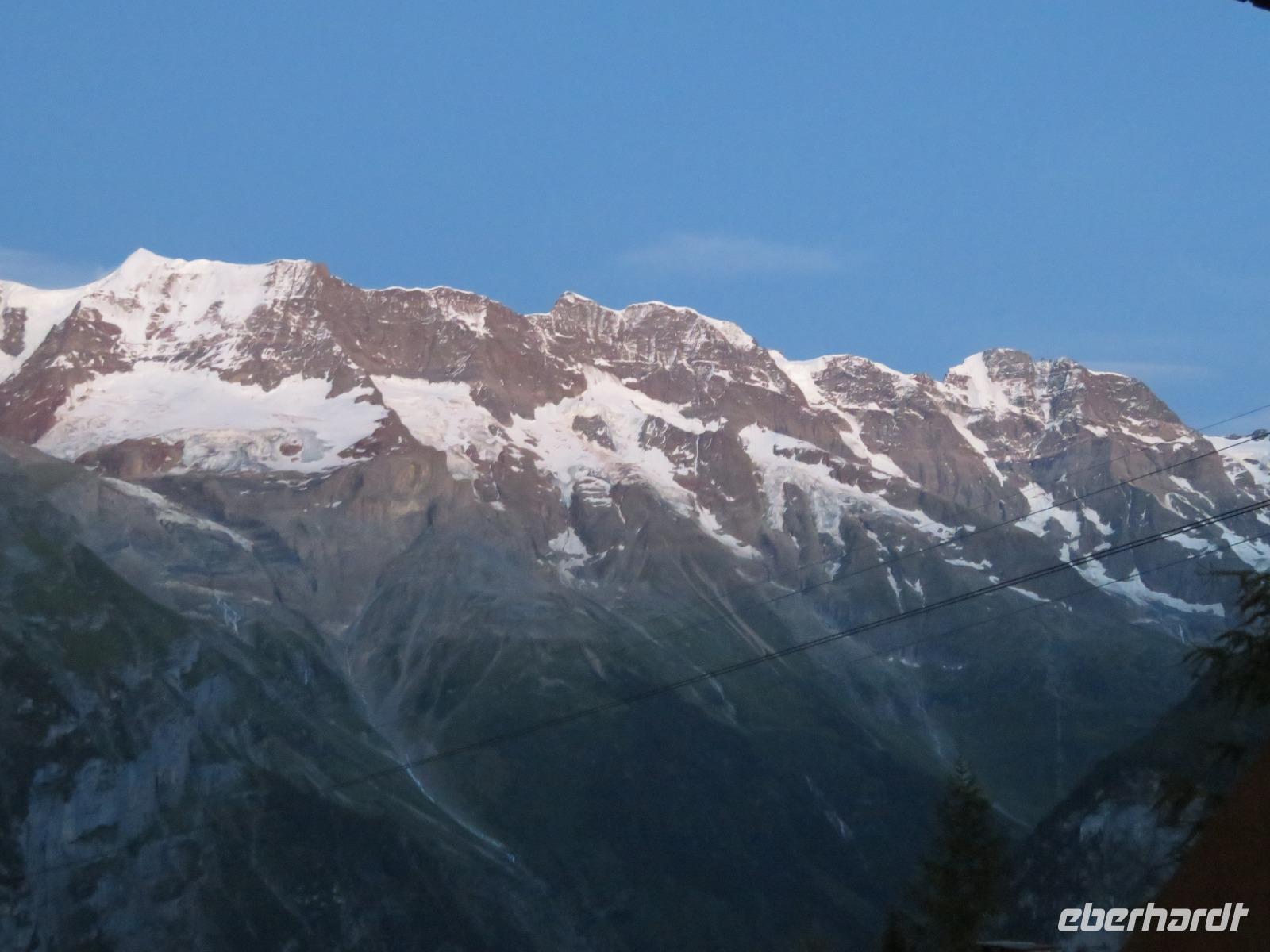 Es heißt wieder Abschied nehmen und auf in Richtung Luzern. Luzern liegt etwa 440 Meter über dem Meeresspiegel und hat eine Einwohnerzahl von 81.000 Menschen. In Luzern angekommen erwartet uns bereits unsere örtliche Stadtführerin Susy. Sie führt uns unter anderem zum Löwendenkmal, zur Jesuitenkirche und zur einzigartigen Kapellenbrücke. Diese weltbekannte Holzbrücke verläuft vom Luzerner Theater vorbei am Wasserturm bis zur St. Peterskapelle am Rathausquai. An einigen Stellen sieht man noch Schäden des Brandes, welcher am 18. August 1993 Großteile der Brücke zerstörte. Allerdings hat man durch Restauration der Brücke zu ihrer alten Schönheit verholfen. Die Führung ist sehr interessant und gibt uns einen tiefen Einblick in die Geschichte der Stadt. Im Anschluss an die Führung haben wir noch Zeit, um die Stadt noch einmal selbst zu erkunden oder bei strahlendem Sonnenschein in einem Café an der Reuss ein Stück Kuchen zu genießen. Danach setzen wir unsere Fahrt durch das Lauterbrunnental in Richtung Stechelberg fort. Dort besteigen wir die Seilbahn, welche uns zu unserem nächsten Hotel in dem Bergdorf Mürren bringt. Nachdem alle ihr Zimmer bezogen haben, treffen wir uns zum Abendessen. Am späten Abend haben wir vom Hotel aus einen wunderbaren Blick auf die steilen Felswände, welche durch die Abendsonne in einem atemberaubenden Rot erstrahlten.
