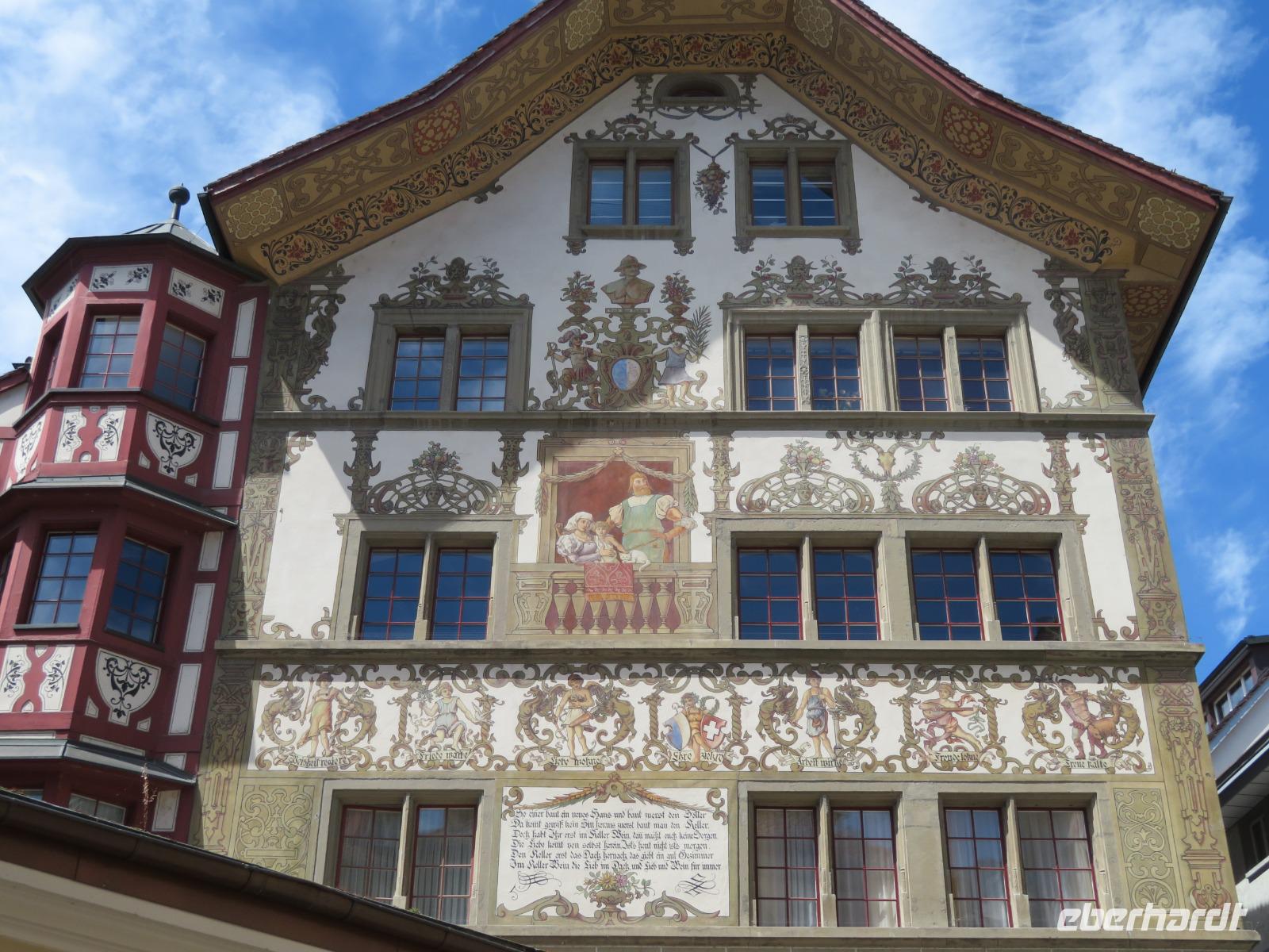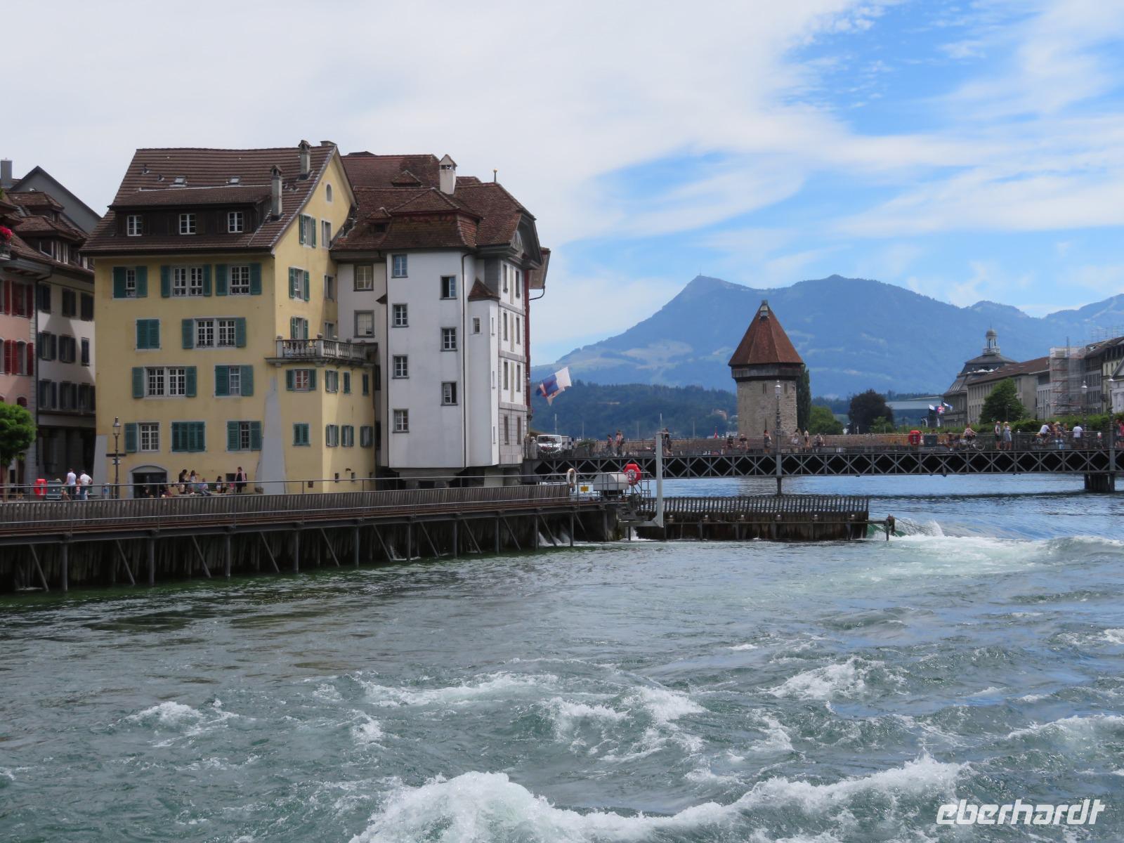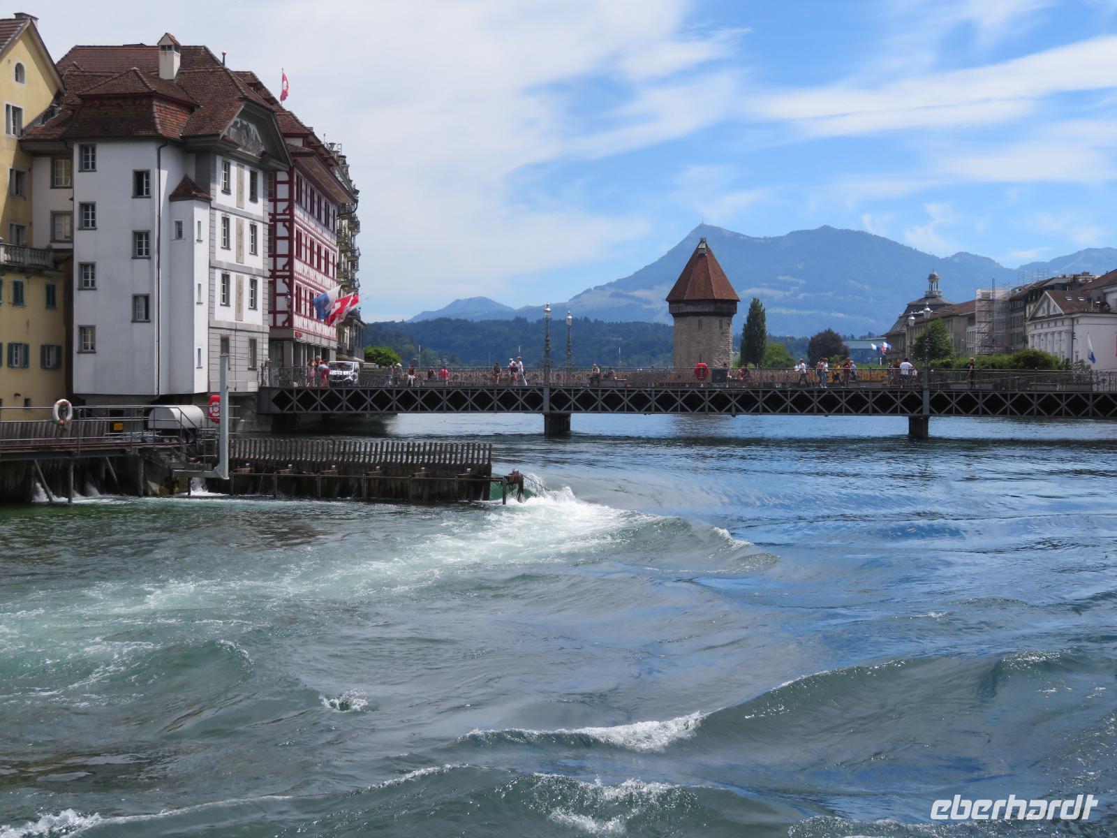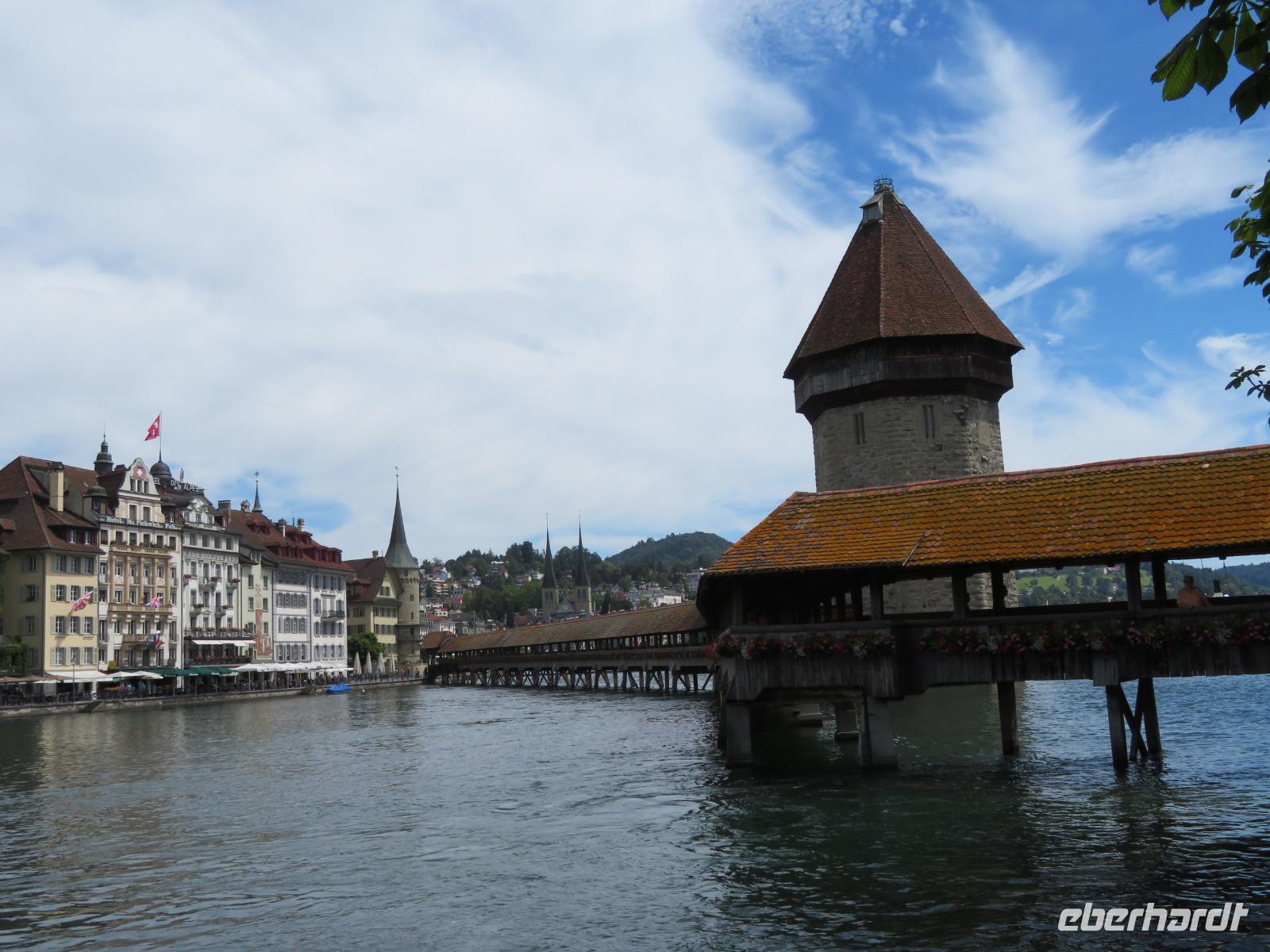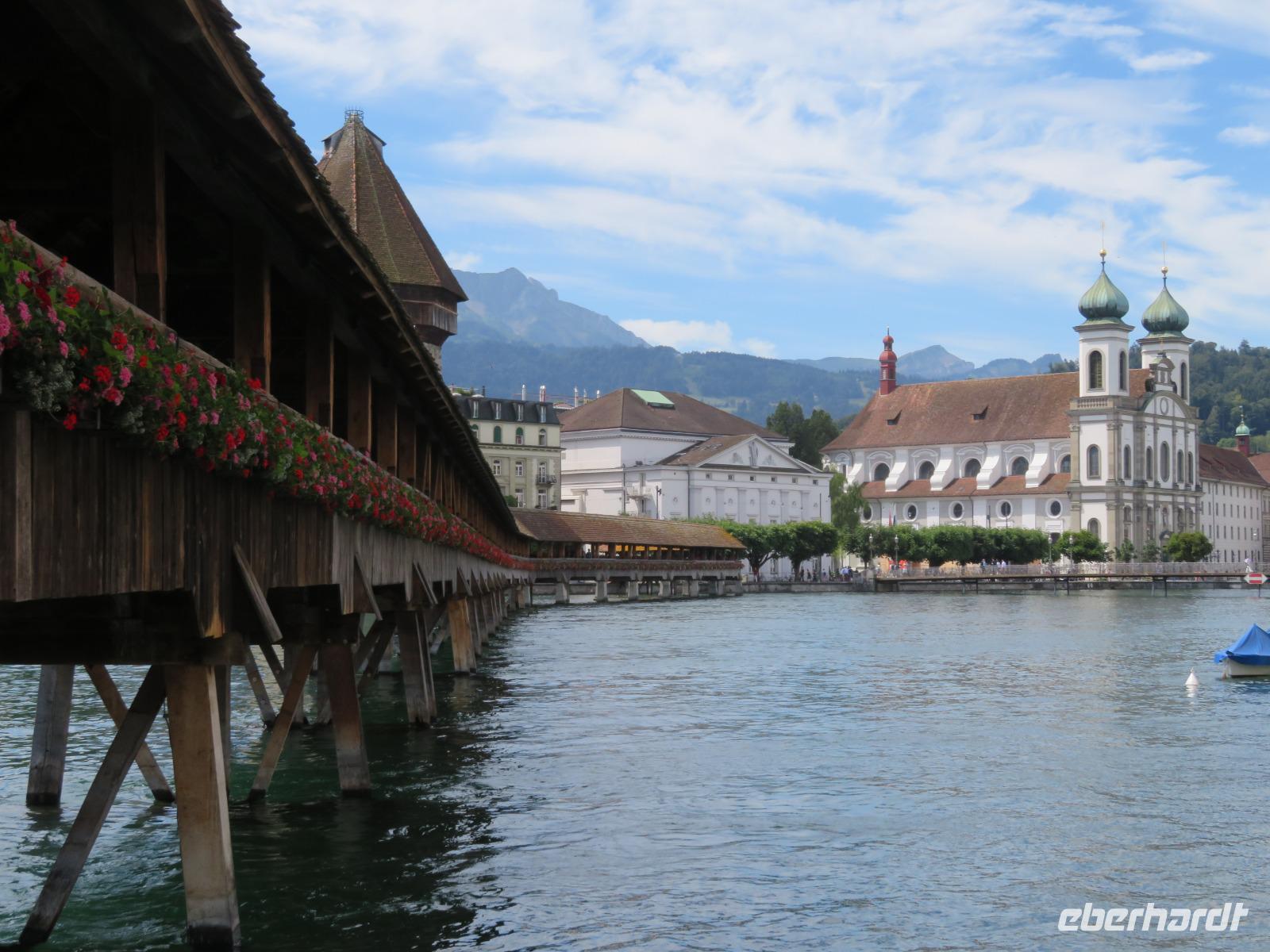 Es heißt wieder Abschied nehmen und auf in Richtung Luzern. Luzern liegt etwa 440 Meter über dem Meeresspiegel und hat eine Einwohnerzahl von 81.000 Menschen. In Luzern angekommen erwartet uns bereits unsere örtliche Stadtführerin Susy. Sie führt uns unter anderem zum Löwendenkmal, zur Jesuitenkirche und zur einzigartigen Kapellenbrücke. Diese weltbekannte Holzbrücke verläuft vom Luzerner Theater vorbei am Wasserturm bis zur St. Peterskapelle am Rathausquai. An einigen Stellen sieht man noch Schäden des Brandes, welcher am 18. August 1993 Großteile der Brücke zerstörte. Allerdings hat man durch Restauration der Brücke zu ihrer alten Schönheit verholfen. Die Führung ist sehr interessant und gibt uns einen tiefen Einblick in die Geschichte der Stadt. Im Anschluss an die Führung haben wir noch Zeit, um die Stadt noch einmal selbst zu erkunden oder bei strahlendem Sonnenschein in einem Café an der Reuss ein Stück Kuchen zu genießen. Danach setzen wir unsere Fahrt durch das Lauterbrunnental in Richtung Stechelberg fort. Dort besteigen wir die Seilbahn, welche uns zu unserem nächsten Hotel in dem Bergdorf Mürren bringt. Nachdem alle ihr Zimmer bezogen haben, treffen wir uns zum Abendessen. Am späten Abend haben wir vom Hotel aus einen wunderbaren Blick auf die steilen Felswände, welche durch die Abendsonne in einem atemberaubenden Rot erstrahlten.