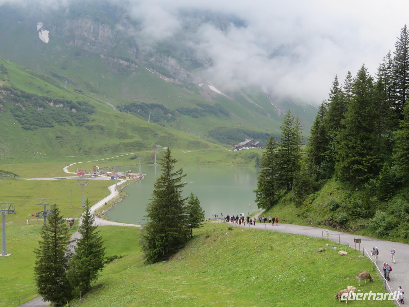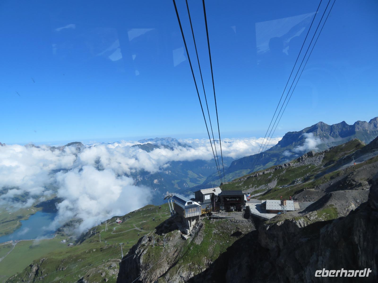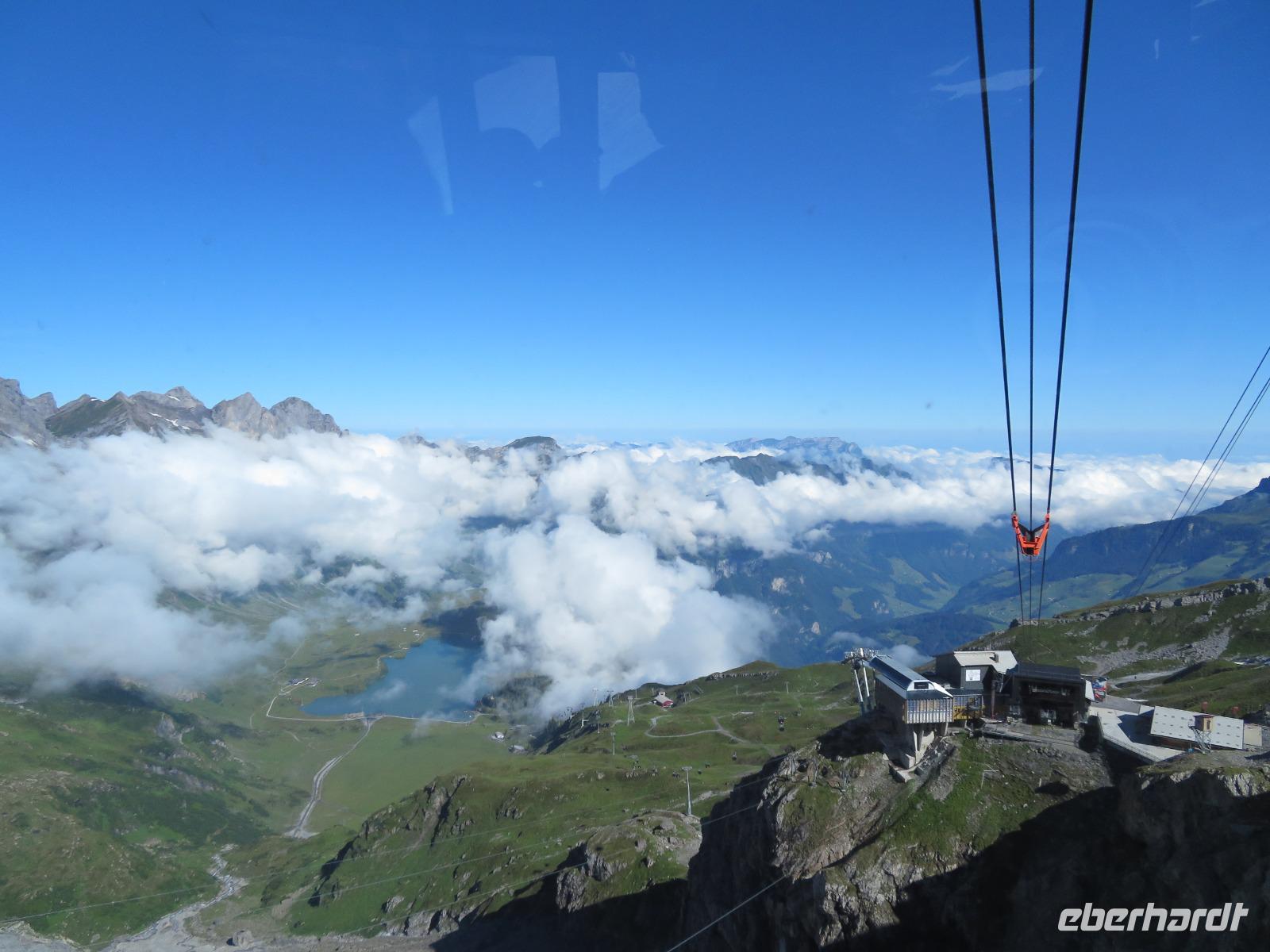 Es heißt wieder einmal Koffer packen und auf in den Bus nach Interlaken. Leider meint es das Wetter an diesem Tag nicht gut mit uns und uns begrüßen tiefhängende Wolken und ein leichter Nieselregen. Das hält uns allerdings nicht davon ab mit der Standseilbahn auf den Harder Kulm zu fahren. Auf der Aussichtplattform können wir trotz der vielen Wolken einige Blicke auf Brienz und den Brienzersee erhaschen. Sogar die wunderbare Bergkulisse mit Eiger, Mönch und Jungfrau lässt sich durch einige Wolkenlücken erblicken. Nachdem wir mit der Standseilbahn wieder ins Tal gefahren sind, setzen wir unsere Fahrt Richtung Engelberg fort. Am Nachmittag steigen wir in die Gondelbahn und fahren zum letzten Hotel unserer Reise, dem Berghotel Trübsee am Fuße des Titlis. Das Hotel befindet sich direkt neben der Bahnstation und wurde vor 5 Jahren renoviert. Dementsprechend bieten sich uns sehr moderne und charmant eingerichtete Hotelzimmer. Zum Abendessen lassen wir den Tag noch einmal Revue passieren und freuen uns bereits auf den nächsten Tag. Es geht auf den Titlis!