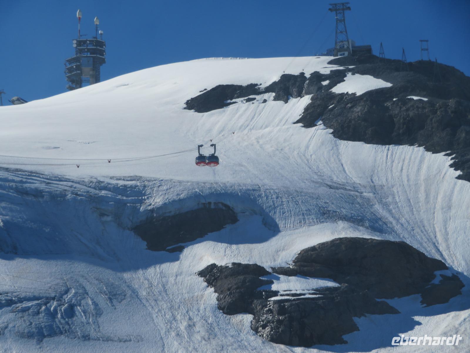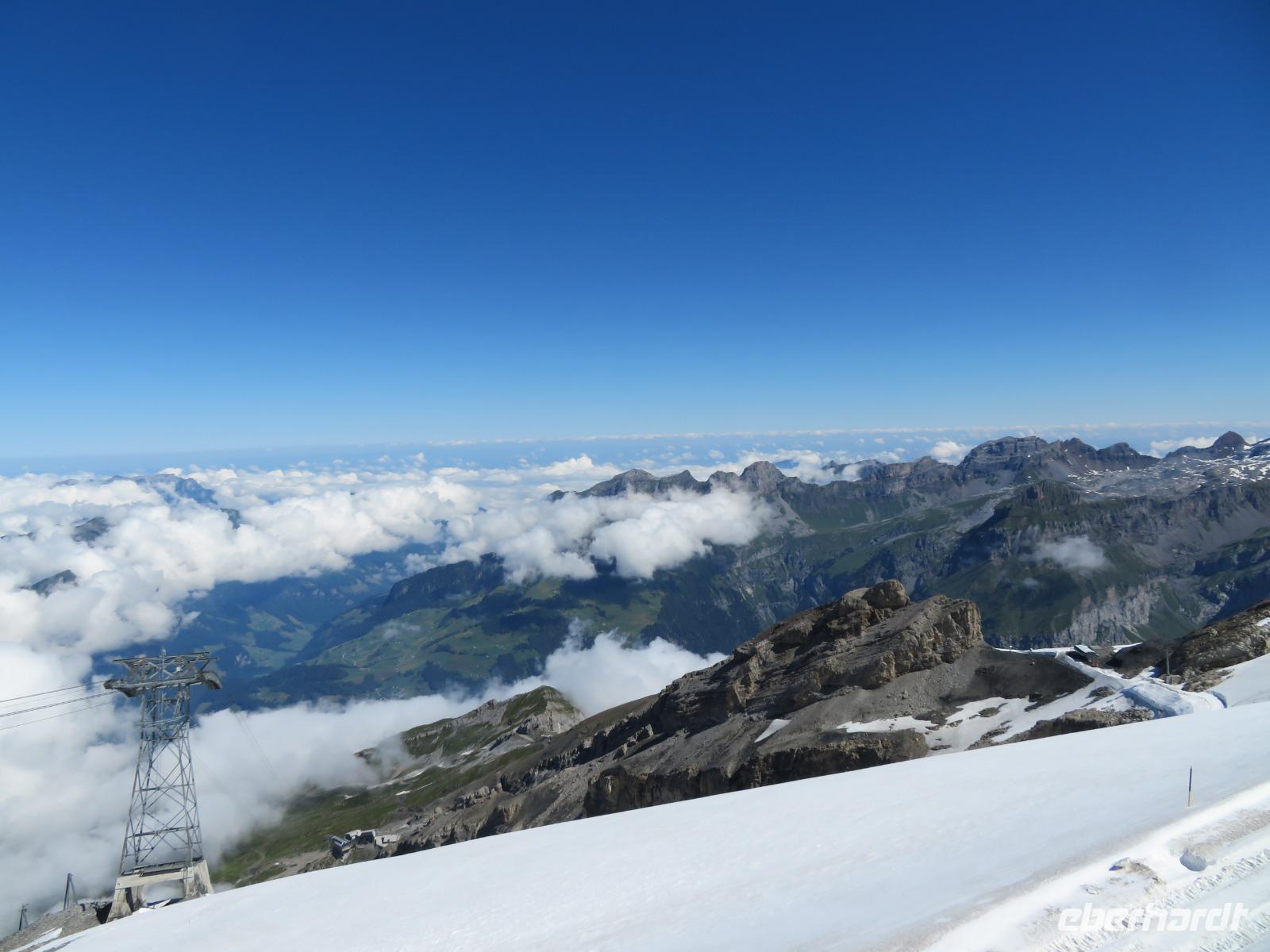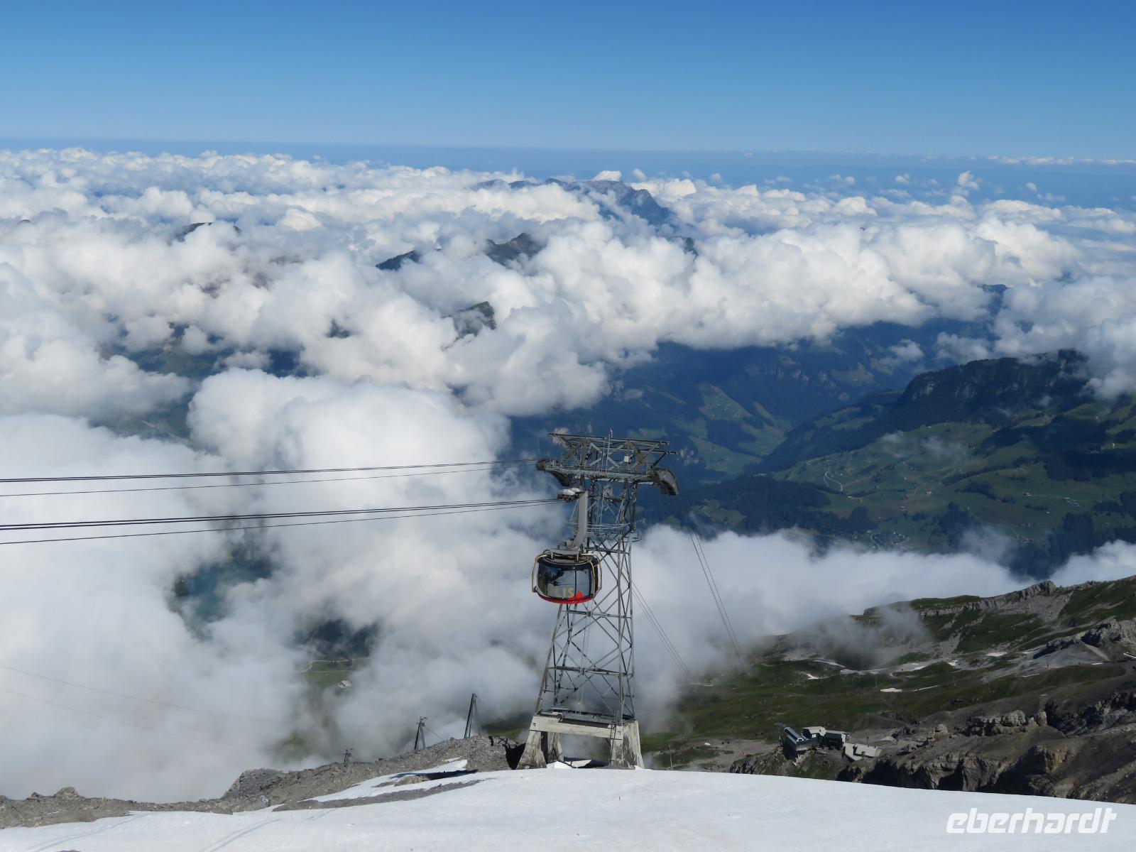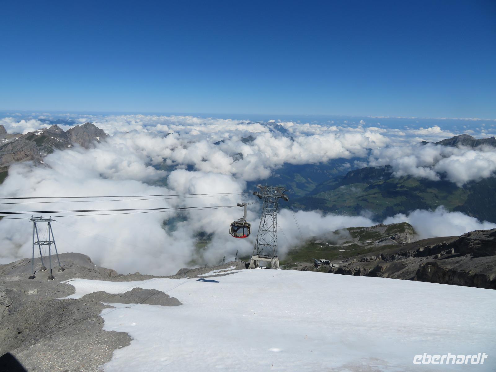 Es heißt wieder einmal Koffer packen und auf in den Bus nach Interlaken. Leider meint es das Wetter an diesem Tag nicht gut mit uns und uns begrüßen tiefhängende Wolken und ein leichter Nieselregen. Das hält uns allerdings nicht davon ab mit der Standseilbahn auf den Harder Kulm zu fahren. Auf der Aussichtplattform können wir trotz der vielen Wolken einige Blicke auf Brienz und den Brienzersee erhaschen. Sogar die wunderbare Bergkulisse mit Eiger, Mönch und Jungfrau lässt sich durch einige Wolkenlücken erblicken. Nachdem wir mit der Standseilbahn wieder ins Tal gefahren sind, setzen wir unsere Fahrt Richtung Engelberg fort. Am Nachmittag steigen wir in die Gondelbahn und fahren zum letzten Hotel unserer Reise, dem Berghotel Trübsee am Fuße des Titlis. Das Hotel befindet sich direkt neben der Bahnstation und wurde vor 5 Jahren renoviert. Dementsprechend bieten sich uns sehr moderne und charmant eingerichtete Hotelzimmer. Zum Abendessen lassen wir den Tag noch einmal Revue passieren und freuen uns bereits auf den nächsten Tag. Es geht auf den Titlis!